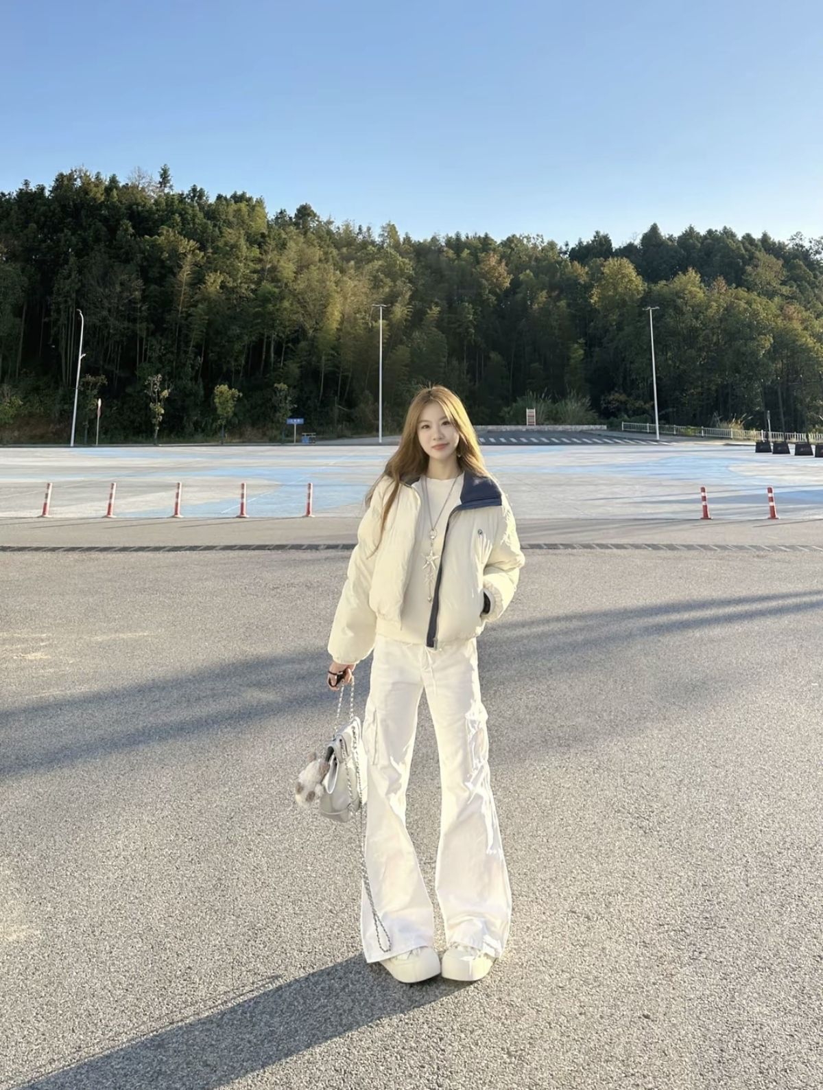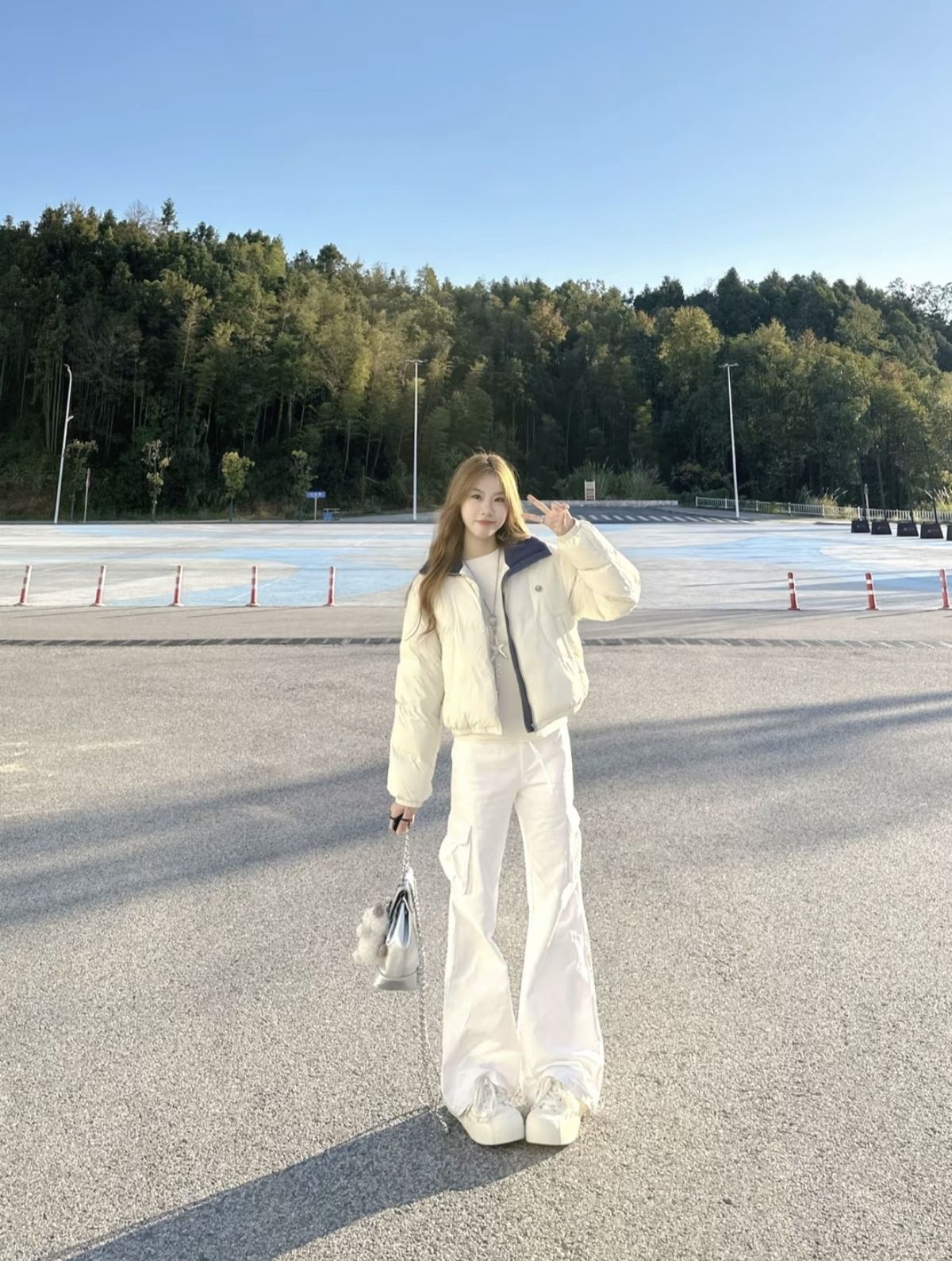 小翻领的羽绒服 这个拼色好好看!!自带时髦感 这个米白色衬的人很温柔啊啊~ 衣服穿上软乎乎的 轻盈又保暖 小个子就适合这种短款的羽绒服 搭配一个拖地裤 视觉显高~ 这个冬天 无论上学或者通勤都要穿的美美的