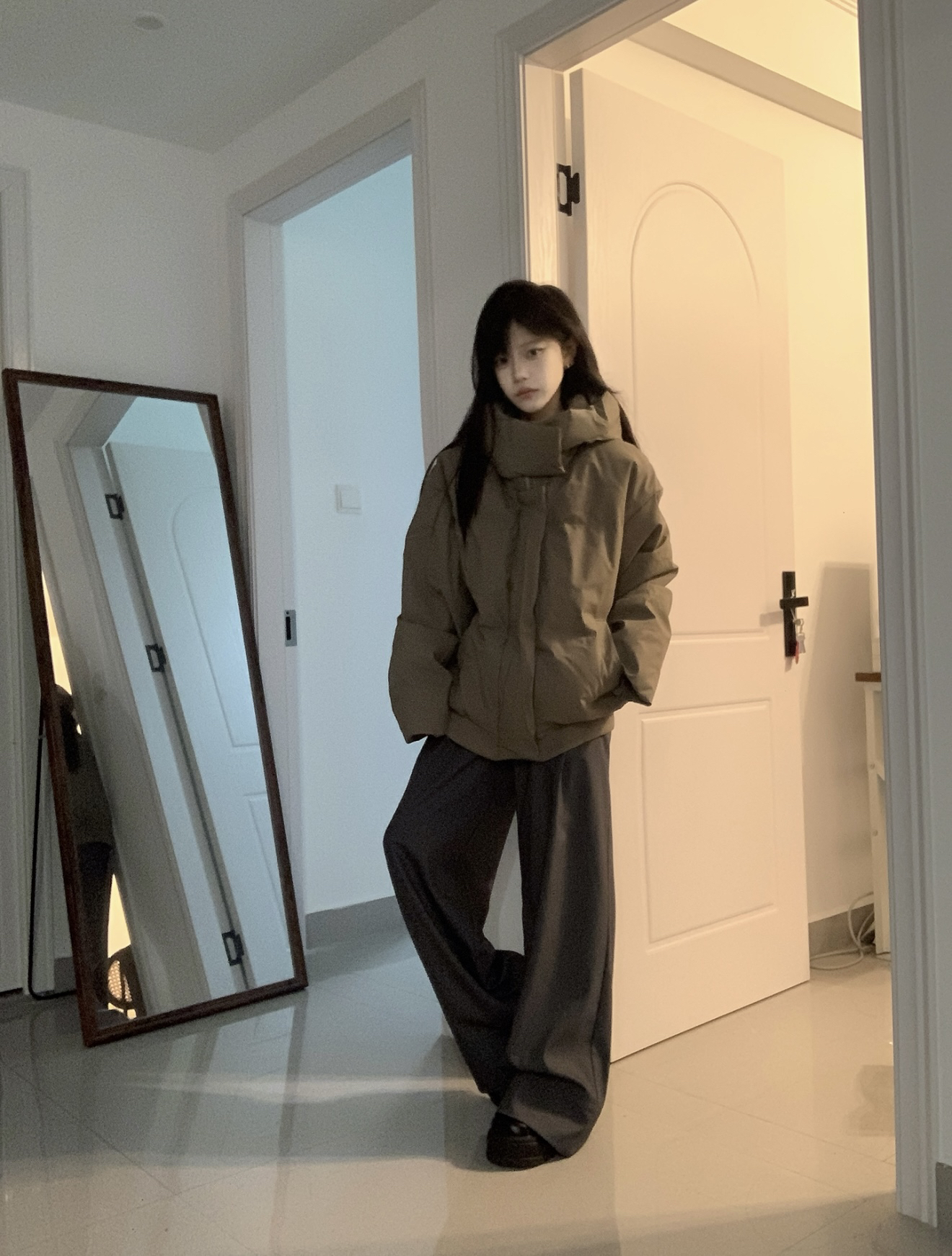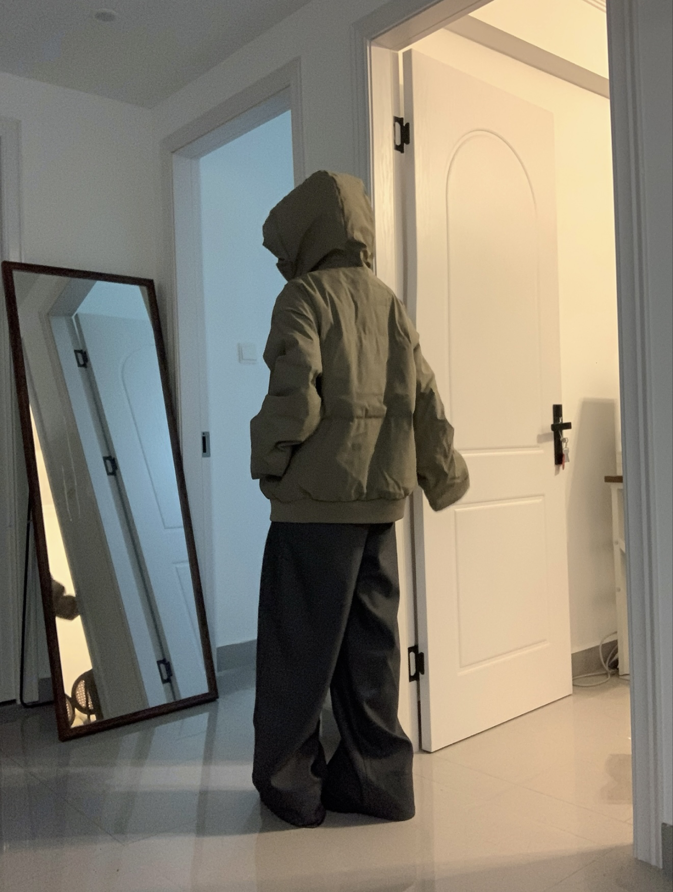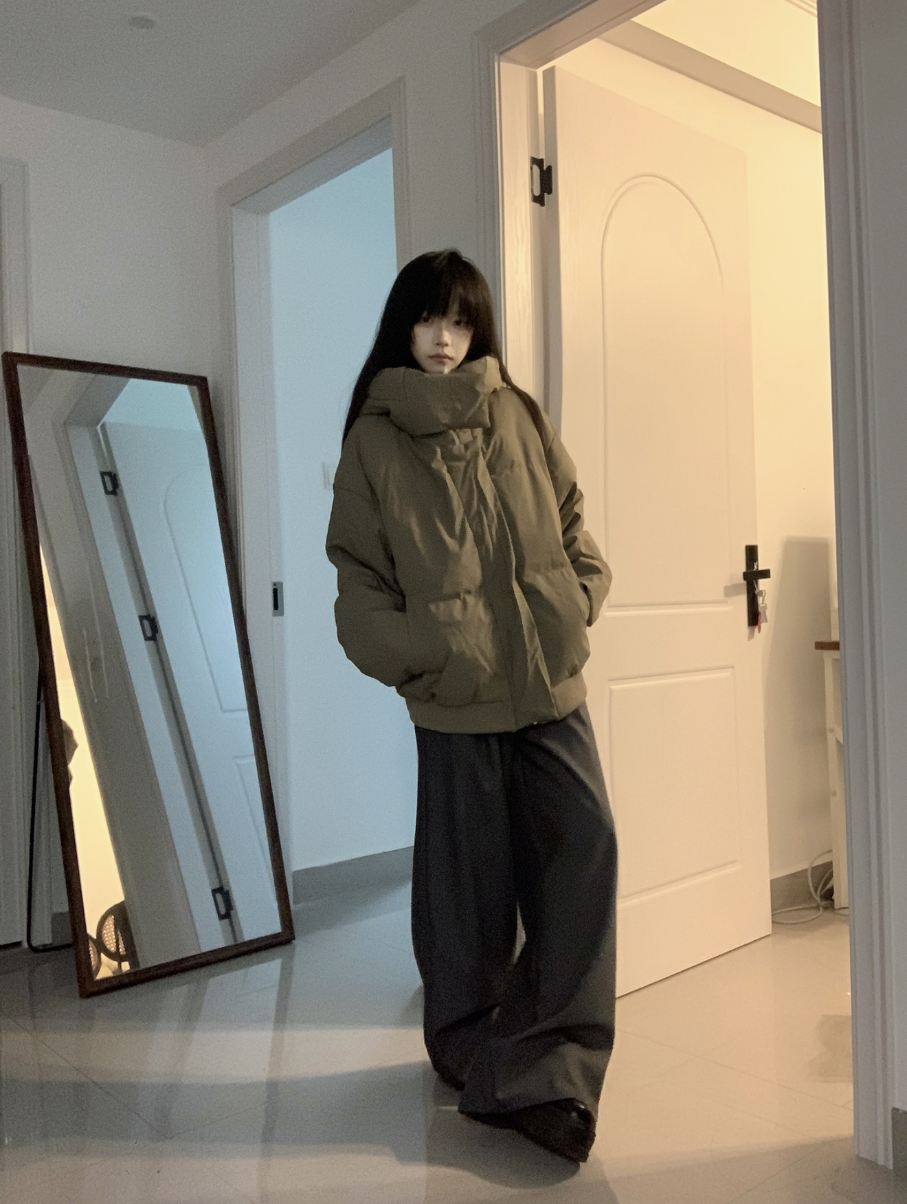 简约的面包服好耐看 这个颜色我也很喜欢 超级显白的 搭配同样慵懒风的裤子 一套上身松弛感满满 冬天穿搭简约但不简单