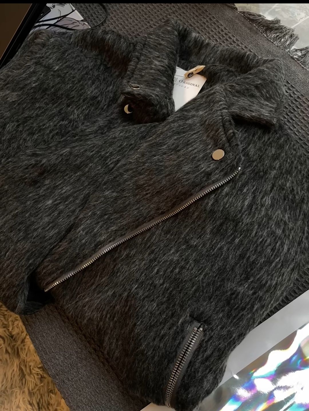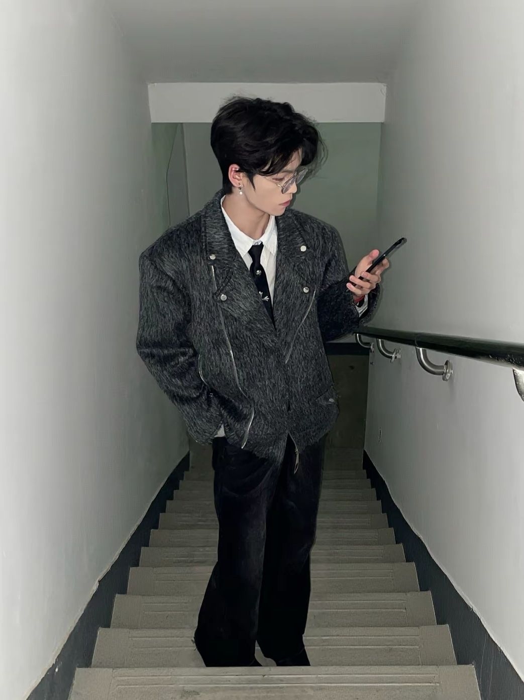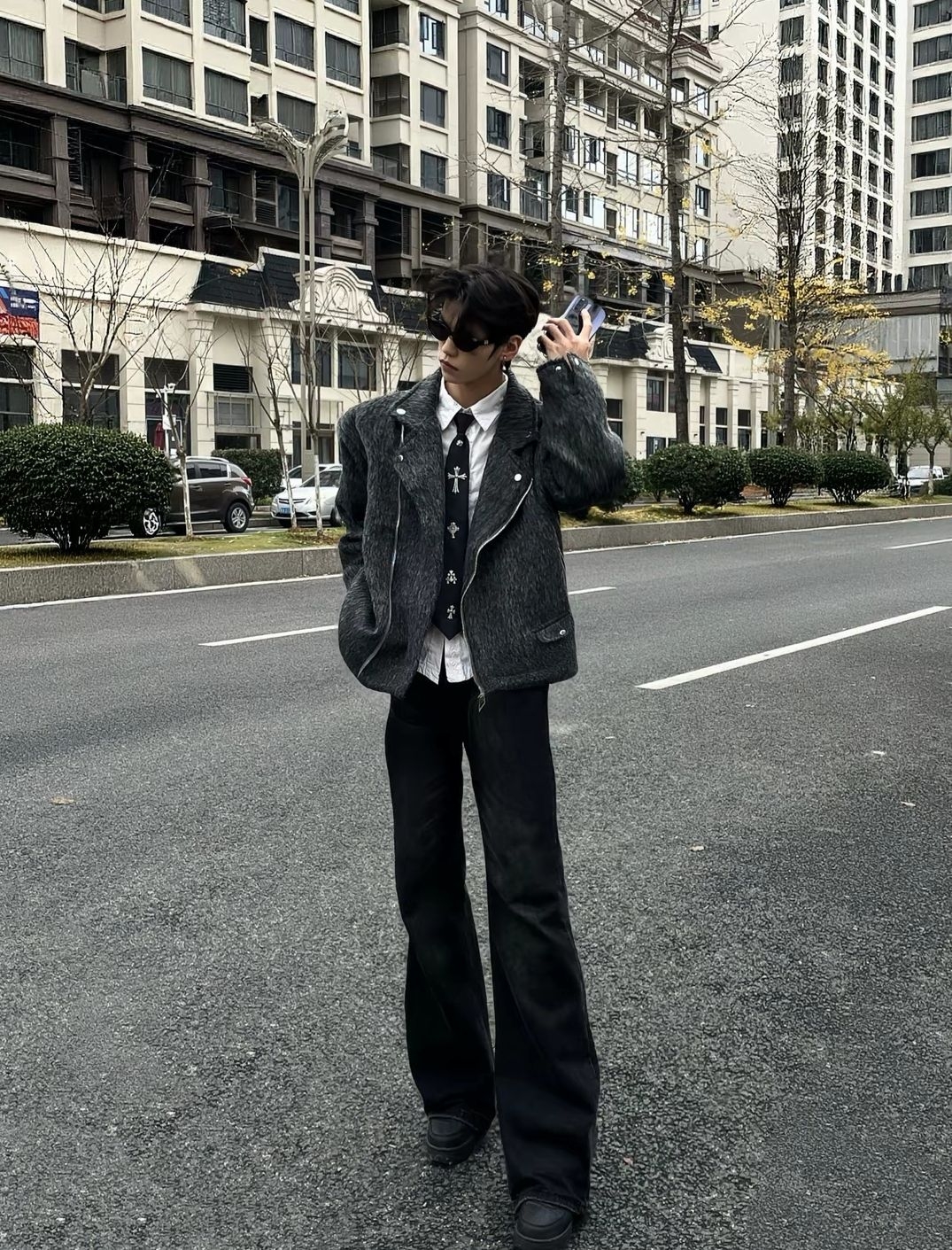 今日份拽酷穿搭已上线!这件设计感外套真的戳中我心巴——灰调纹理自带低调质感,机车款翻领+金属扣的细节把酷飒氛围直接拉满!软乎乎的面料看着就很有冬日氛围,版型是那种宽松但不垮的调调,既能悄悄藏住内搭的厚度,又不会显得臃肿拖沓,翻领一立还能衬得脸小小的~ 内搭随便搭件白衬衫就很有层次,甜酷混搭的适配度直接拉满,冬天穿它既能裹得暖暖和和,又能轻松拿捏时髦感,日常出街或者拍穿搭都超有范儿~