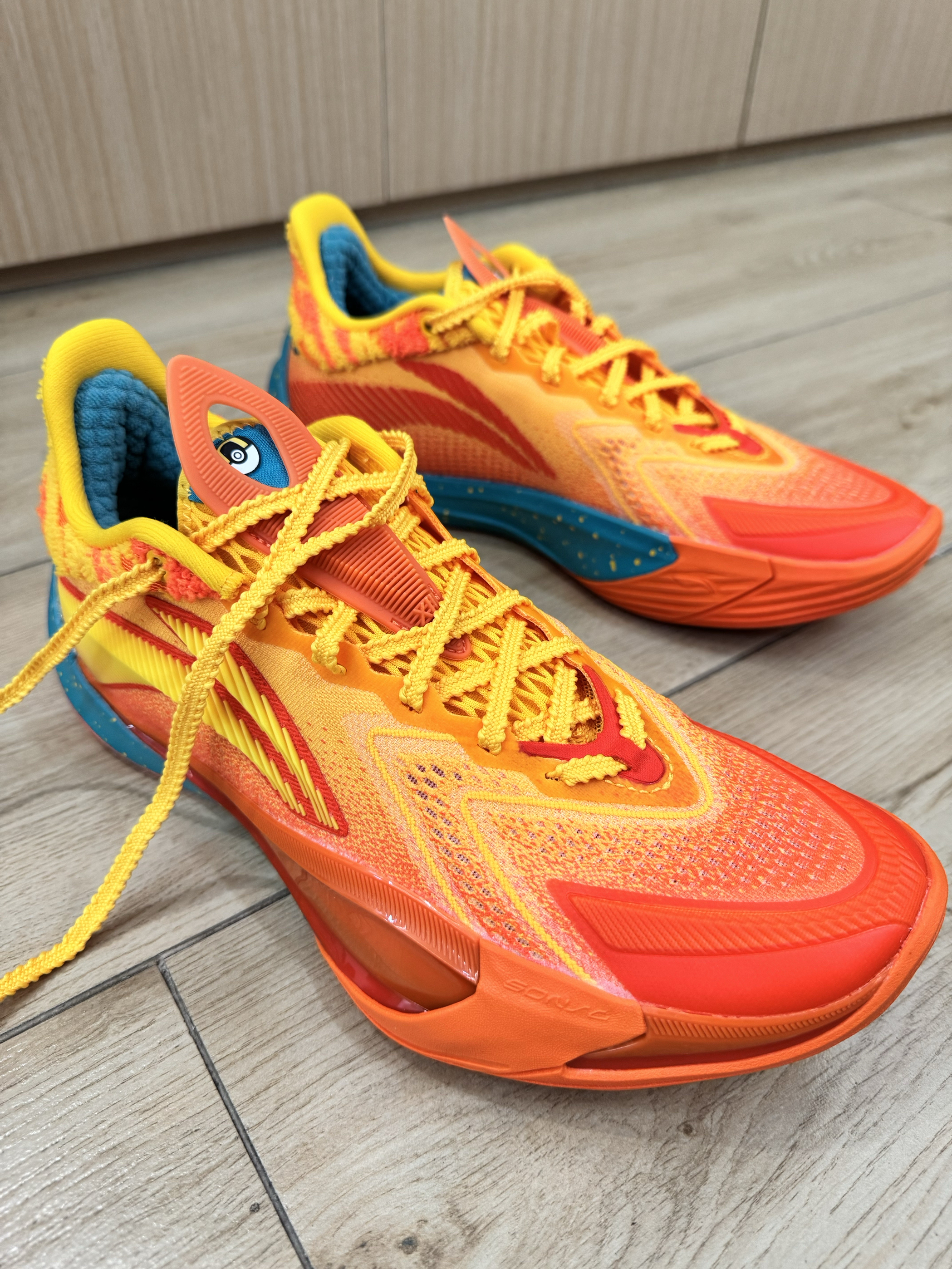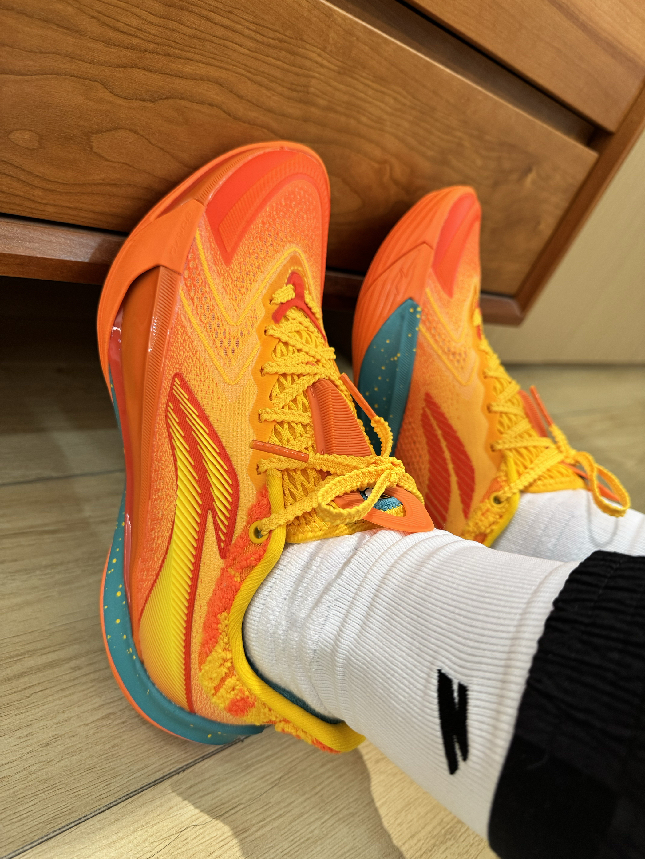 #被这双鞋帅到 #李宁音速13v2喷火龙 #李宁音速13v2实战天花板 #音速13v2 #李宁音速13v2 这波宝可梦喷火龙联名 球鞋配色跟喷火龙皮肤相呼应 李宁logo的质感和层次给力不少 鞋舌的精灵球,鞋垫的喷火龙印花 脚踝周围的绒粒,还有精灵球鞋盒 确实给足排面,联名不止是加个logo收割 耐克41脚🦶🏻这双41.5刚好,舒服不压脚 底子抓地力可以,地面反馈清晰 脚感之前的v2爆裂紫配...
