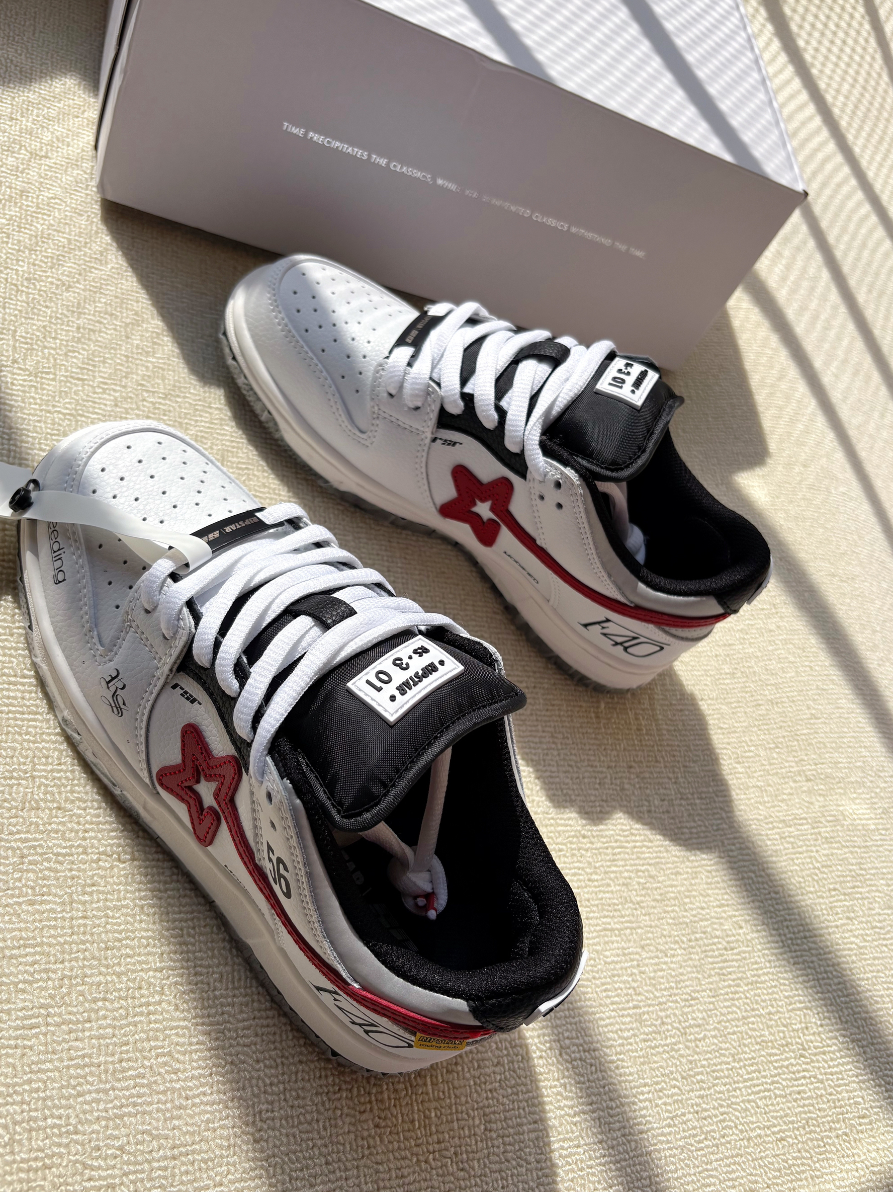 本篇笔记关联了RIPSTAR 赛车 板鞋 休闲系带防水 F40/白色等商品,为用户提供真实的使用体验和购买参考。
