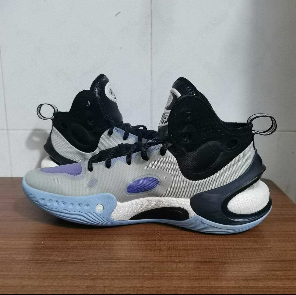 驭帅17中帮的黑灰配色真的太戳我了!整体以黑色为主,灰调细节点缀,既低调又有层次感,上场打球不会太张扬,日常穿也很百搭。中帮设计对脚踝的支撑特别到位,比低帮鞋多了份安全感,突破变向时脚踝不会晃,又不像高帮鞋那样影响灵活性。全掌䨻科技的缓震效果没话说,起跳落地时能明显感觉到缓冲,打完整场球脚也不会酸。鞋面是透气网布加热熔条,透气性不错,夏天打球也不会闷得慌,而且材质很耐磨,打外场几次下来也没什么磨损...