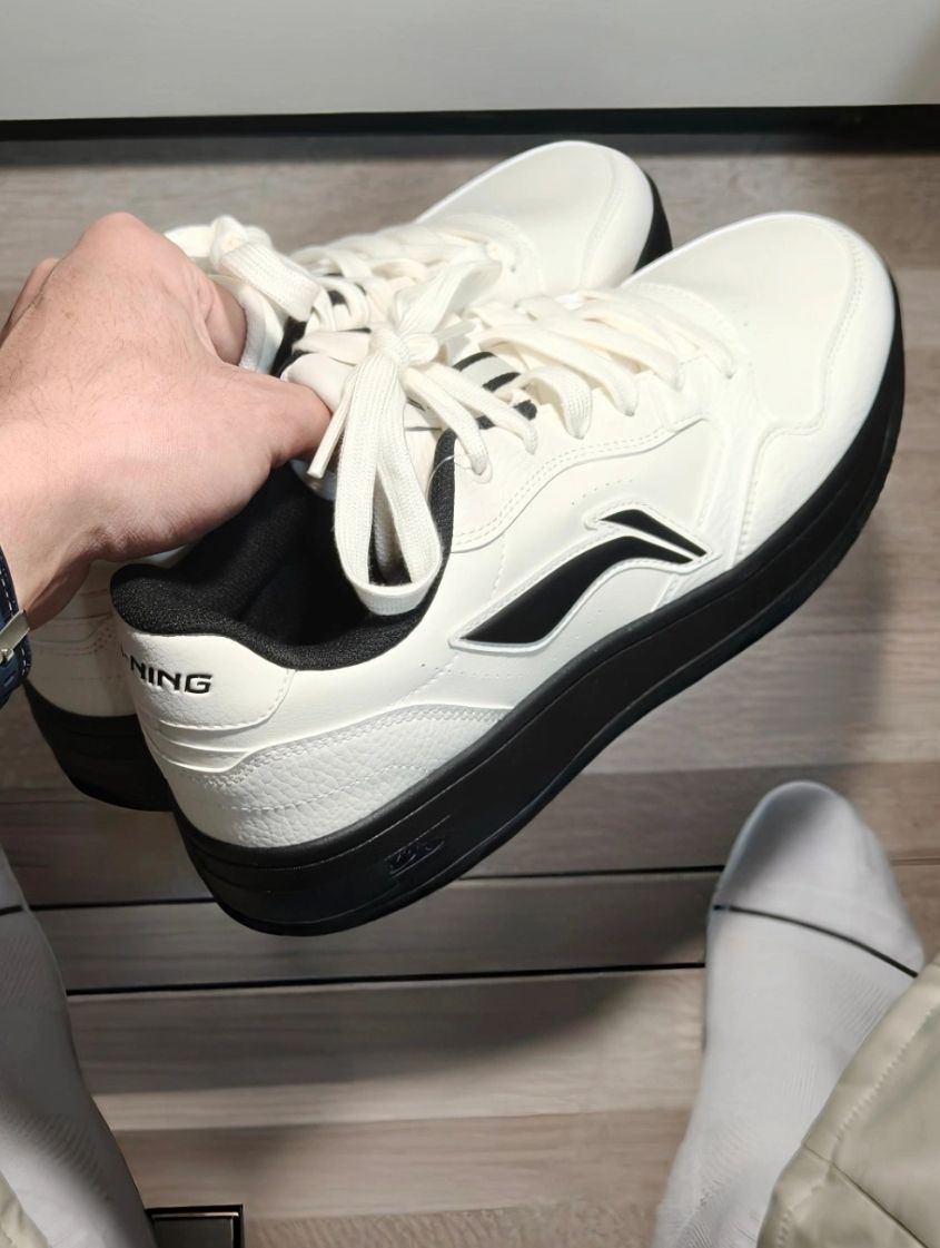 今天又是我喜欢的经典黑白配色啦! 李宁。这双板鞋的鞋型是偏秀气的那种! 穿起来不会显得笨重 而且很好搭裤子呀~