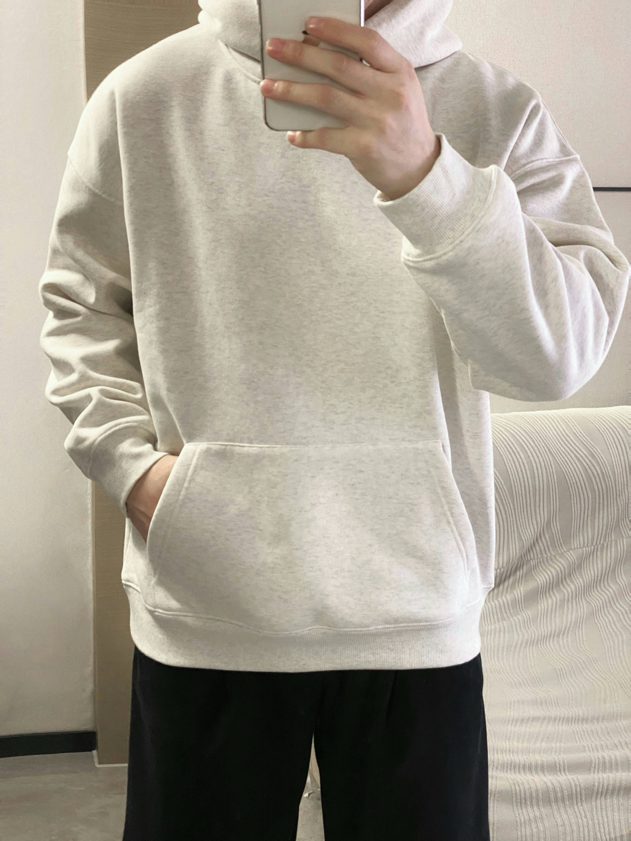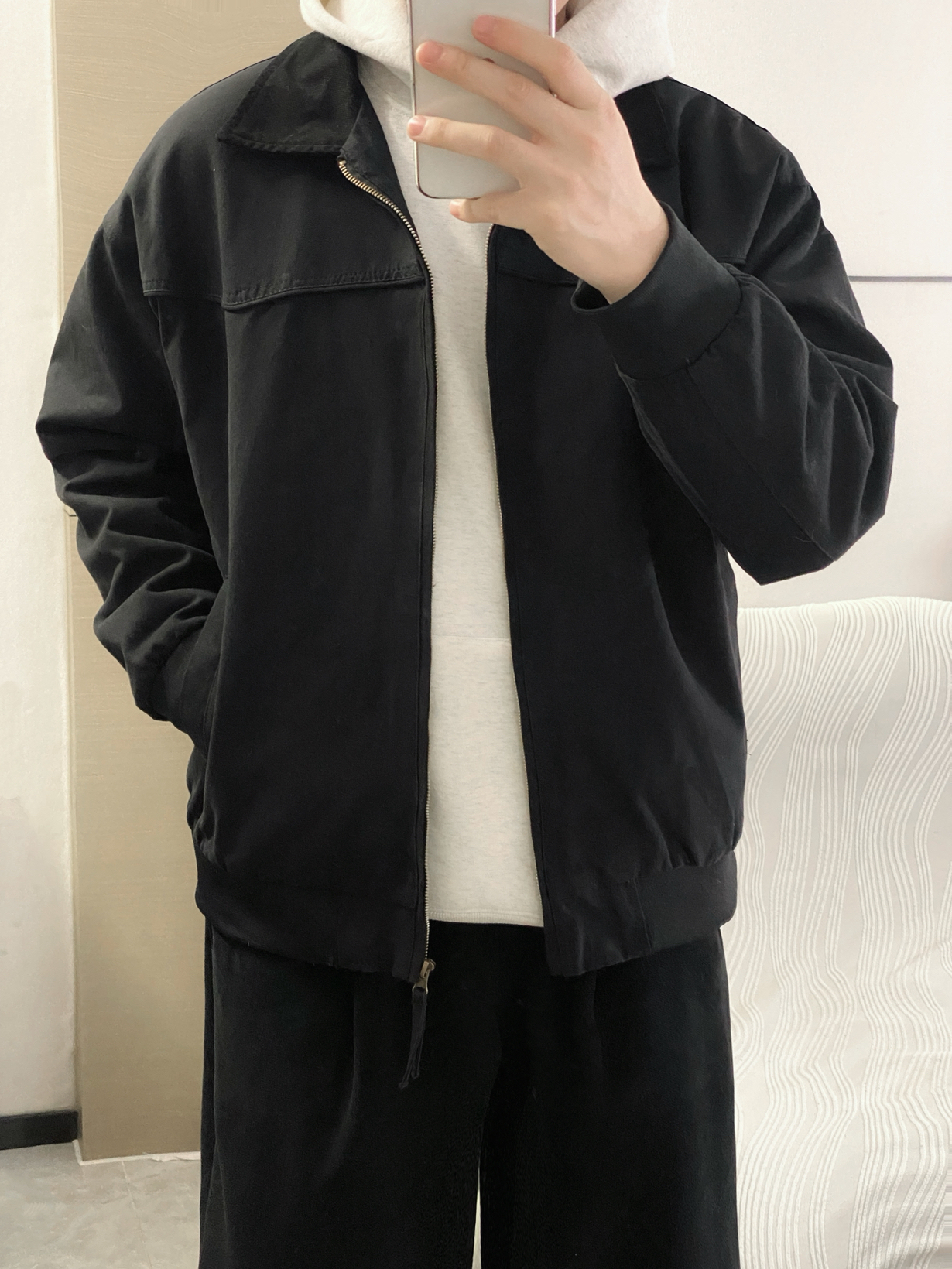 好喜欢夹克卫衣的叠穿啊 这个白灰色卫衣好好看啊 简约干净 而且穿起来好舒服 版型也好好 穿上好帅 配上夹克真的好看