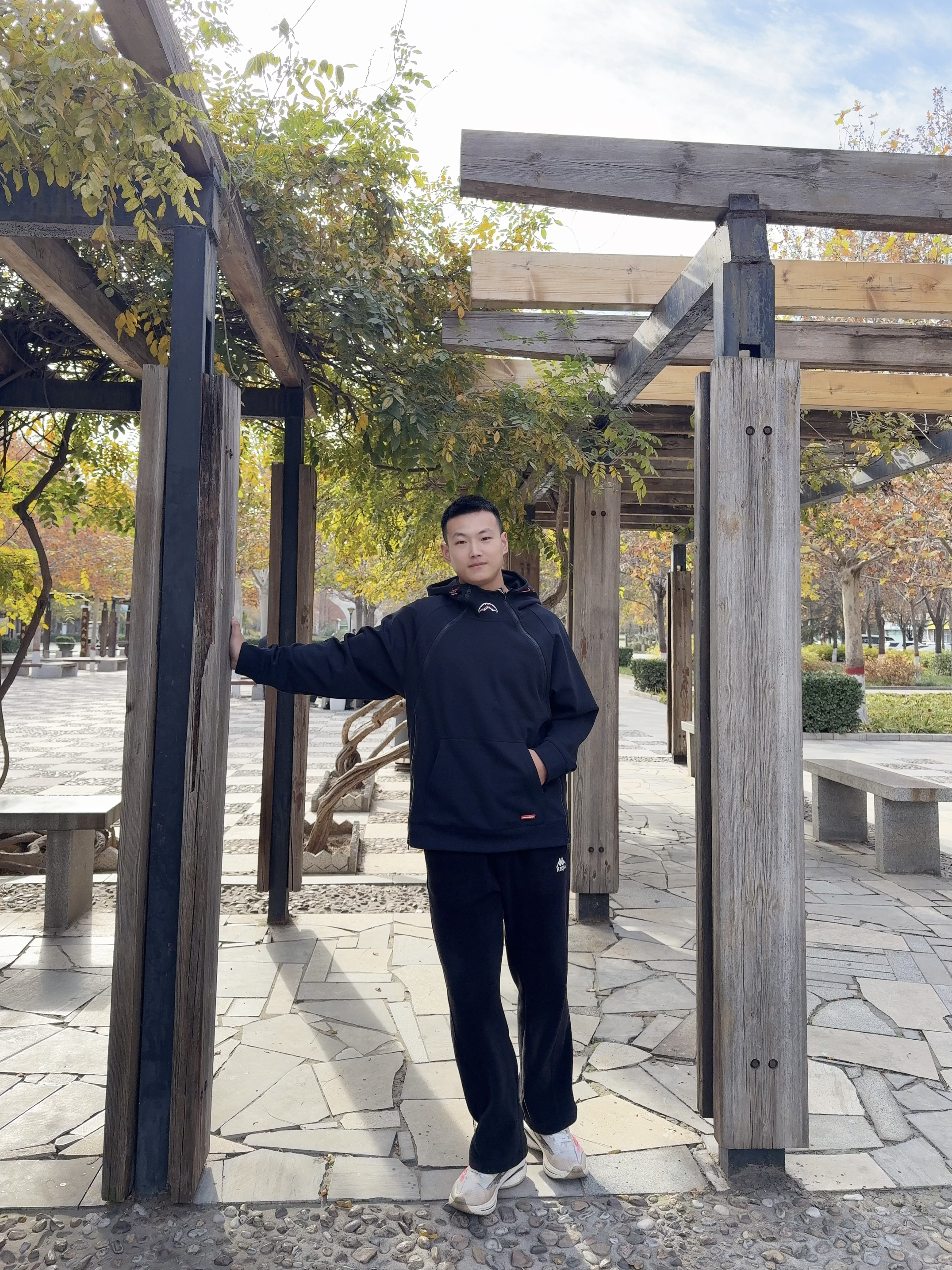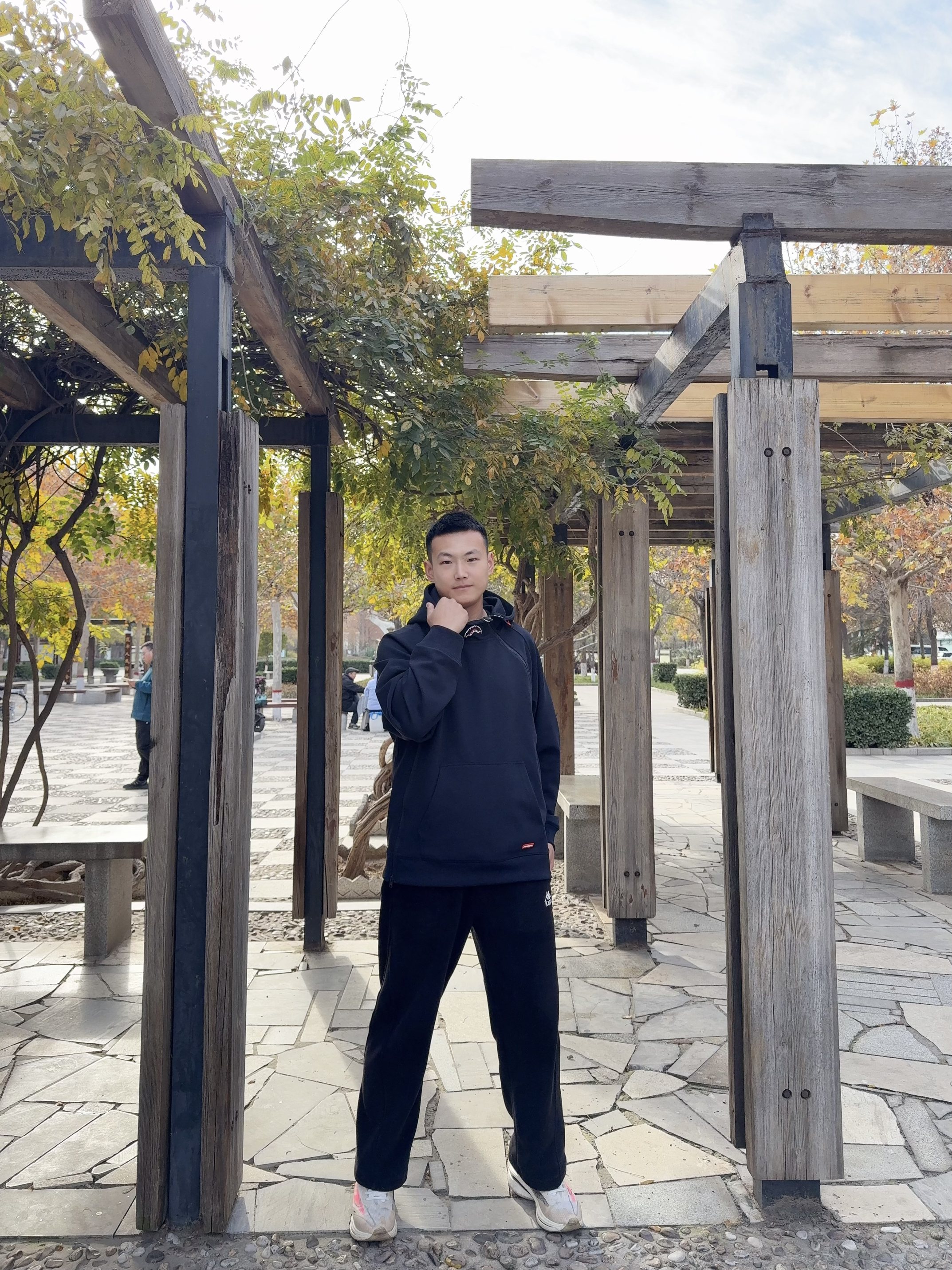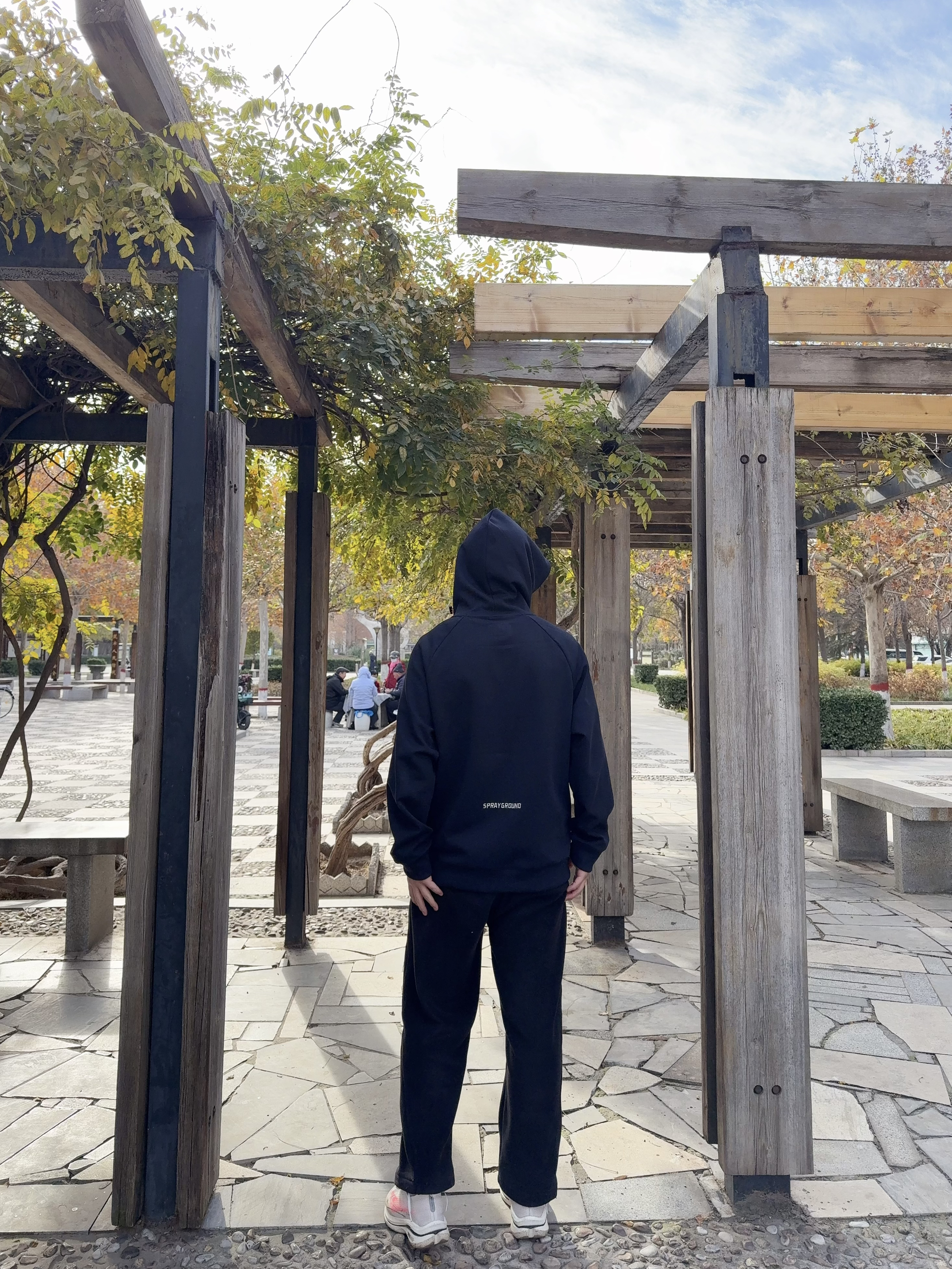 先看这版型——宽松但不垮,搭同色系阔腿裤,随便站在这儿拍都特显利落,完全不挑身材。 面料是那种软乎乎但不皱的,摸着手感巨舒服,风一吹还挺挡风,现在这天气穿刚好,不闷也不冷。 细节也到位:帽子是能收紧的,口袋够深,手机揣进去根本不会掉。后背还有小字母标,低调但有设计感。 我穿了快一下午,不管是靠柱子还是揣兜走,都没觉得勒得慌,舒适度直接拉满。