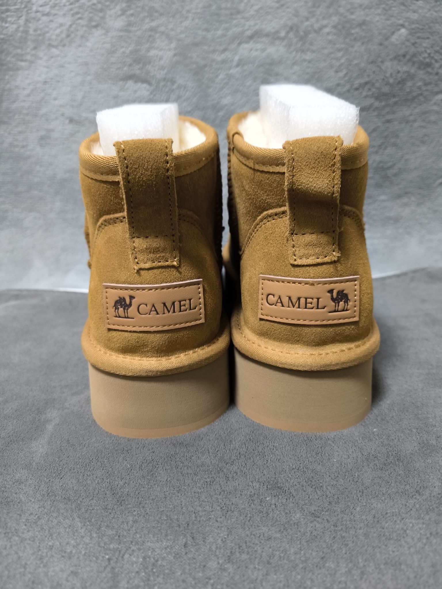 骆驼雪地靴,驼色反绒配色,鞋身防水,鞋底波纹设计,防滑性能好,鞋子很保暖,鞋内里全是白绒绒的毛,200价位很值得推荐!