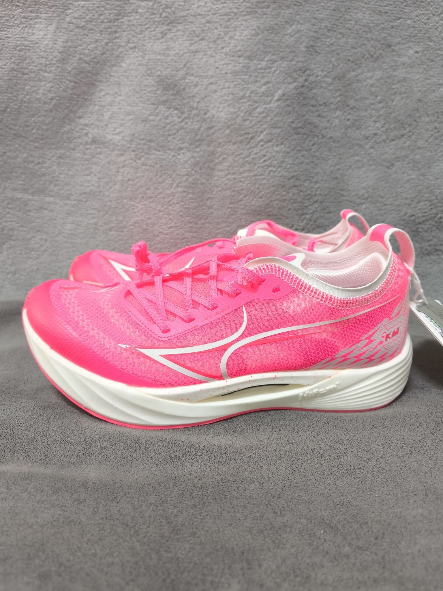 海克斯km3,入手的粉色真的很帅气,全掌碳板,刚性很足,中底材料软弹,鞋子很轻,抓地力很好,200多的价位很合适,很值得入手