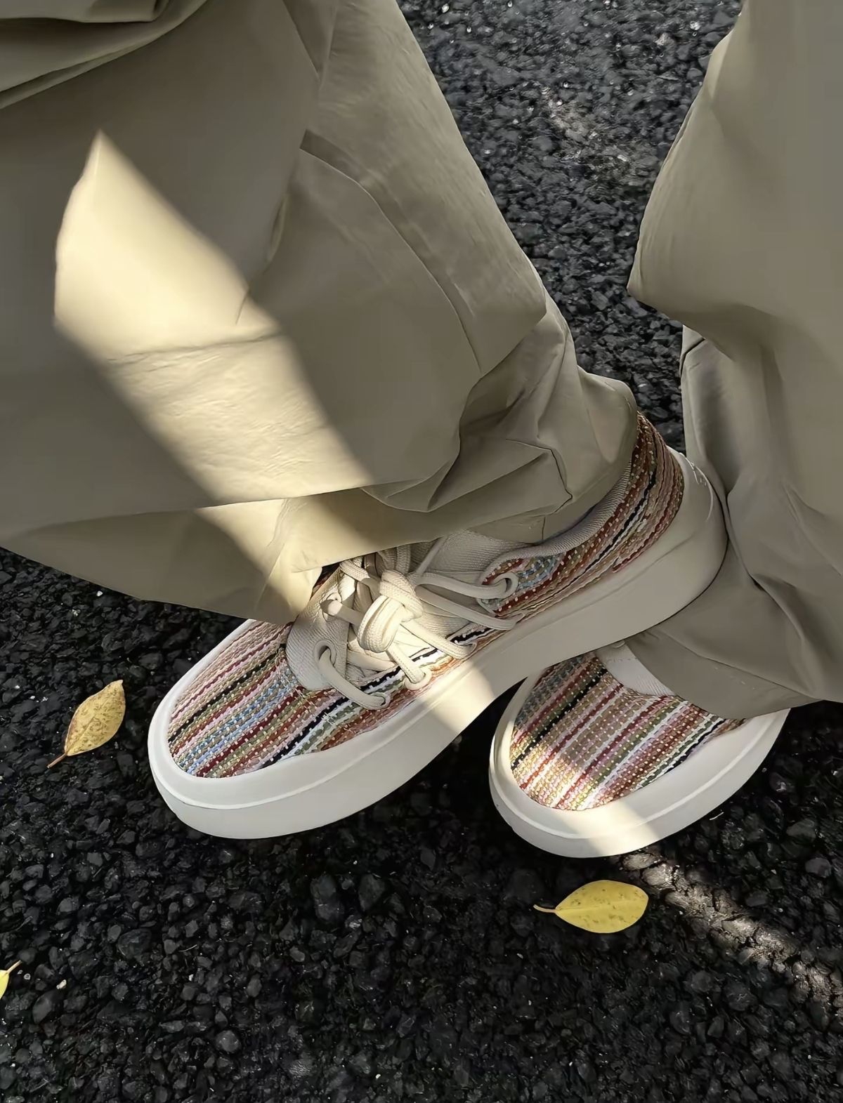SENZU BEAN 仙豆一代 运动休闲鞋 减震防滑包裹性复古 白色/彩色条纹