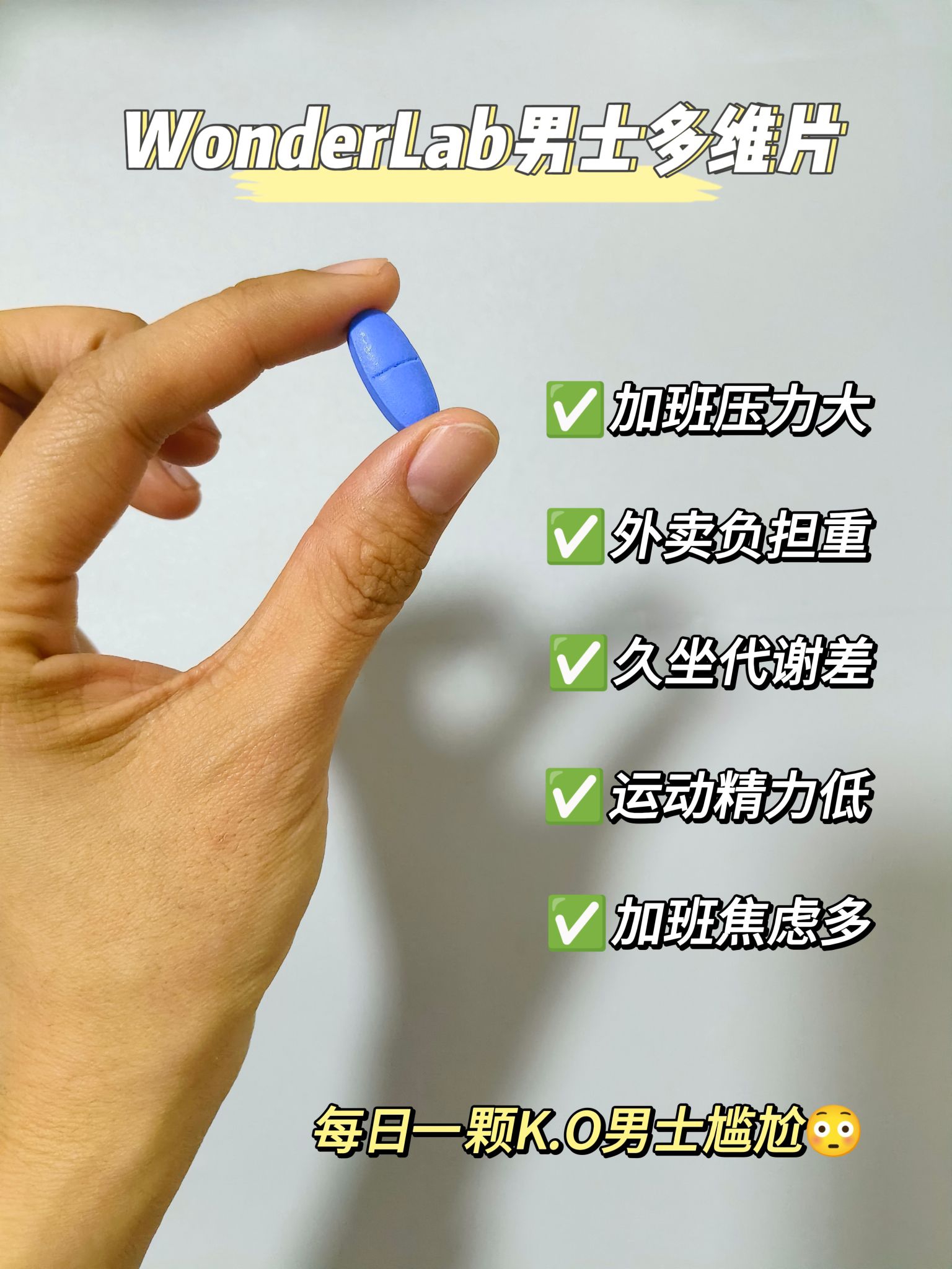 老公最近睡眠真的不太好 感觉再这么熬下去真的身体要废了…… 所以我就趁着初冬这最好的滋补季节 给老公买了瓶男士“大力丸” 听说Wonderlab家的男士复合多维片🈶点意思! 就百十来块买了一瓶试试❗ 成分上枸杞、人参之类的滋补王💥💥 每天一粒小蓝片😋 感觉老公最近这状态🉑缓解了不少 失眠问题都见好了~ 果然还是男士专用的更懂男士的身体需求👍🏻 看来靠内补搞塌“面子工程”真是分分钟的事儿❗