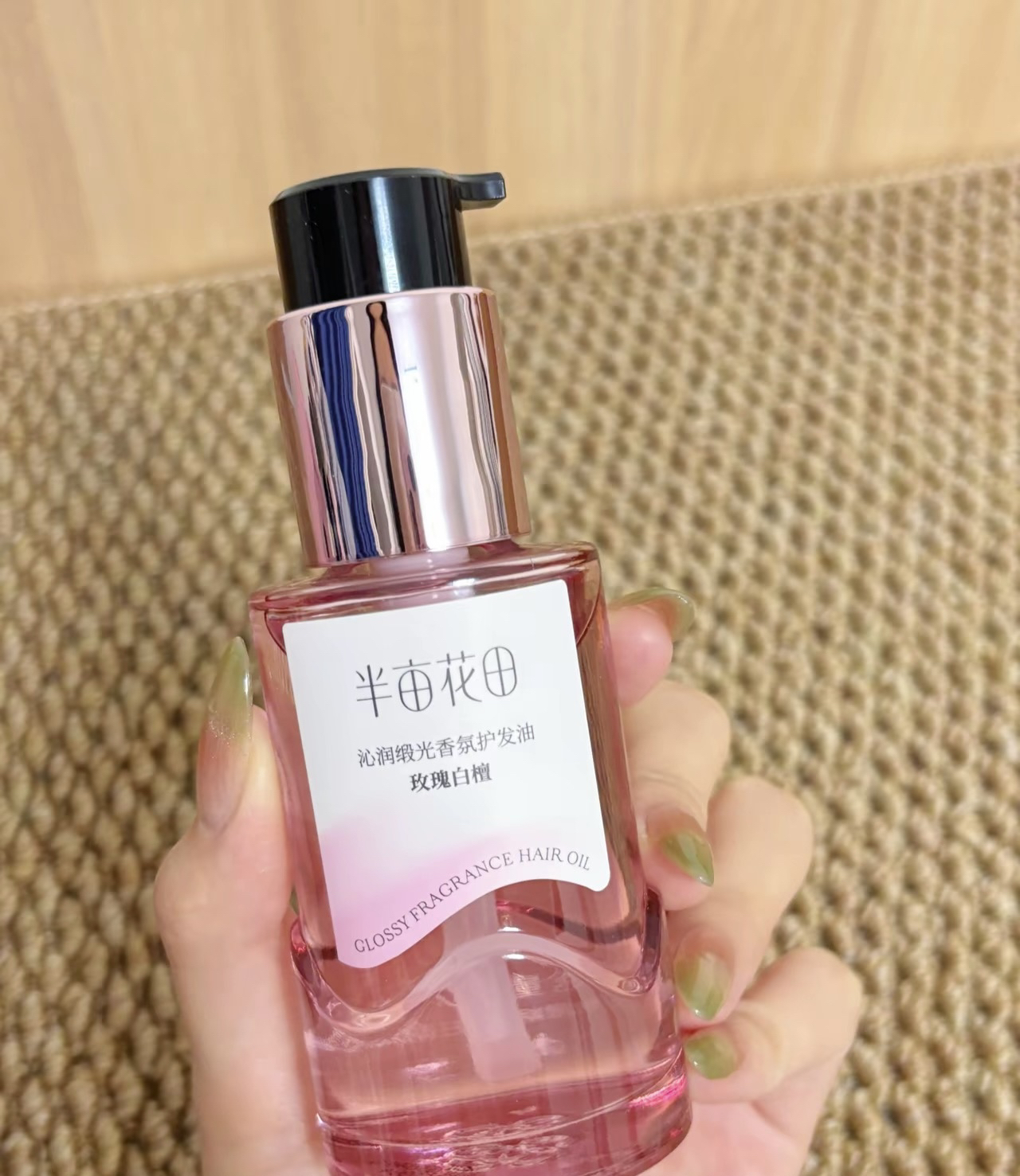 这不是平时出门玩 要精简出行嘛 在外面逛街看见半亩花田家的护发精油 一眼就被这个包装吸引啦 真的颜值好高呀 果断的买回家 洗完头发用上一两泵 效果真的很很惊艳我 质地是很细腻的 并且味道就是玫瑰的清香 很好闻一点都不会觉得闷人 反而就是沁香的香味 而且使用完后头发真的发质就是好不少 体验感真的不要太棒啦 #美丽众测局 #低成本变美小技巧 #邪修变美就是快 #今年的秋天是摩卡味的 #护...