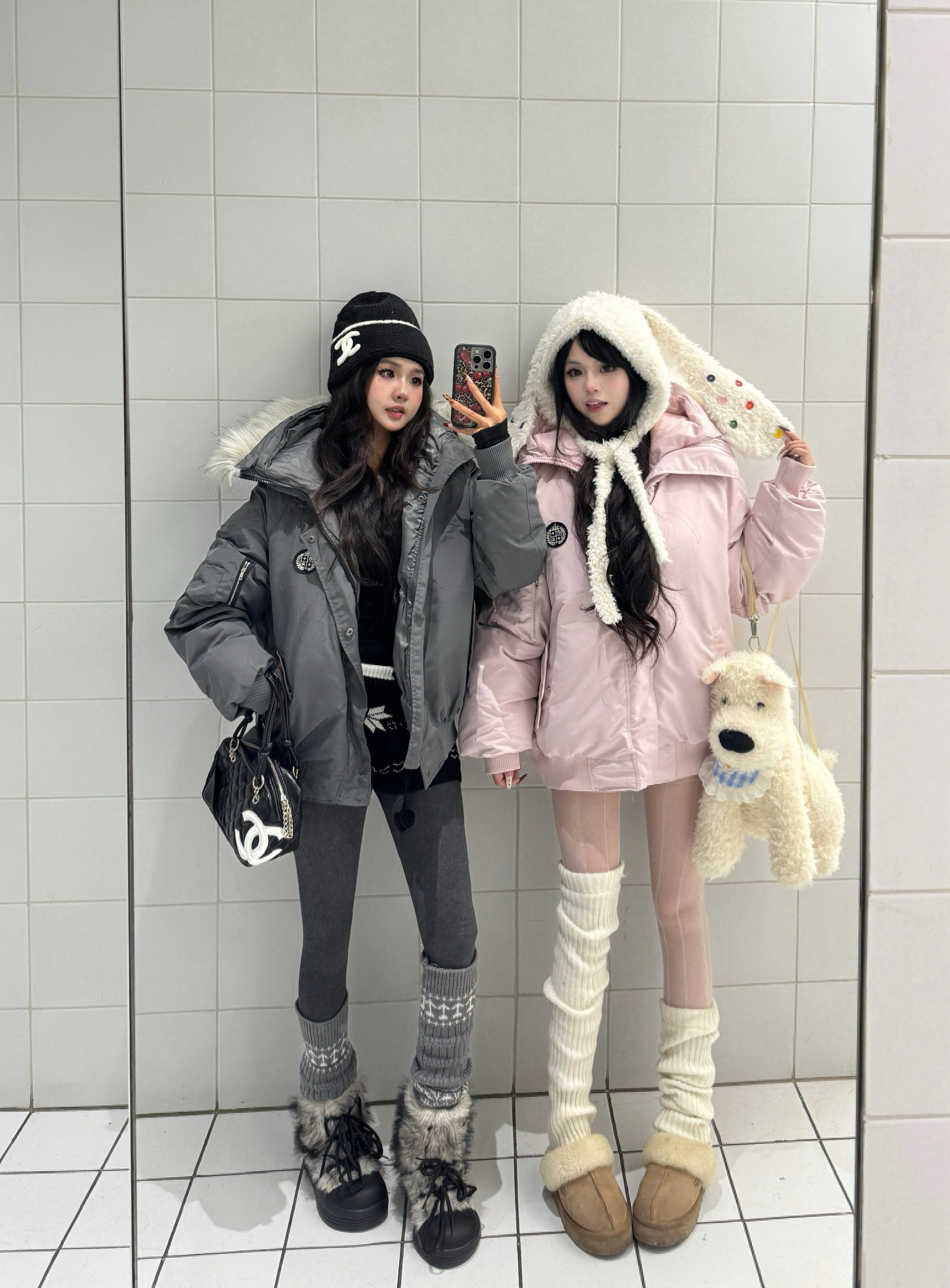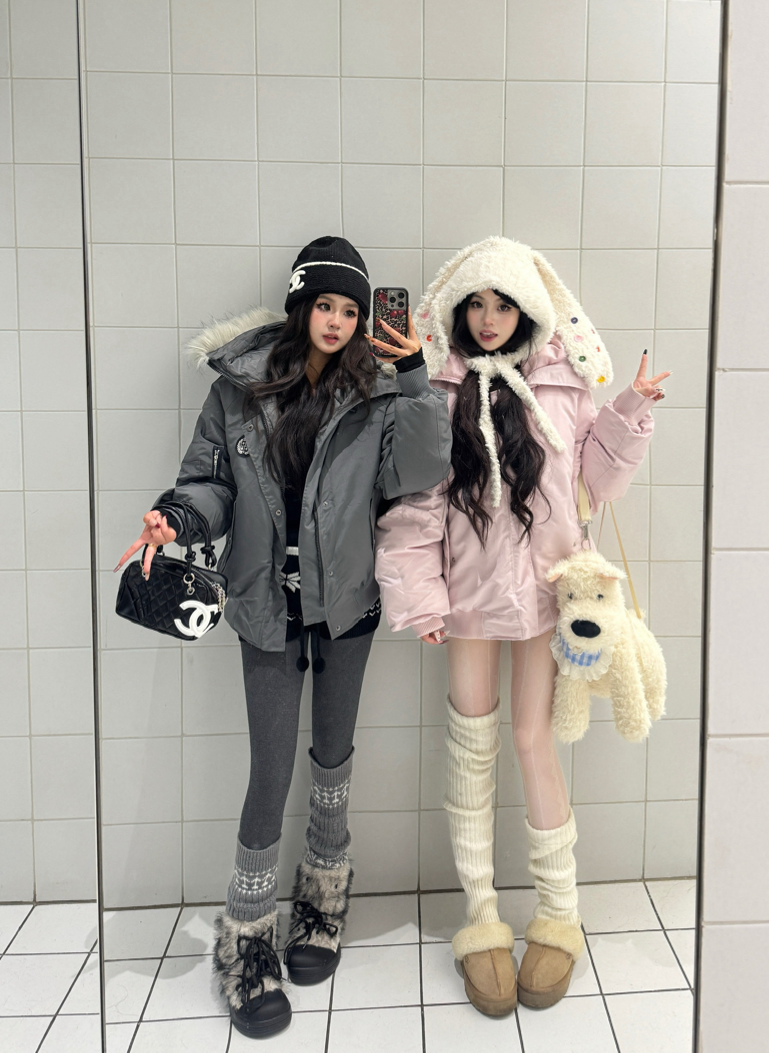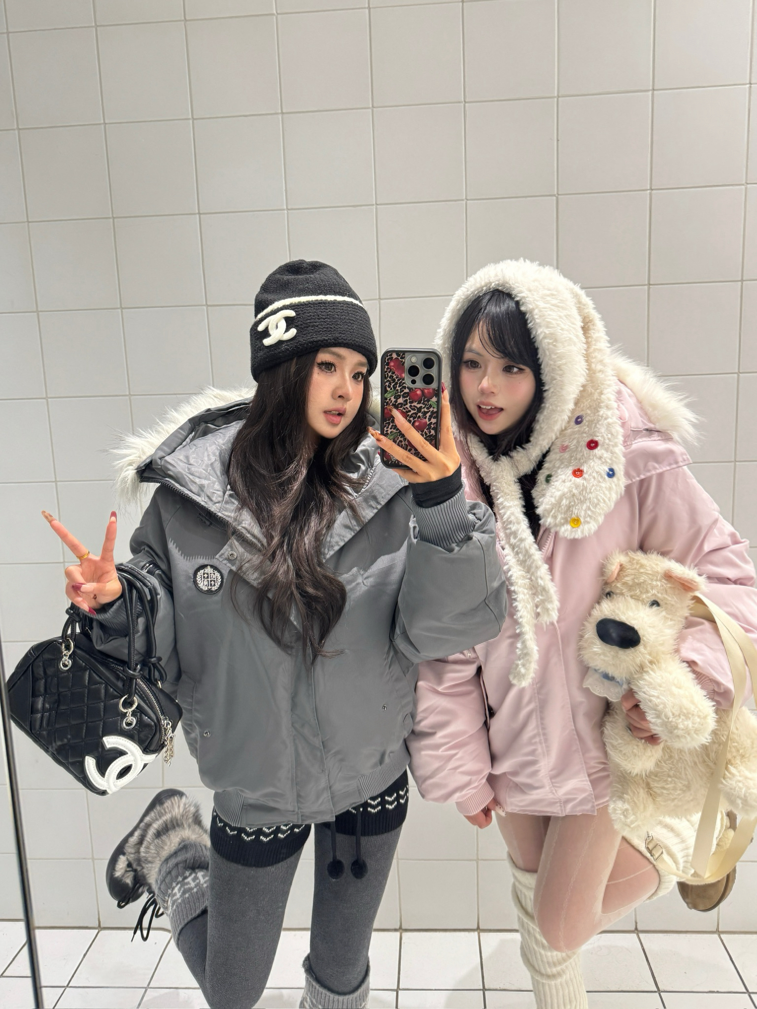 左边这件灰派克: 一开始是冲“耐脏”买的,结果穿了两周发现——毛领看着软乎乎但不塌肩,我这种溜肩穿也能撑得起型。早上赶课随便套个打底裤+堆堆袜靴,不用想搭配就能出门,昨天零下3度穿它,脖子裹在毛领里暖得想叹气,最意外的是口袋巨深,揣手机钥匙完全不鼓包,现在已经成了我“不知道穿啥就抓它”的保底选项。 右边这件粉兔耳: 本来担心粉色显土,上身才发现是那种淡淡的奶粉,黄皮素颜穿也不违和。兔耳帽子是有点...