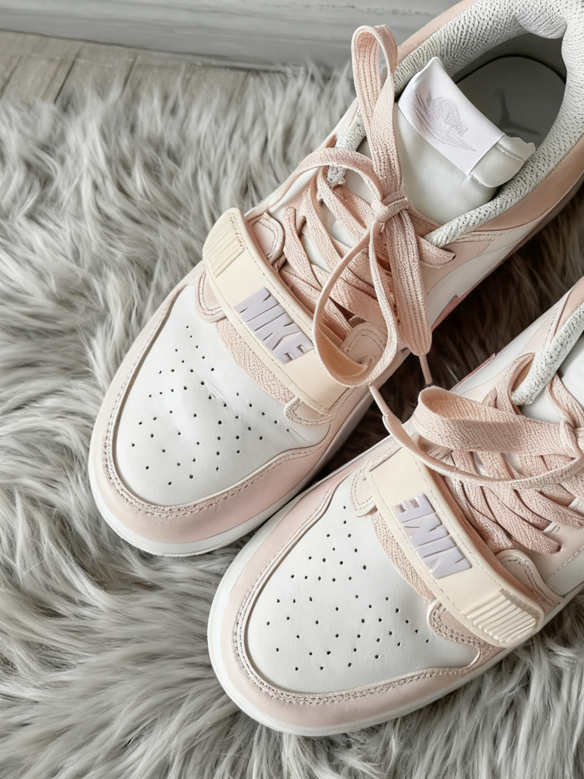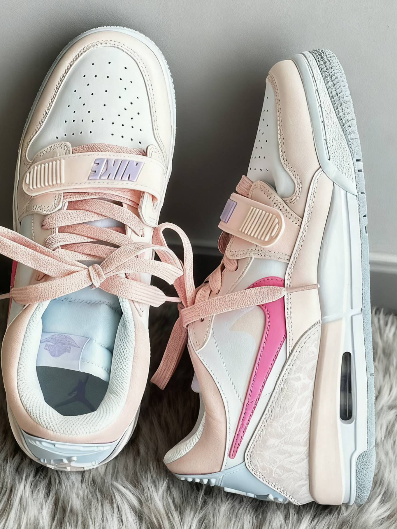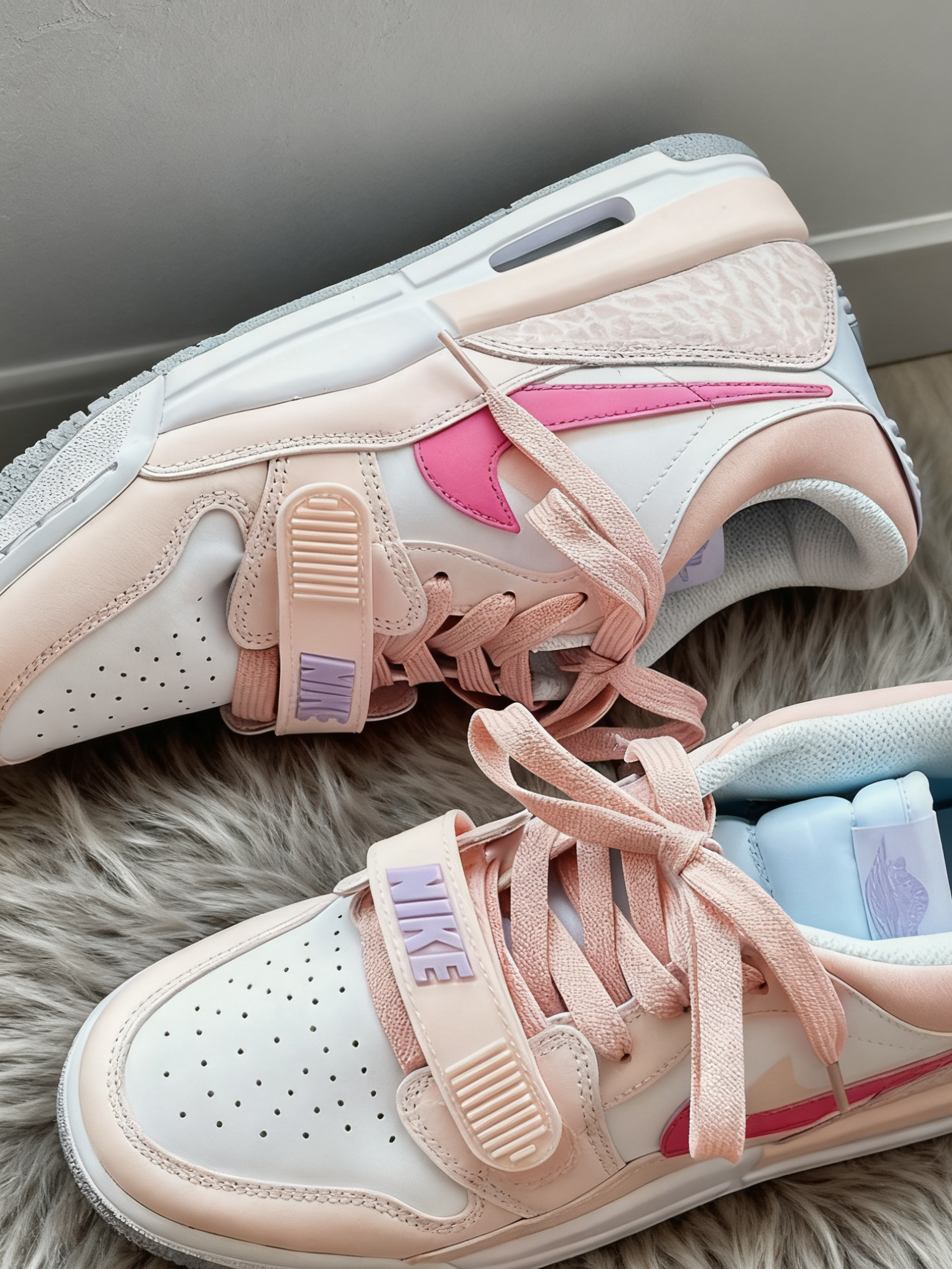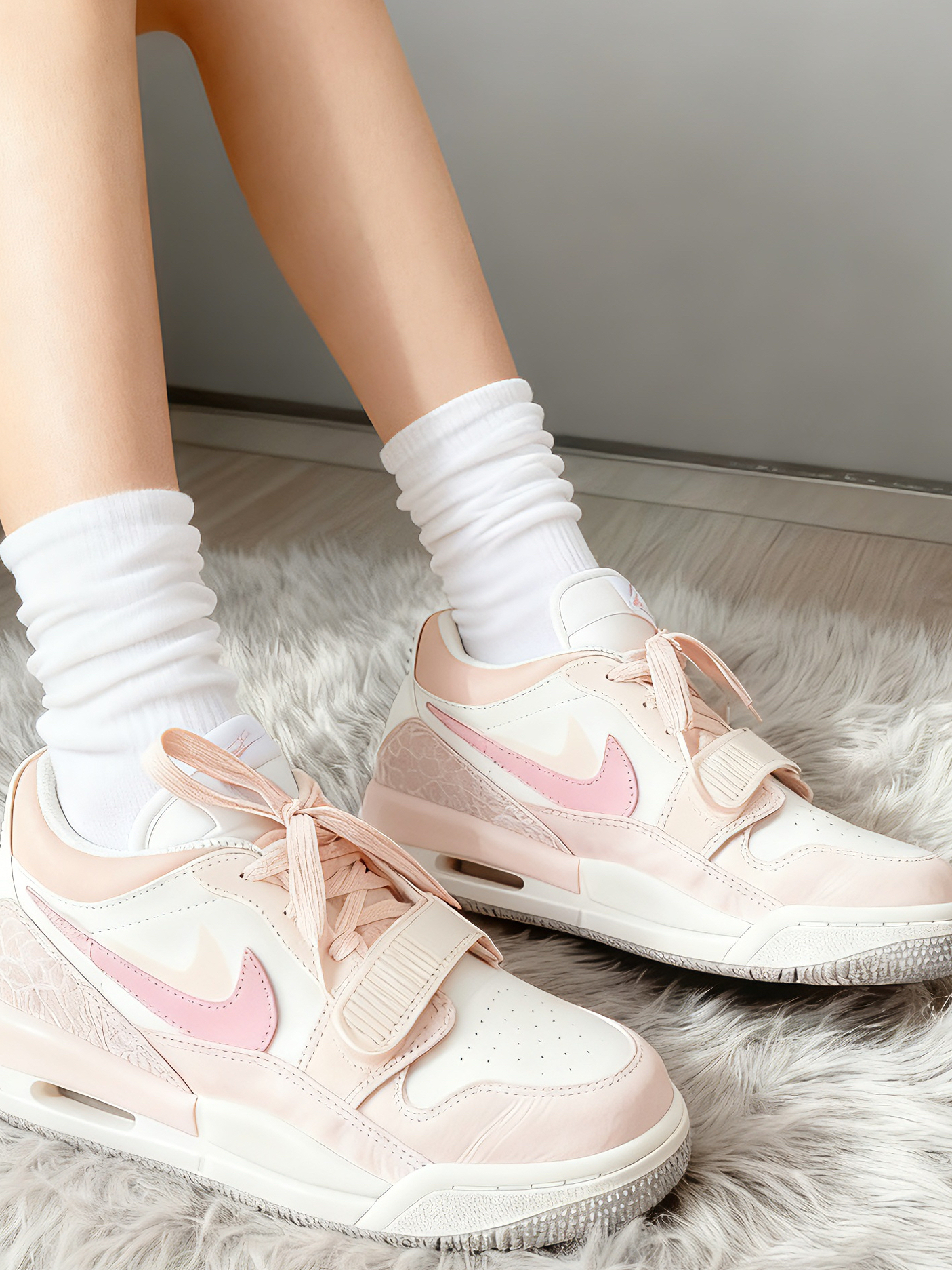 这双Jordan 312也太戳我了!粉白配色嫩得像颗草莓软糖,上脚不硌脚还很贴合,新鞋刚穿就舒服得不想脱。 关键是不用费心搭,百搭的存在让我穿什么都很漂亮。每次穿出去都成显眼包了~