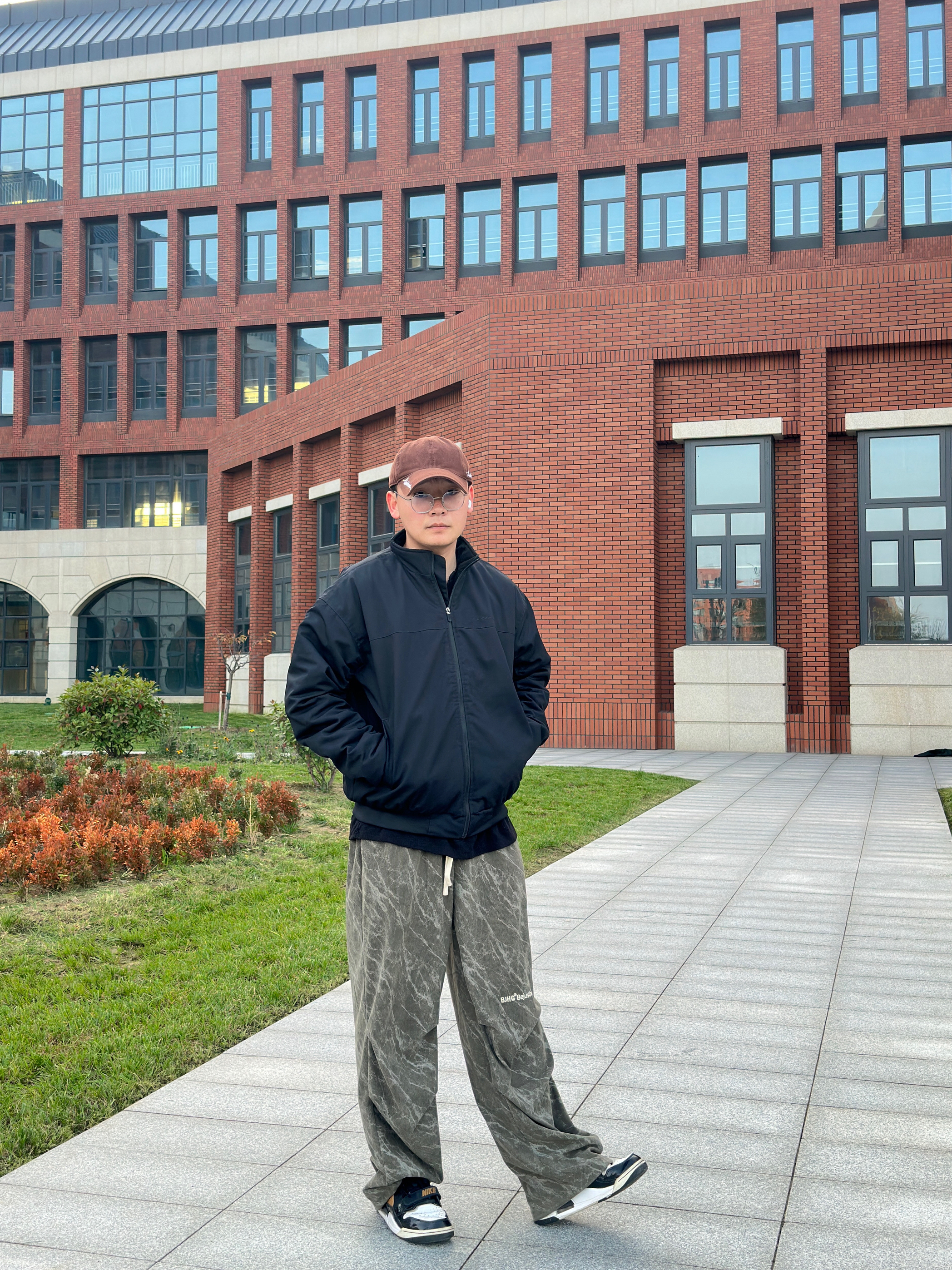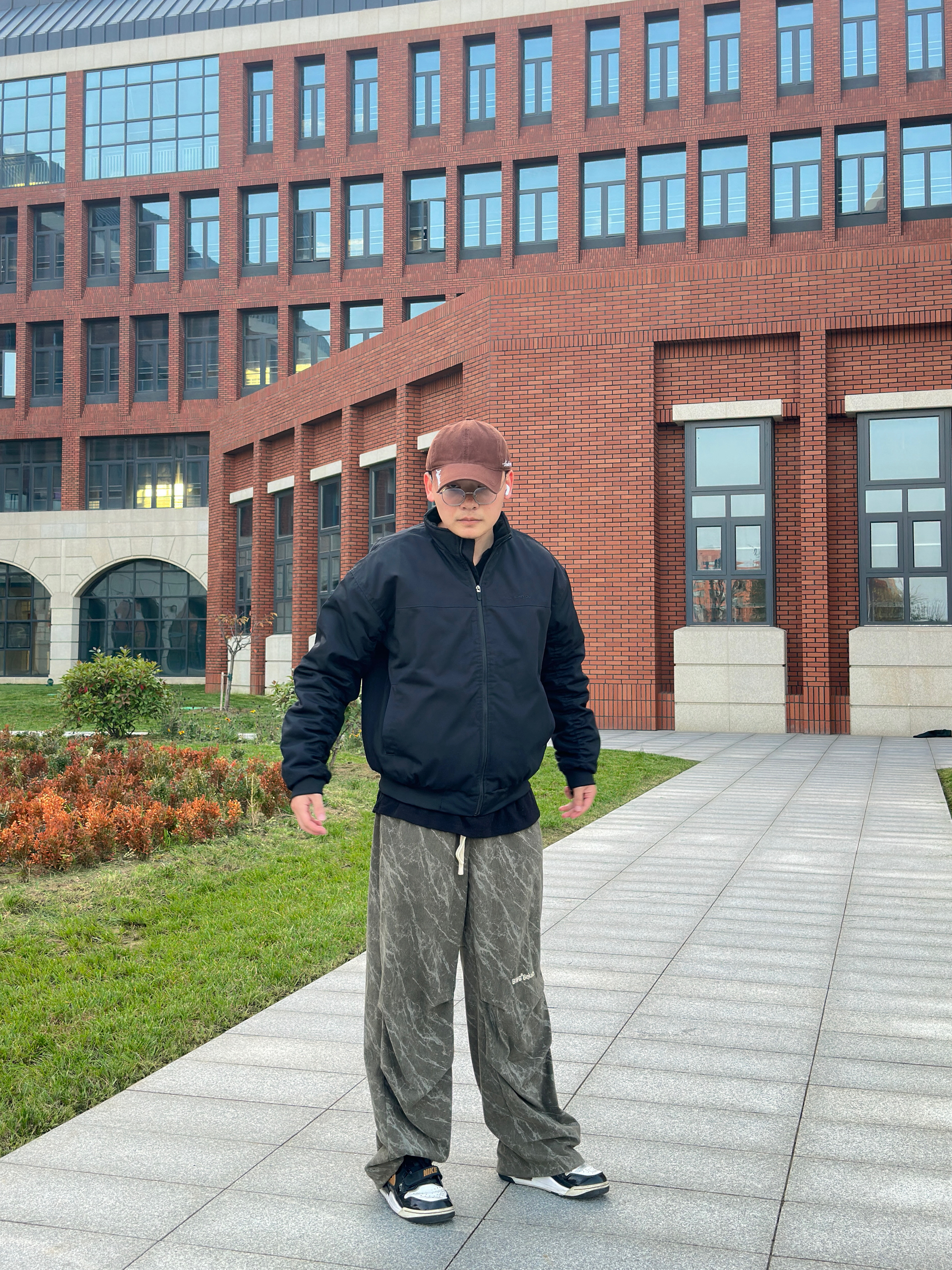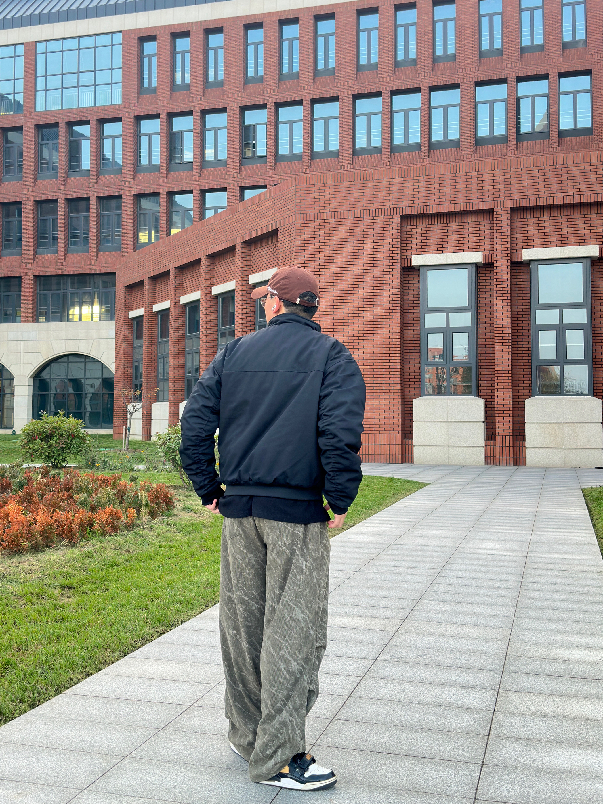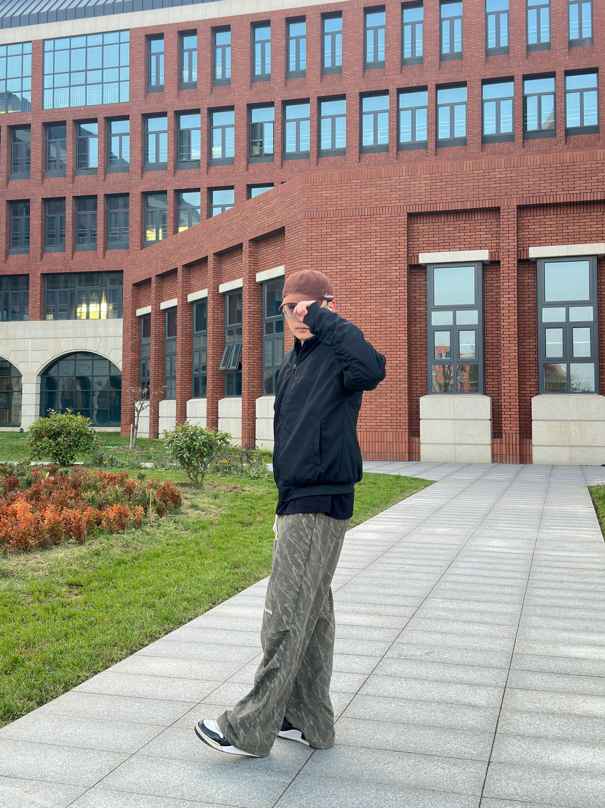 今天这套松弛感直接拉满! 黑色立领夹克软乎乎的,挡风还不臃肿 配条迷彩阔腿裤,垂坠感有了 走路带风还藏肉 脚下踩双经典板鞋,整套不费力显质感 逛公园吹秋风,日常通勤、周末遛弯全hold住 喜欢的兄弟抄作业!