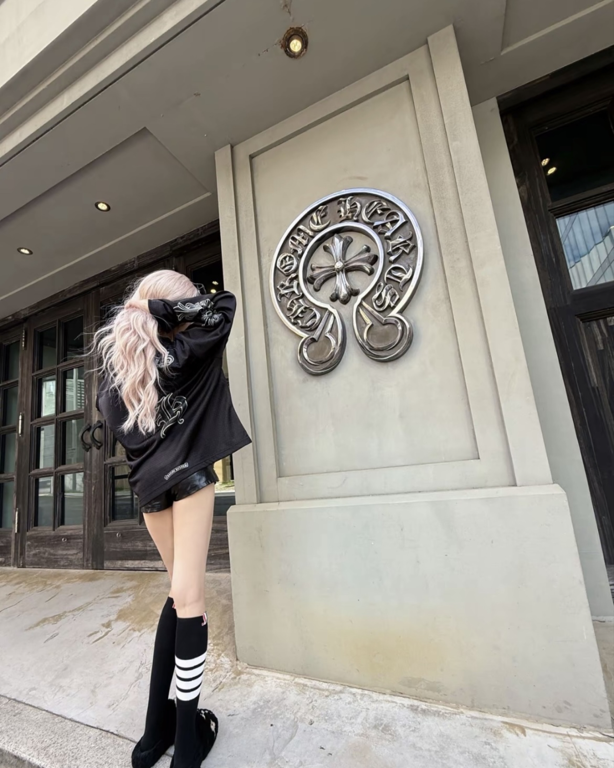美女饱饱的克罗心街头穿搭🤍🖤 一身松弛又高级 Chrome Heart冰球服配tb的腿袜真的好搭!! 而且很显身材🤩 永远无法拒绝克罗心😭😆 #高级感街头风卫衣分享 #酷飒女生街头风宝藏卫衣 #高街氛围感卫衣分享 #克罗心冰球服 #ChromeHearts克罗心
