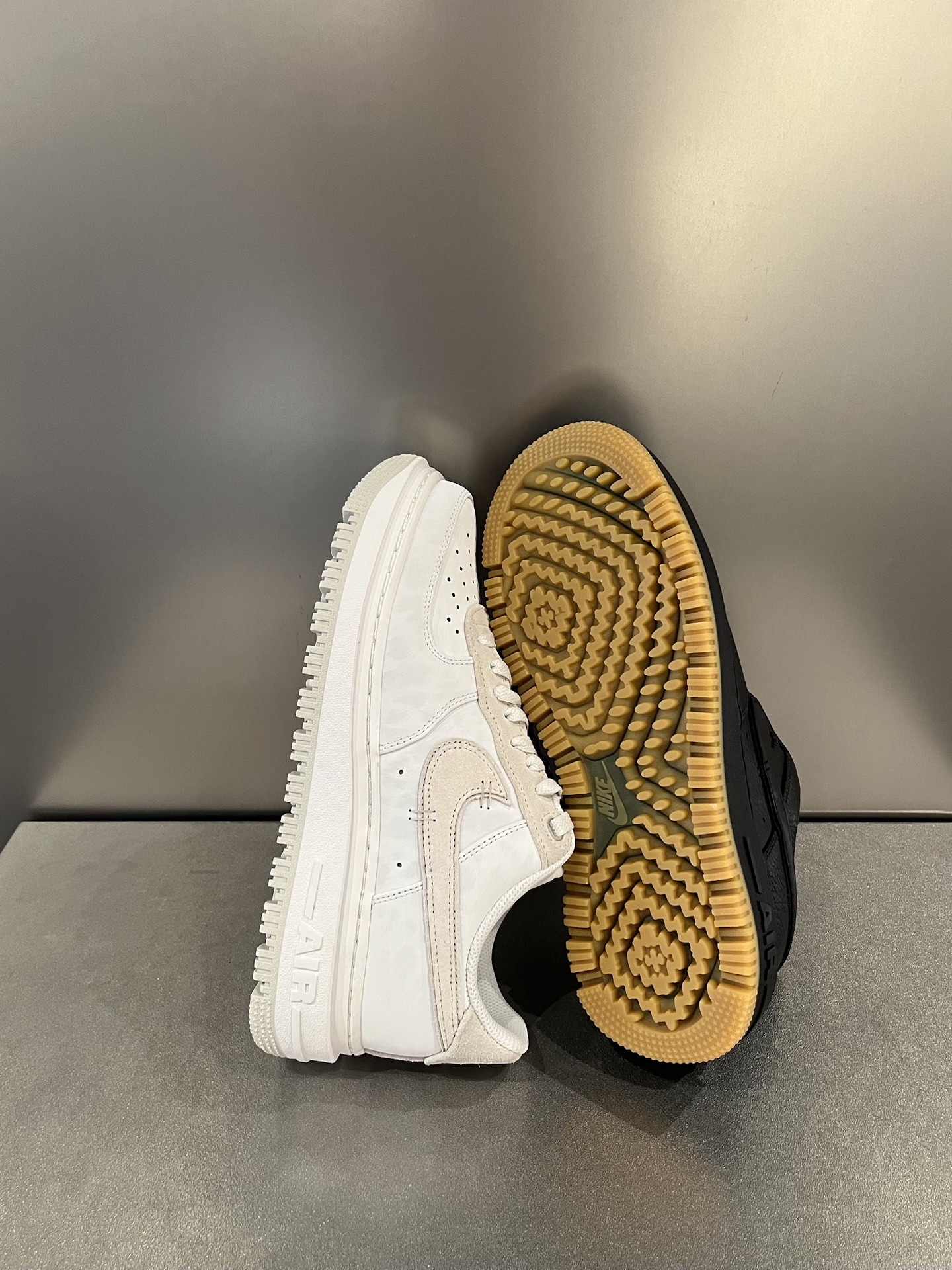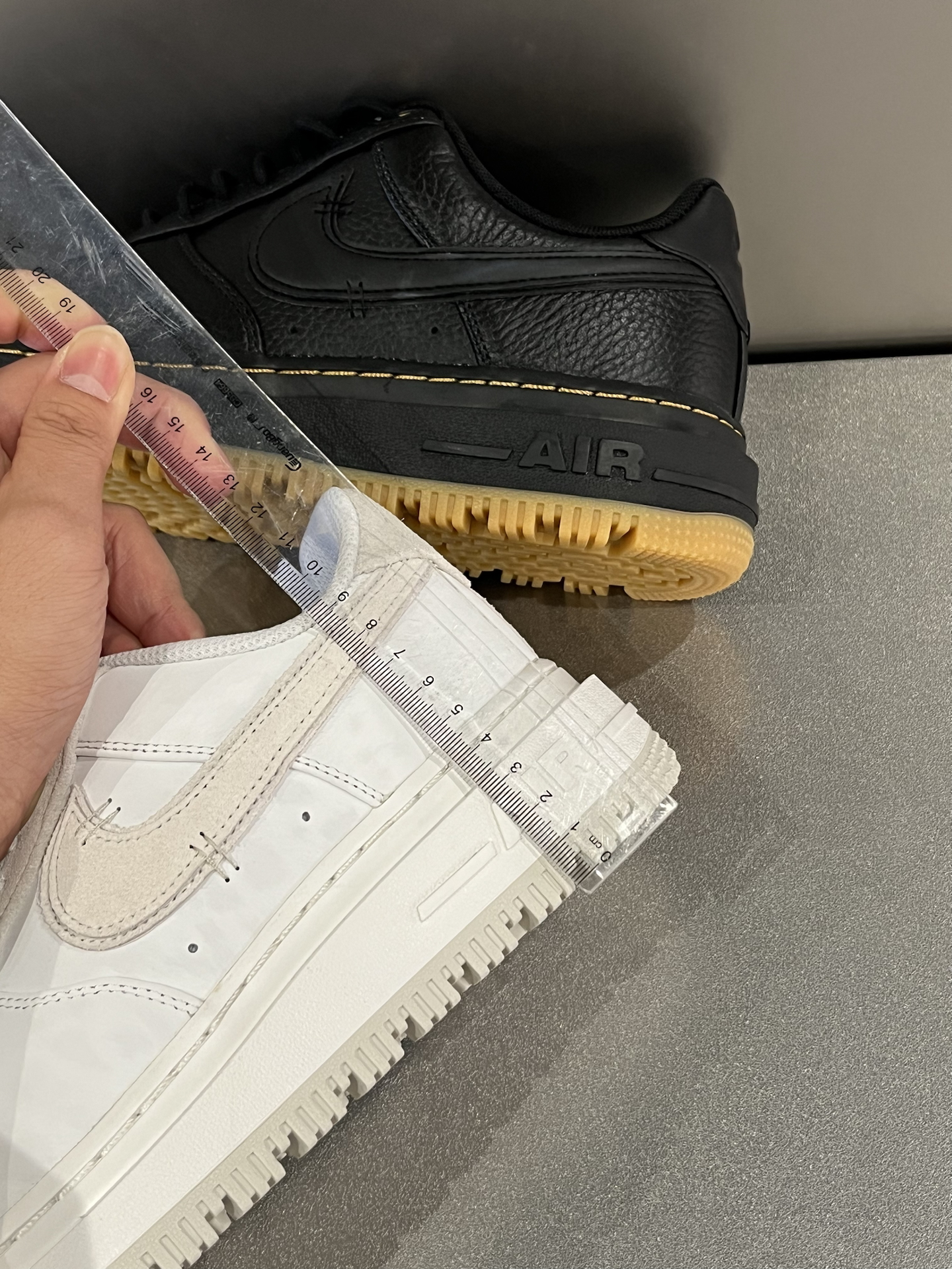 两双秋冬的空军板鞋,重量上确实不轻,但经常穿工装靴的可能觉得没那么重,脚感的话中规中矩 米白这双,皮革暗纹和麂皮组合,层次感很好 而黑色这双,鞋面质感细腻,更耐脏百搭 量了一下,4CM左右的厚底,增加了不少高度 搭配方面,从工装裤到运动卫裤都能驾驭,配什么裤子基本不容易出错 #人人都是球鞋博主 #板鞋控DNA动了 #出门穿搭随手拍 #秋日鞋履焕新指南 #交出你的鞋靴链接