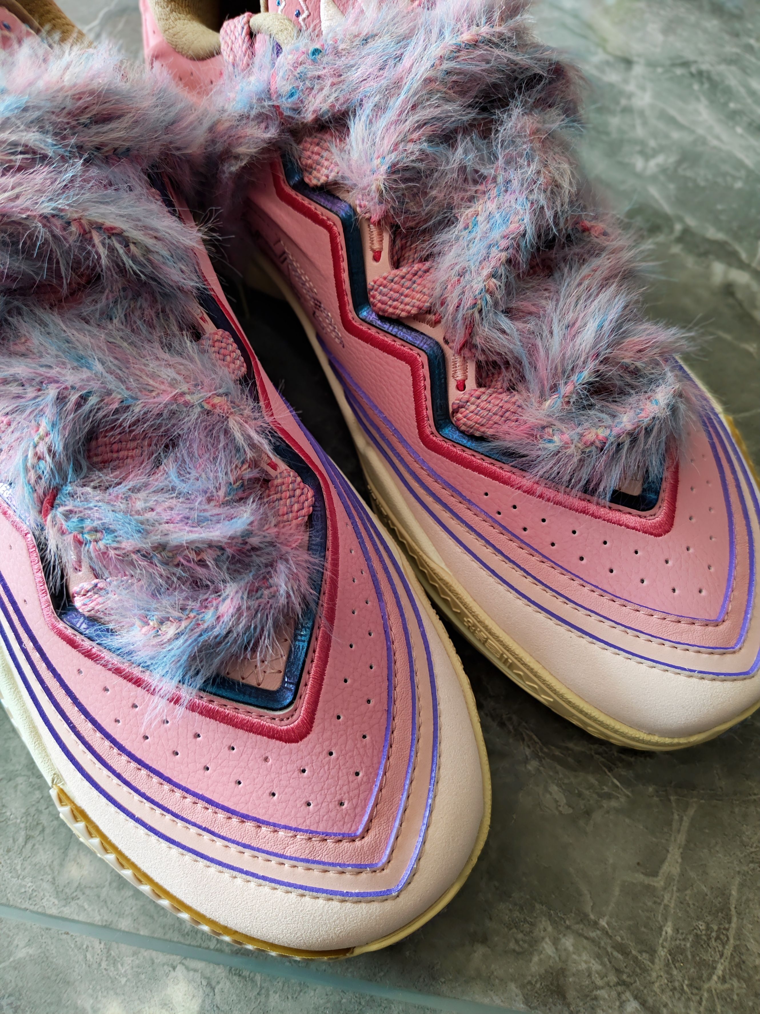 今天拍安踏欧文 2 小公主 相比于首发的球场艺术家或许廉价了 但是谁还不是爸爸的小棉袄呢! 粉粉妹妹的小公主真好看啊!