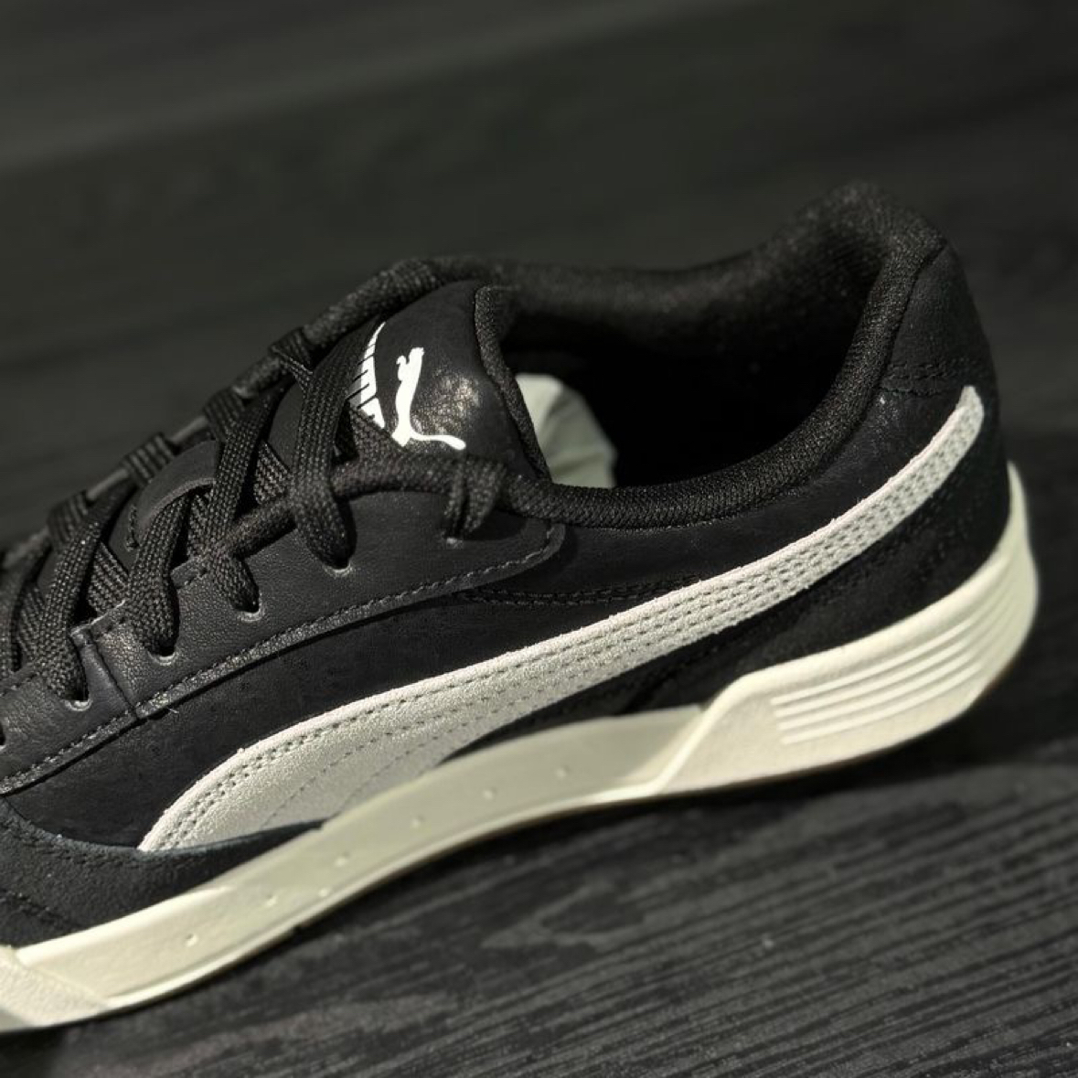 昨晚淋雨去拿奶茶,彪马这双薄底板鞋稳得像猫爪抓地。复古撞色配旧牛仔,闺蜜笑我像九十年代港片主角。低帮走路轻飘飘,建议搭中筒袜——不然秋风钻脚踝,凉飕飕的。黑白拼接脏了也不显,懒人福音啊。