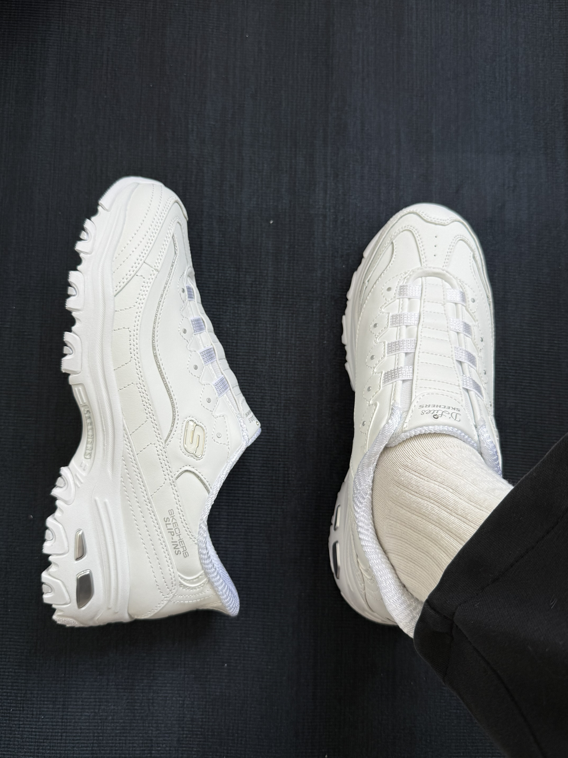 这双鞋的鞋面是皮革和针织材质,摸着手感特实在,还透气——春夏秋穿都合适,春天不闷脚🍃 、夏天穿着清清爽爽☀️ ,秋天穿也刚好🍁。 我觉得上脚撑得特别稳,不硌脚也不松垮,走久了脚掌也不酸,这鞋还能增高,搭衣服不挑款,不管是我经常穿的黑裤子、还是日常的裤子👖还是裙子👗,看着利落又不拖沓。 鞋底纹路深,日常走路踩着稳当不打滑。最省心的是不用系鞋带,出门脚一伸就好,白加银的颜色也干净百搭,不用费心想搭配...