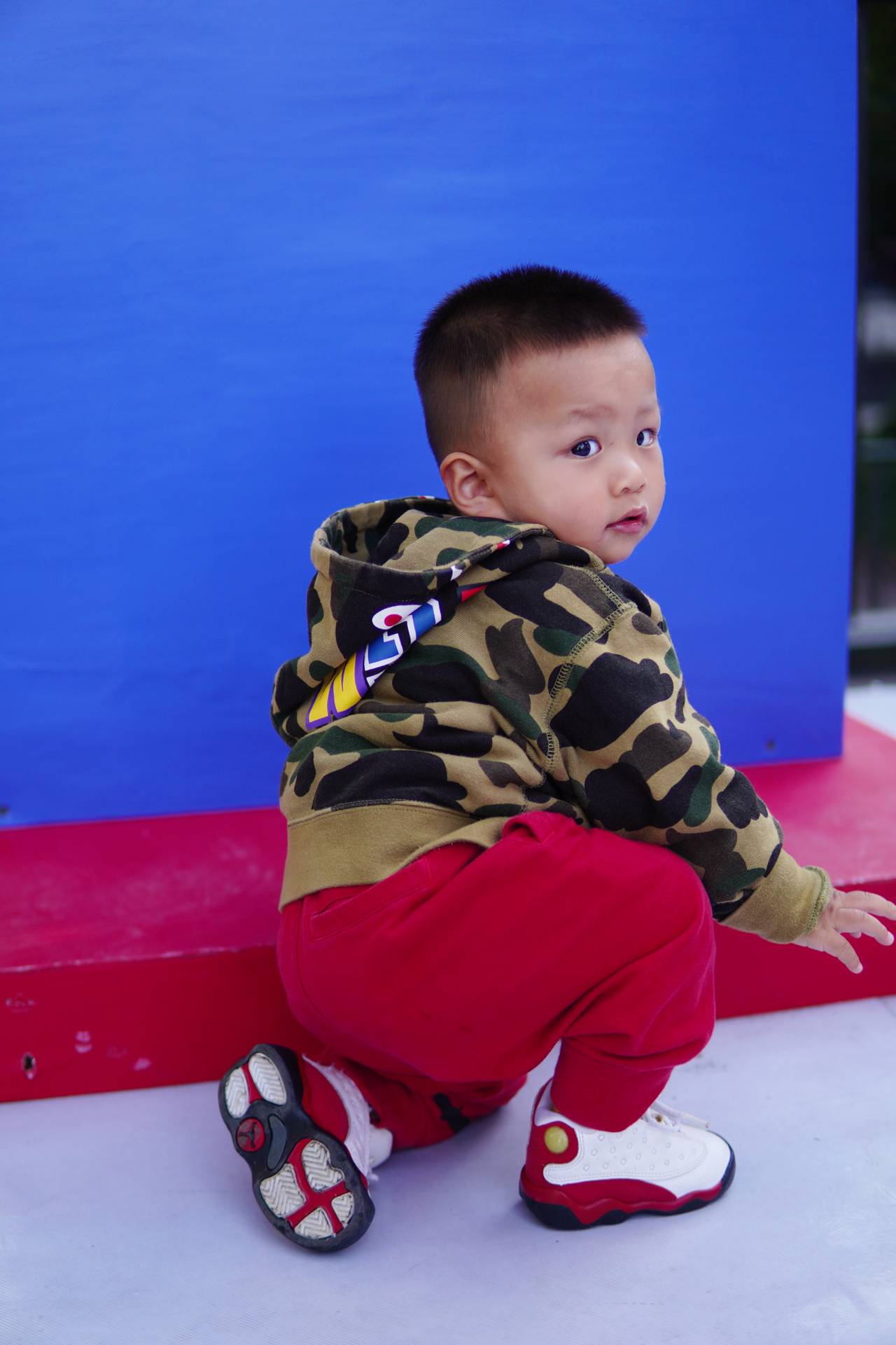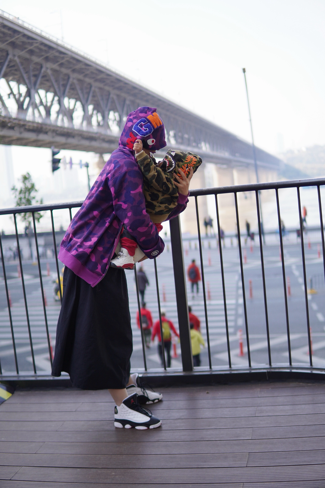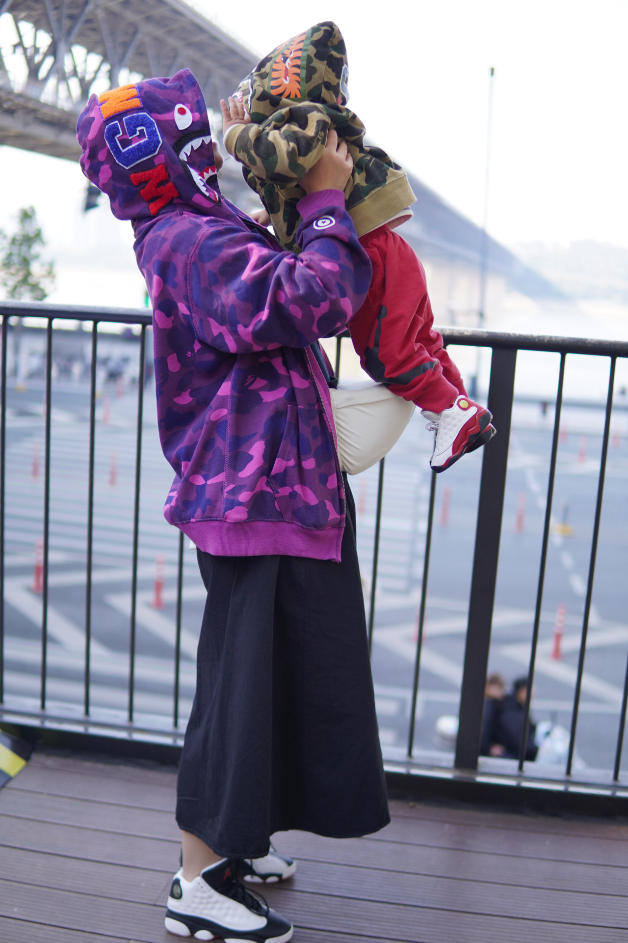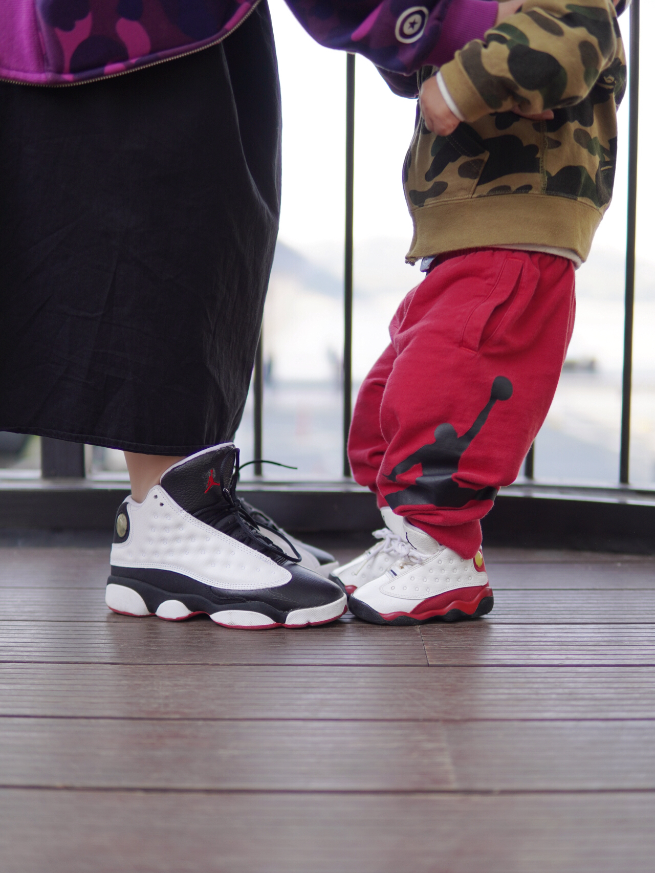 #韩系入冬穿这双 今天又是带妈妈和宝宝出来玩的一天 月底终于有空可以出来走走啦 每周都会抽两天陪陪孩子出来转转 ▪️ 今日份亲子装 衣服:BAPE鲨鱼外套 鞋子:AJ13 都很经典上身也很时尚 版型很正怎么搭配都好看 #带娃日常潮娃穿搭 #亲子装穿搭 #亲子出游穿搭 #遛娃穿搭