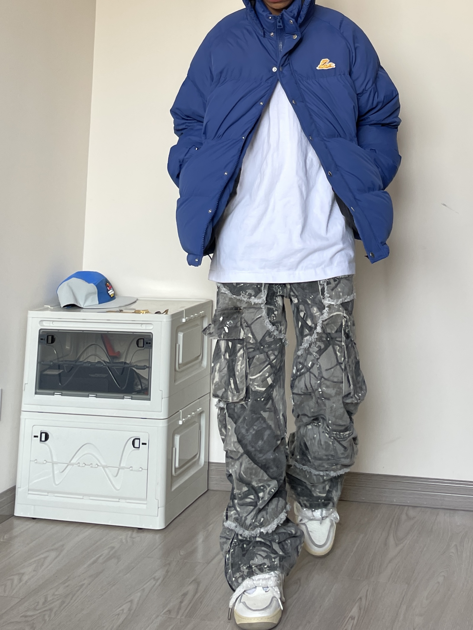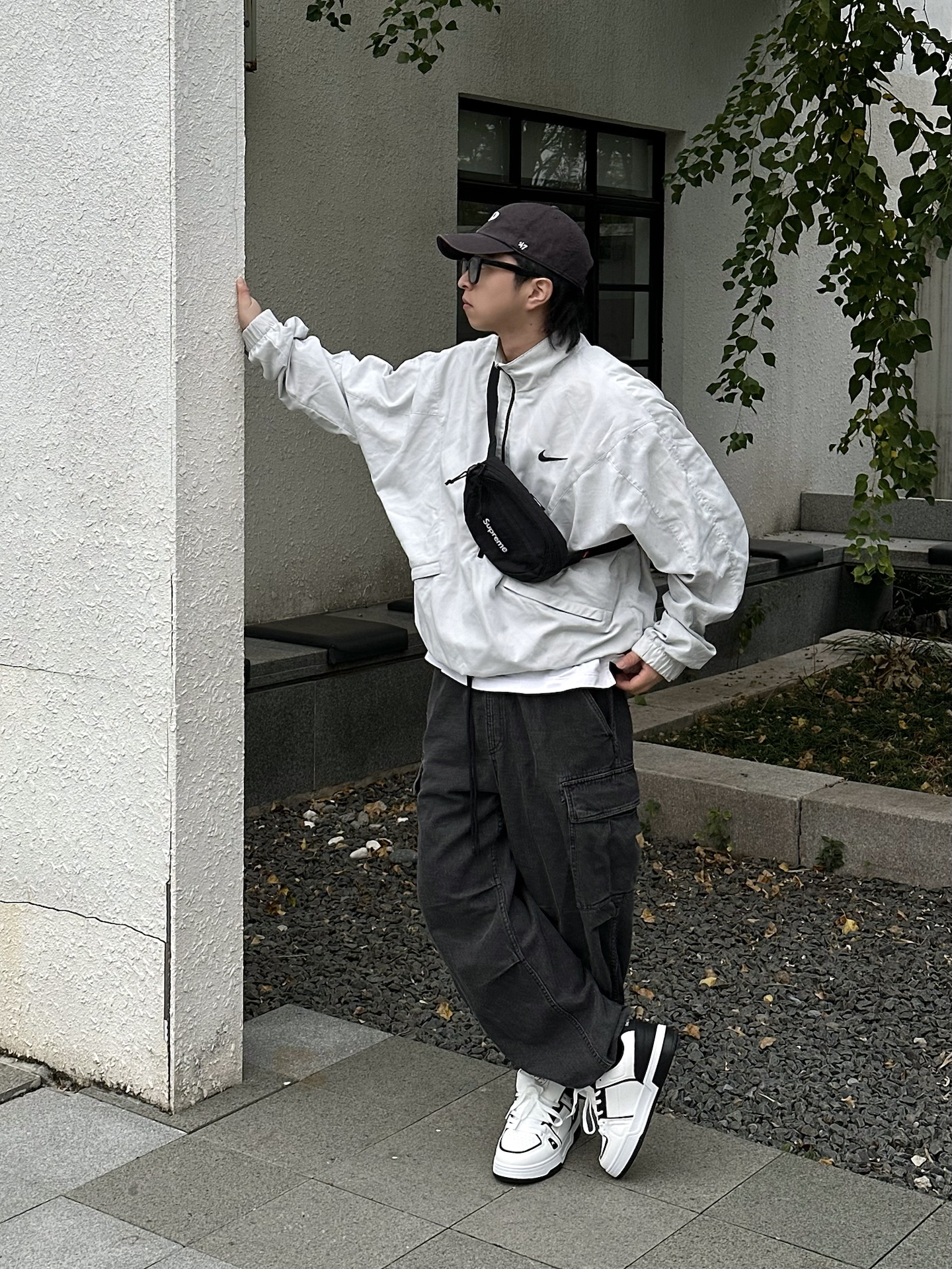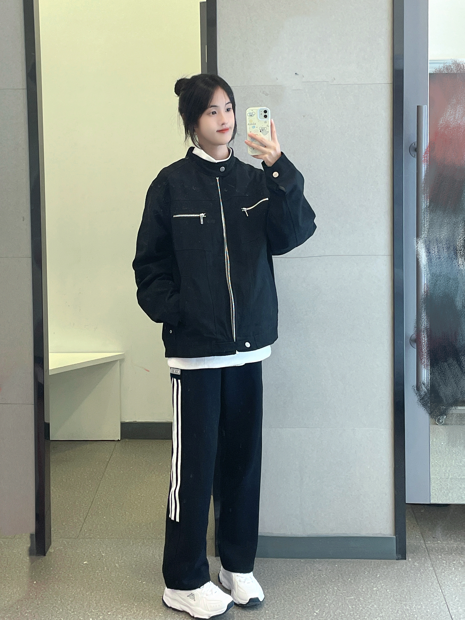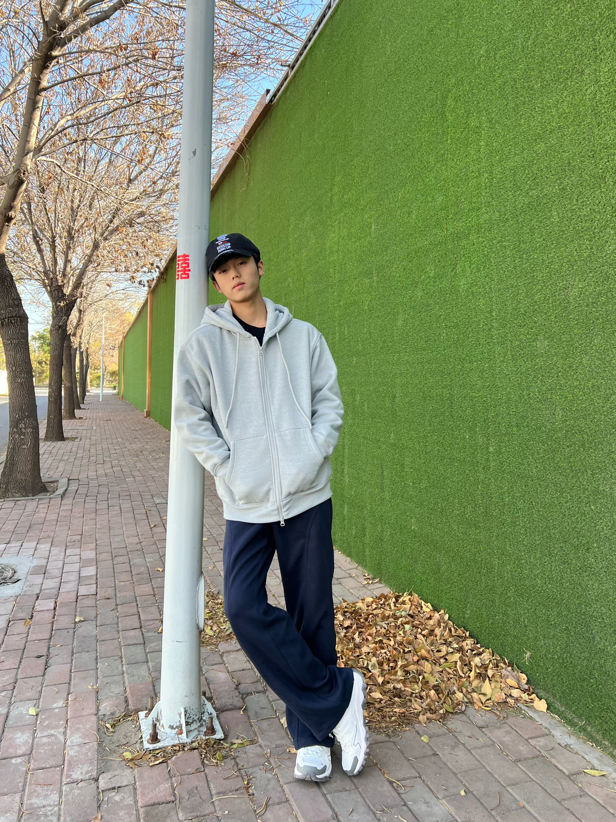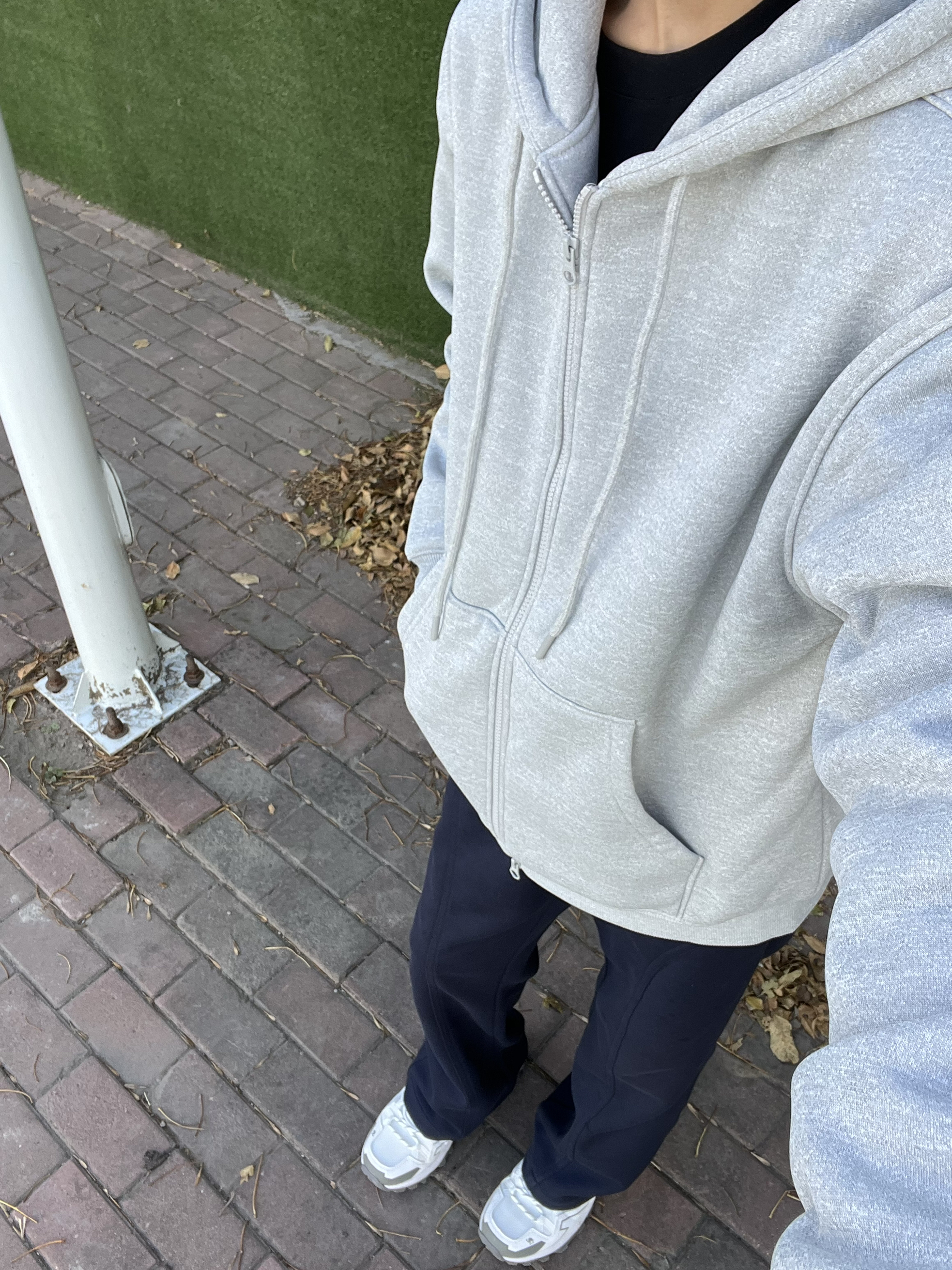 今天这套直接戳中日常穿搭审美😍 浅灰色连帽开衫软乎乎的,亲肤感拉满! 宽松版型遮肉又藏拙,随便套上就有慵懒氛围 内搭基础黑T,简约不出错✅ 下装搭藏青垂感阔腿裤,利落还显腿长 配双老爹鞋,休闲感直接焊死 出门不用费脑,套上就能出片~