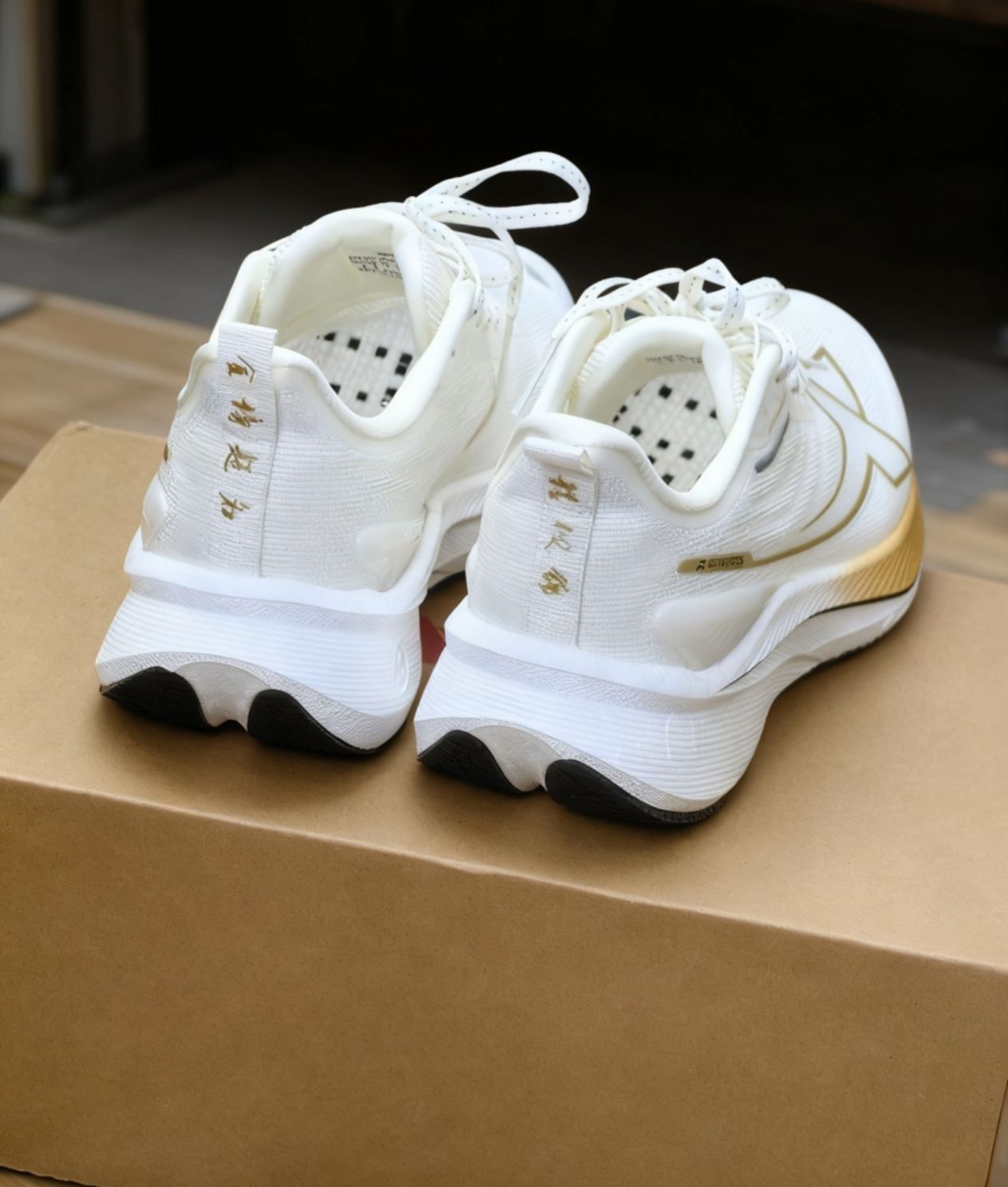 拆开鞋盒的瞬间,这双白金色的鞋款直接把“高级感”具象化了——奶白底色衬着鎏金线条,利落的几何纹路顺着鞋身弧度铺开,不晃眼却自带低调的光泽感,哪怕随意摆着都像件小配饰。 后跟那行细密的文字细节是藏不住的巧思,轻轻扫过就能摸到质感;翻到鞋底,深浅交错的纹路既做足了抓地的实用度,又让底部看起来层次分明不单调。 上脚更惊喜:鞋面的透气网布裹着脚却不闷,踩下去的缓震感刚好托住步伐,不管是挤地铁通勤、逛一下午...