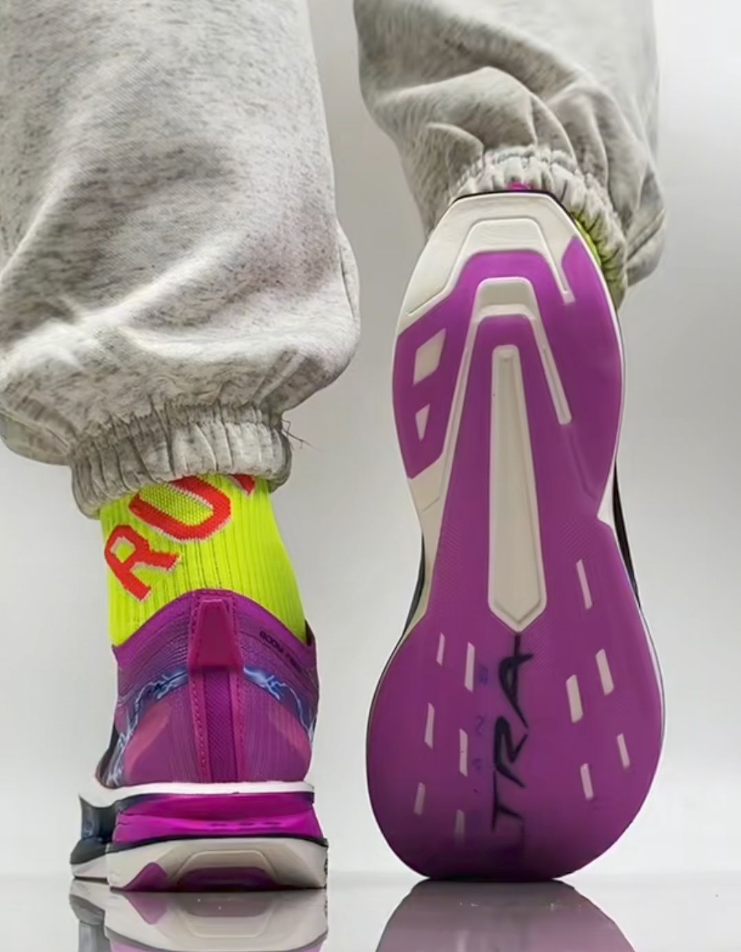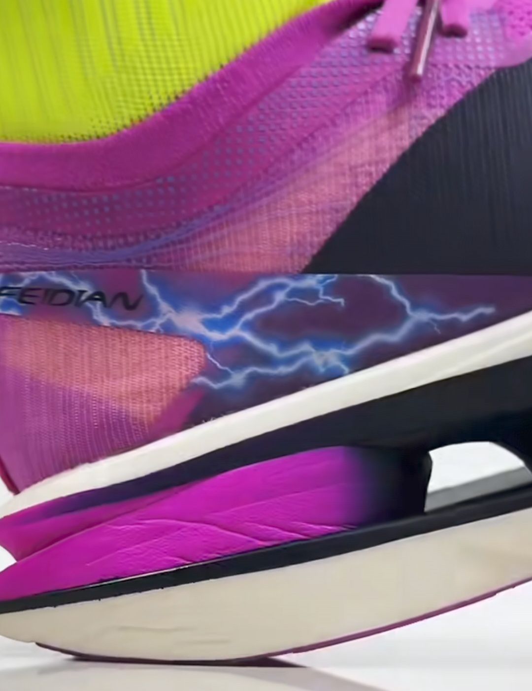 刚穿上飞电5 ULTRA那刻我直接"尊嘟假嘟"!这䨻科技中底软弹得不像话,像踩在会呼吸的果冻上!但跑了3公里后我开始怀疑人生——前掌那块碳板推着我往前冲,根本停不下来,配速直接起飞!朋友说我穿这鞋跑步像开了外挂,但说实话这推进感太强,小腿肌肉一直在抗议!所以这脚感到底是神仙体验还是甜蜜的负担?【有没有同款腿软选手?】