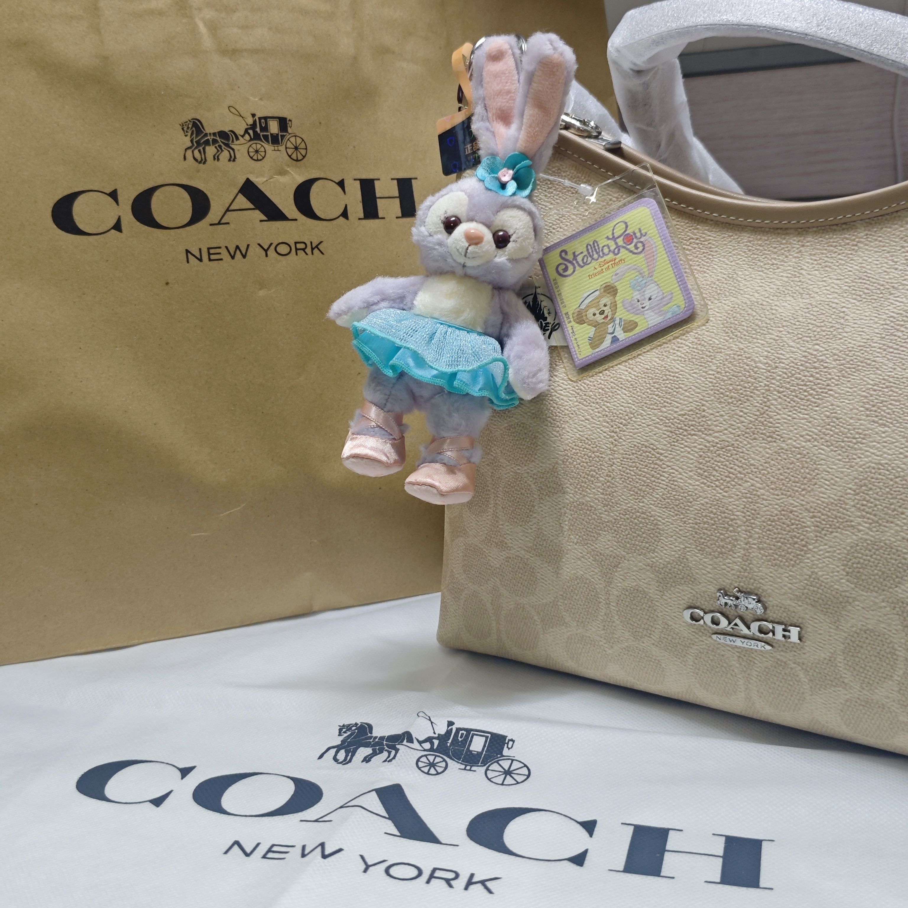 Coach流浪包新奶茶色终于到手啦 也算是人生中第一个小轻奢包包 两千元左右的包还是有点小肉疼的,就当奖励给 自己的年终奖,到手了很喜欢很开心 之前就看中这款流浪包了,一直想要奶茶色,但是各个平台都没货,要不就是溢价很高,所以纠结半天后来到的是新奶茶色(也就是豆沙色)这个颜色也很好看,百搭!搭配了延长链装饰链和一个迪士尼小娃娃,更年轻精致一些,很推荐!🉑!