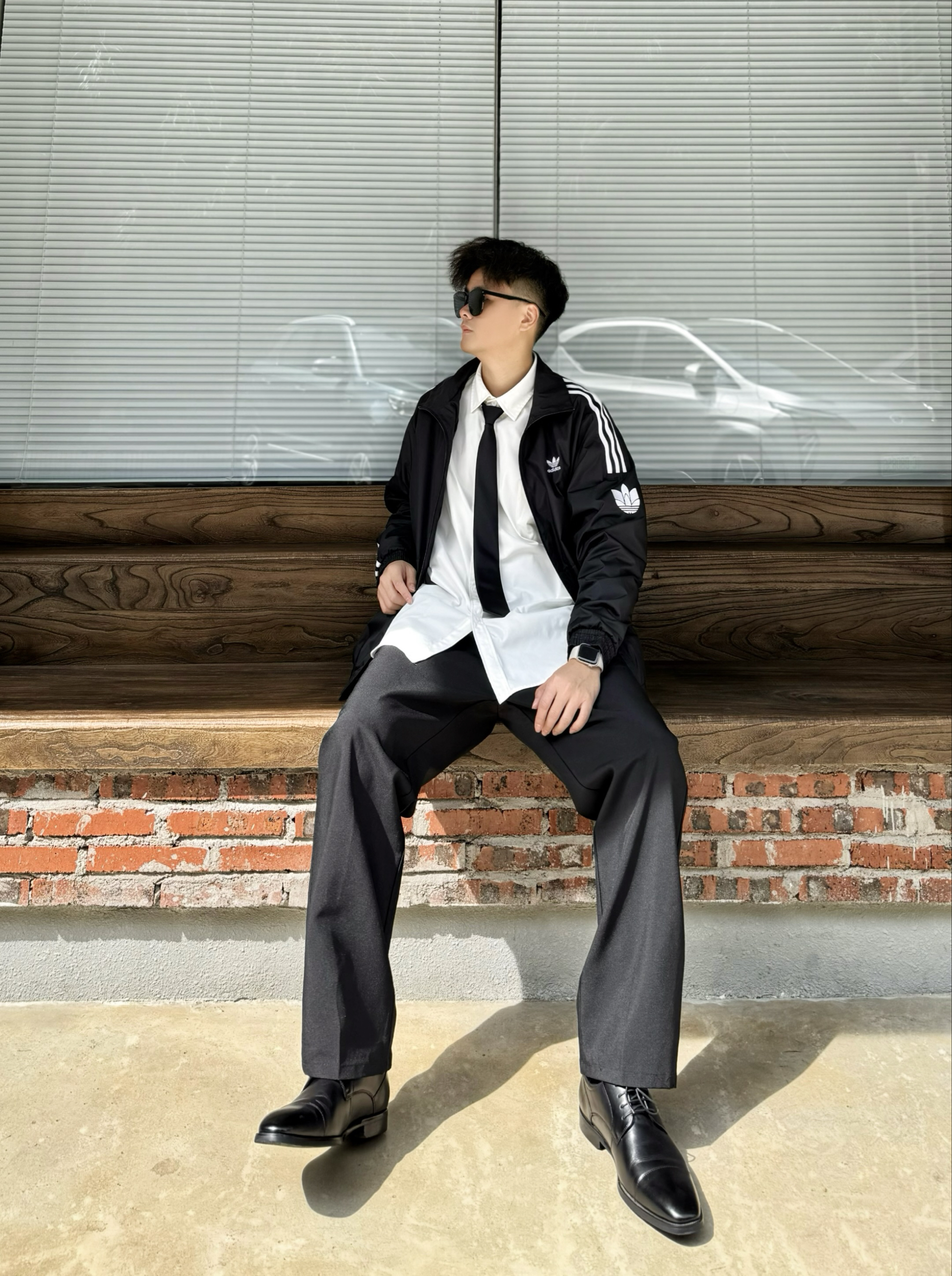 hello,阿b仔来了 分享早八高效出门穿搭,瞅瞅看喜欢吗? 👔白色衬衫+👖黑色西裤,经典又百搭okk 系上🧣黑色领带,再外穿🧥运动夹克外套 这不,轻松营造出不费力的少年感了嘛 👞然后搭配黑色皮鞋 商务休闲风get,低饱和“黑白配”爱了 皮鞋一字头外观,上脚挺好看的耶 脚感还阔以,质感也还挺nice 我是44的脚,这双穿的44码刚好冇问题 💡怎么样!这套早八ootd你们喜欢吗? 不妨来评论区告诉我...