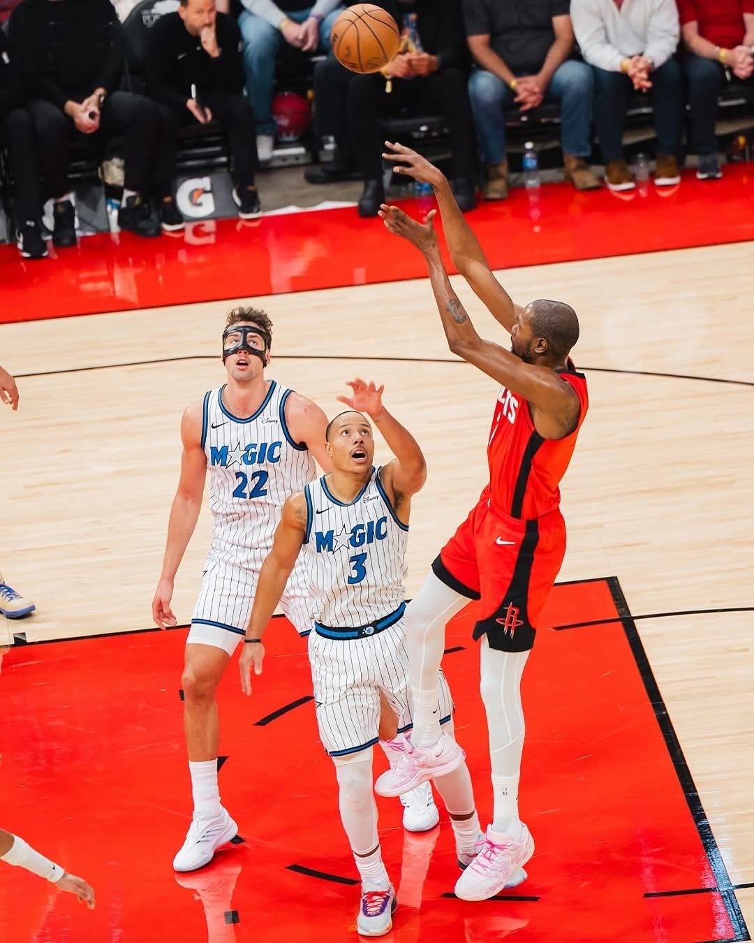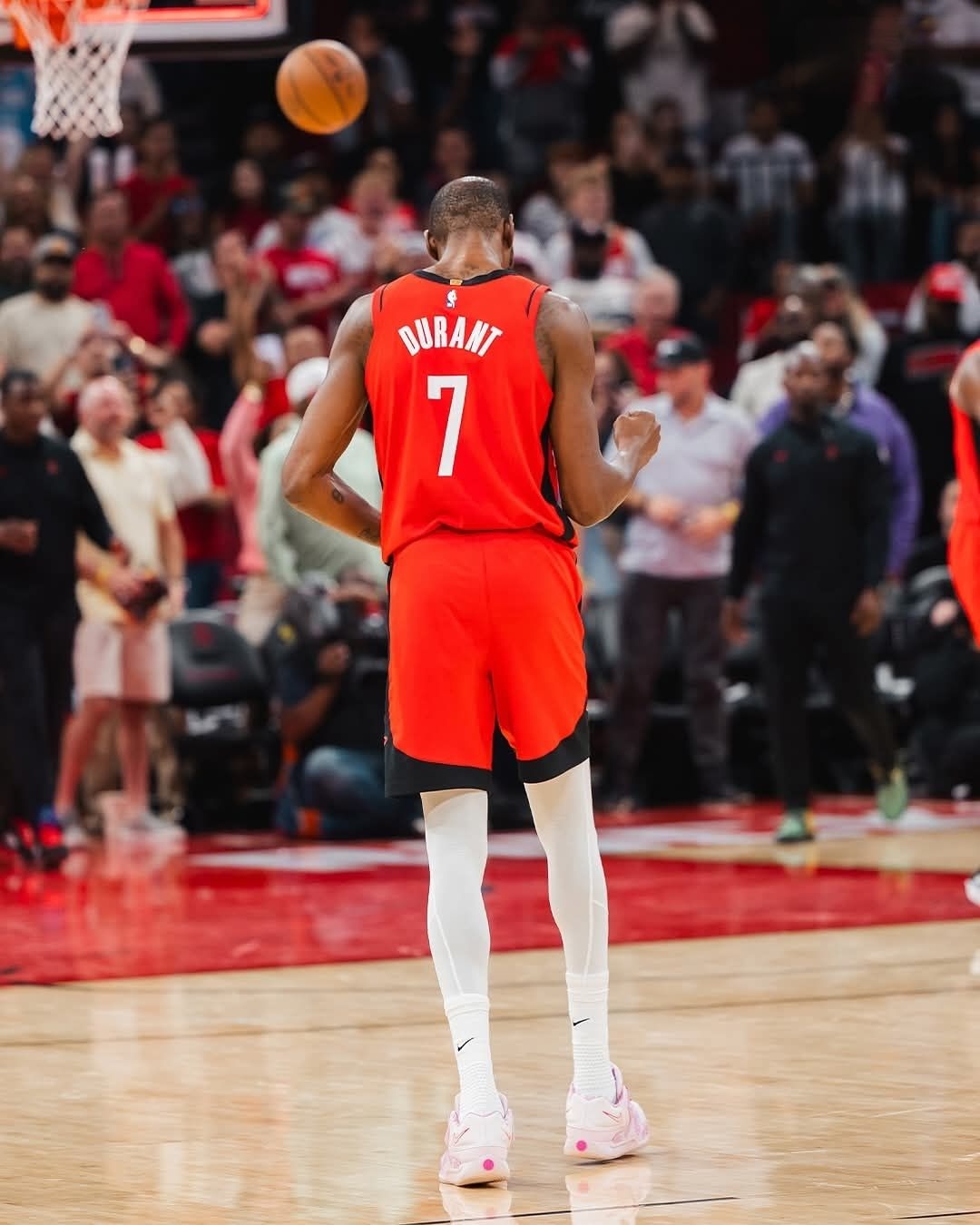 粉白鞋尖踩着春的气息,红袍7号攥着赛场的风——当KD18的气垫陷进木地板,春天的温柔,早成了死神扣动扳机的后坐力。
