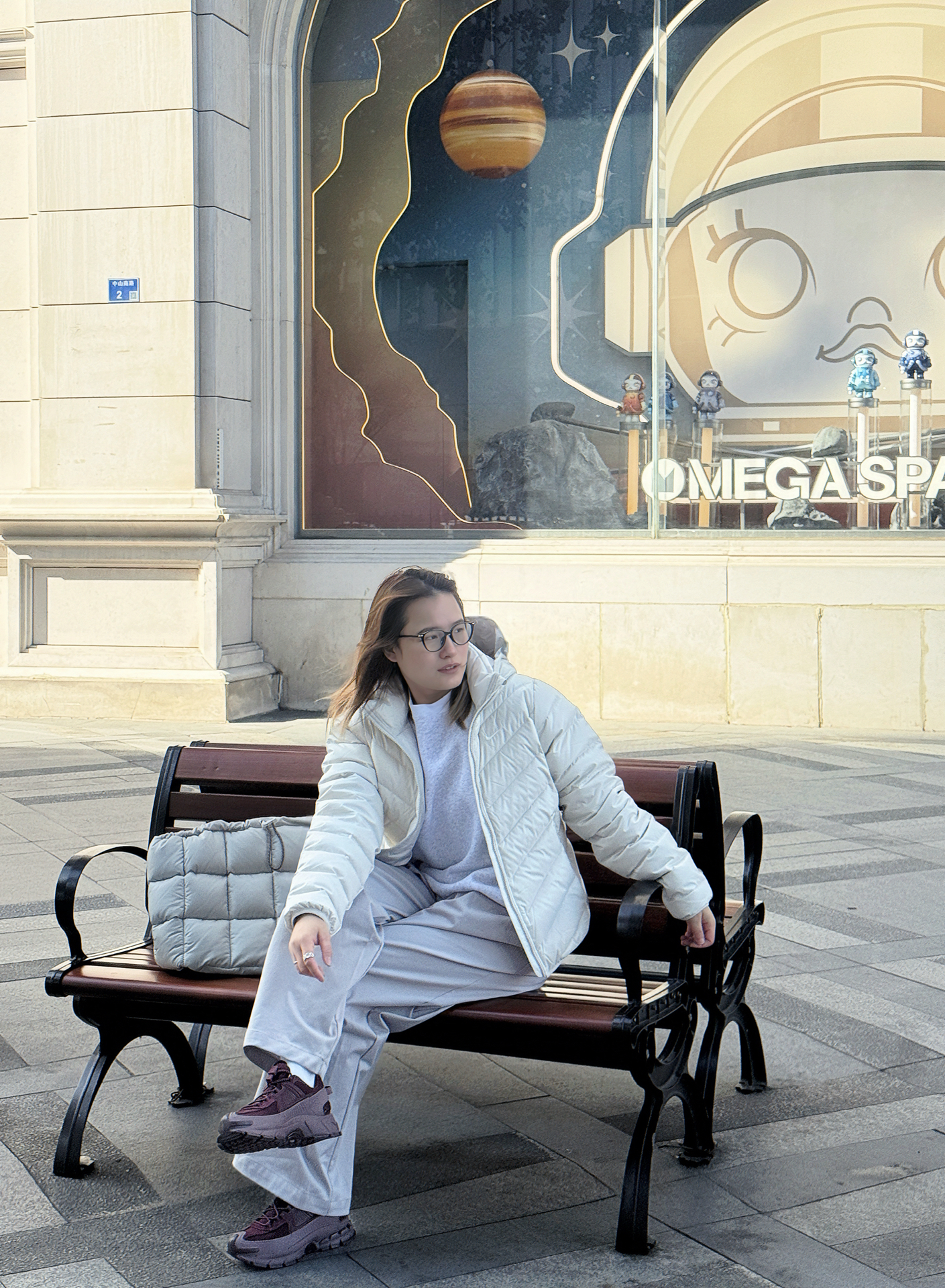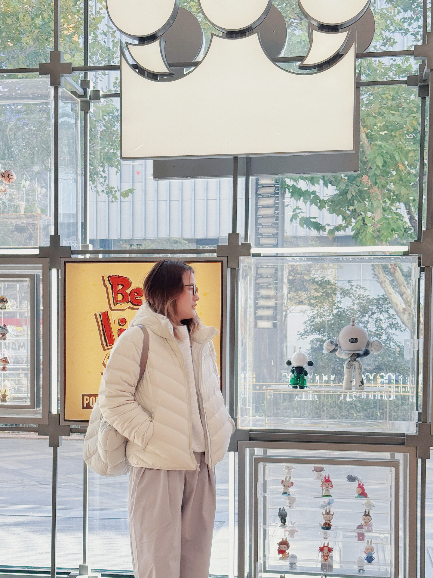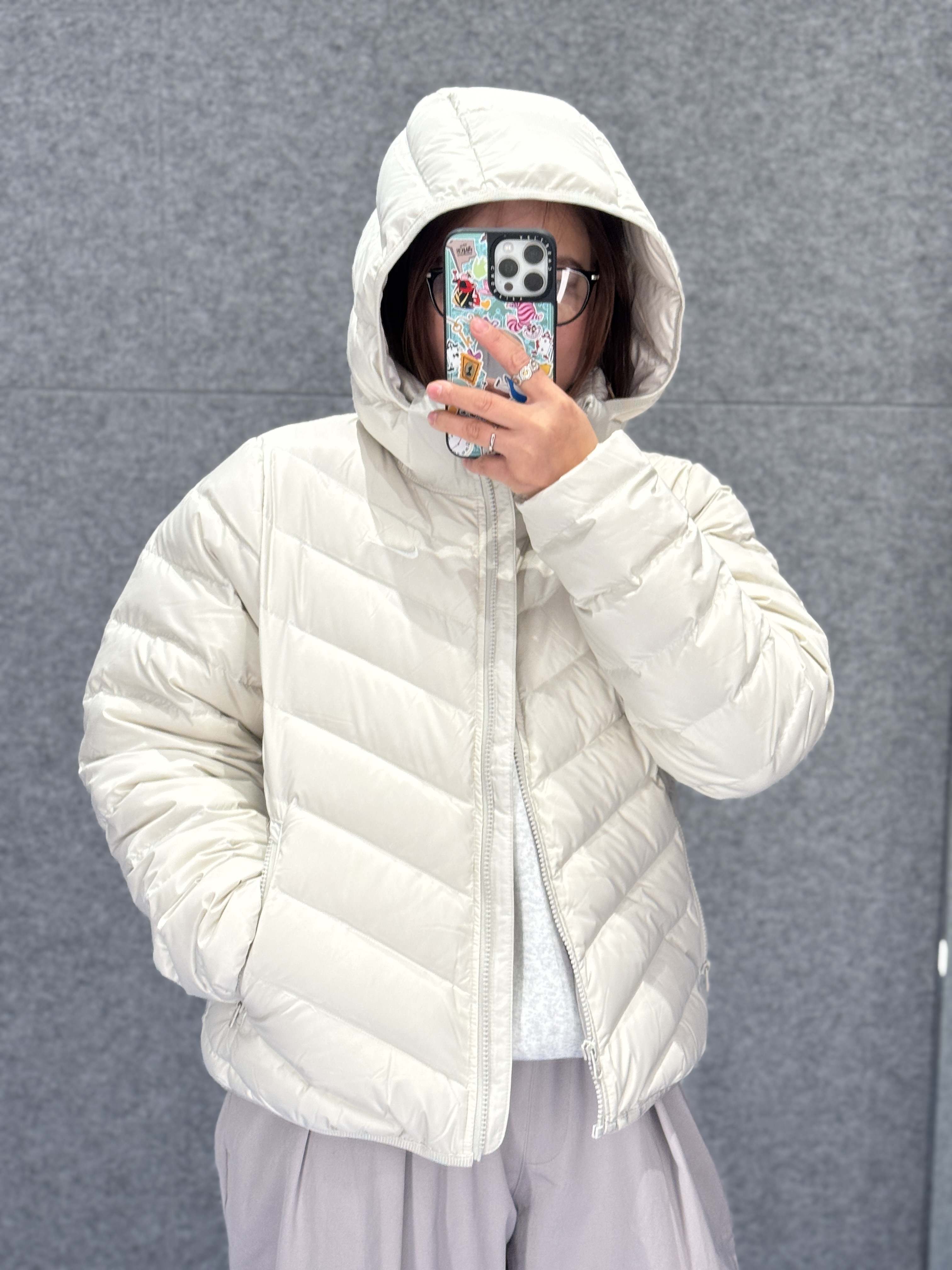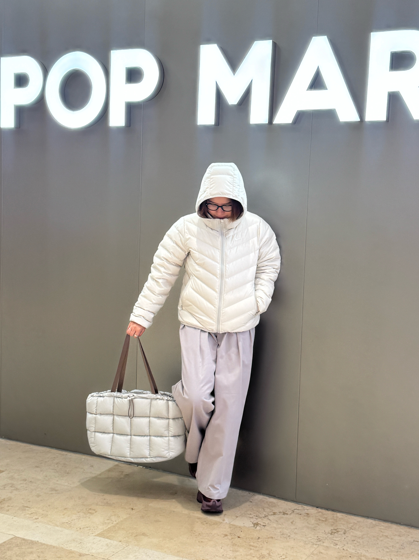 宝子们!最近南京的天气温度真的满30-25🥶早晚温差较大,还是要穿保暖一点哦注意不要感冒了😢。 哈哈哈在泡泡玛特门店前随手拍的ootd居然这么出片📸 今天穿的是耐克最近很火的🔥奶乎乎的排骨轻薄羽绒服,连帽设计又暖又有安全感,搭配浅灰阔腿裤,走路带风还特显腿直~😝 重点夸夸这个同色系羽绒托特包!方格纹好有质感,容量大到能装下笔记本+补妆包,通勤、逛街都能背,和羽绒服搭在一起简直是“松弛感套装”本套...