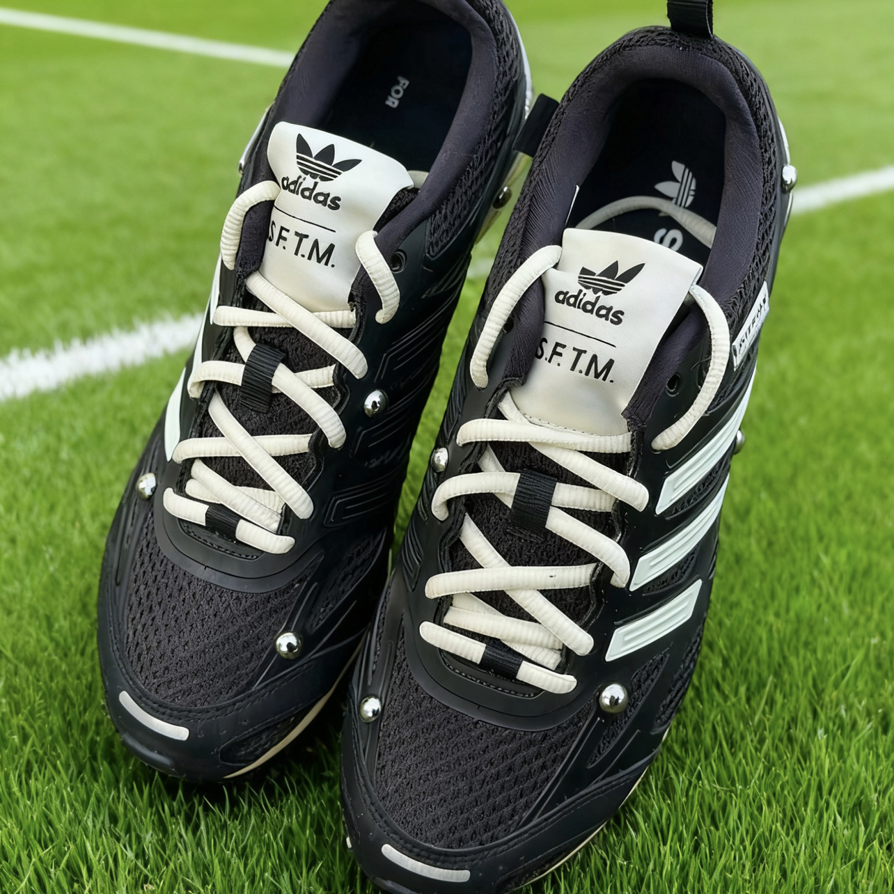 这双鞋直接把「运动氛围感」拉满!黑魂配色自带酷感,踩在绿茵场上,每一步都像在给穿搭加分~ 是一款非常好看的通勤鞋 好看百搭