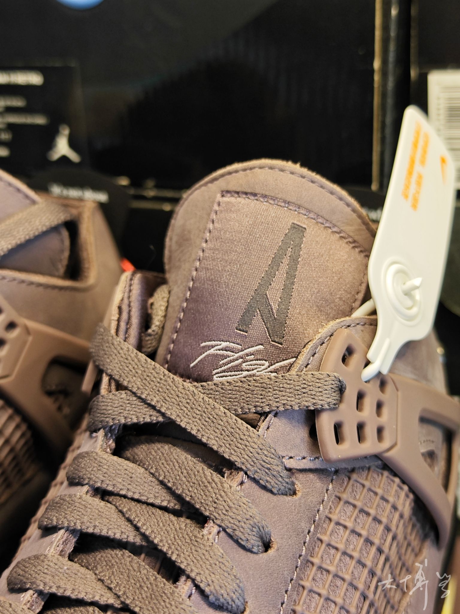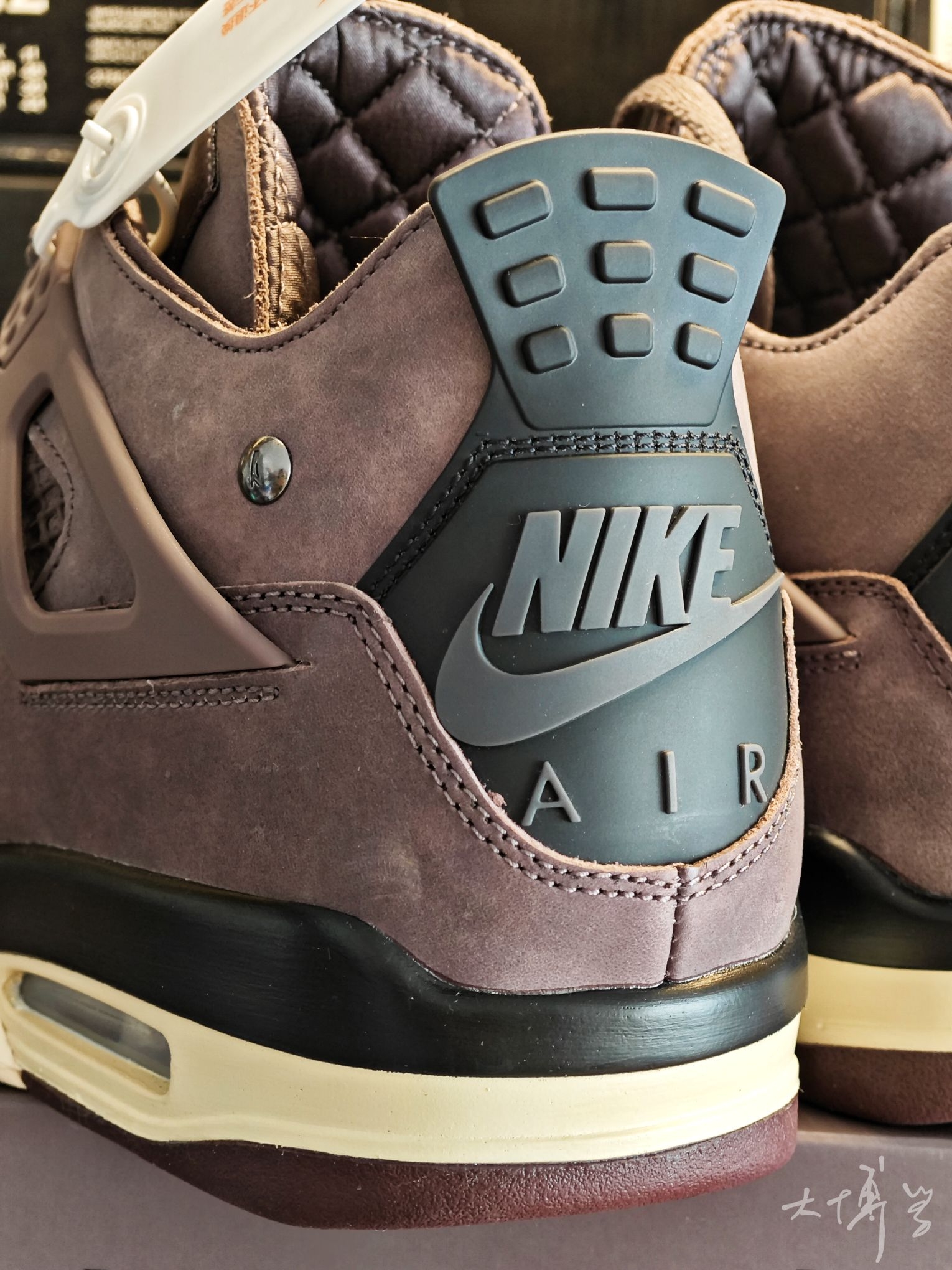 一双A Ma Maniére联名款AJ4 我的评价是低调奢华有质感 整体是深棕/摩卡色调 搭配做旧氧化中底,风格偏复古、高级 鞋面是细腻绒面革 内衬是绗缝缎面 尤其这个内衬让我感到了一丝奢侈品的味道