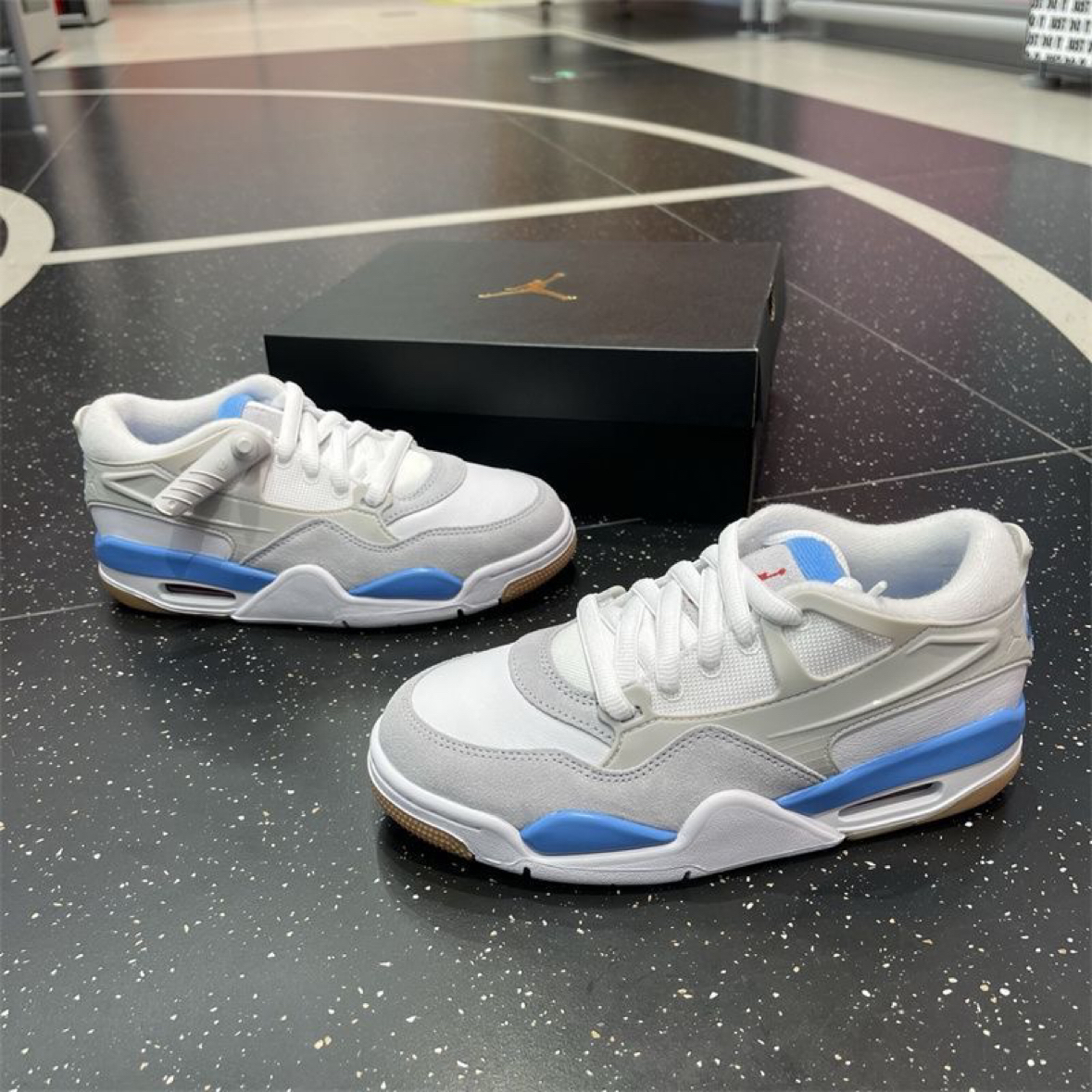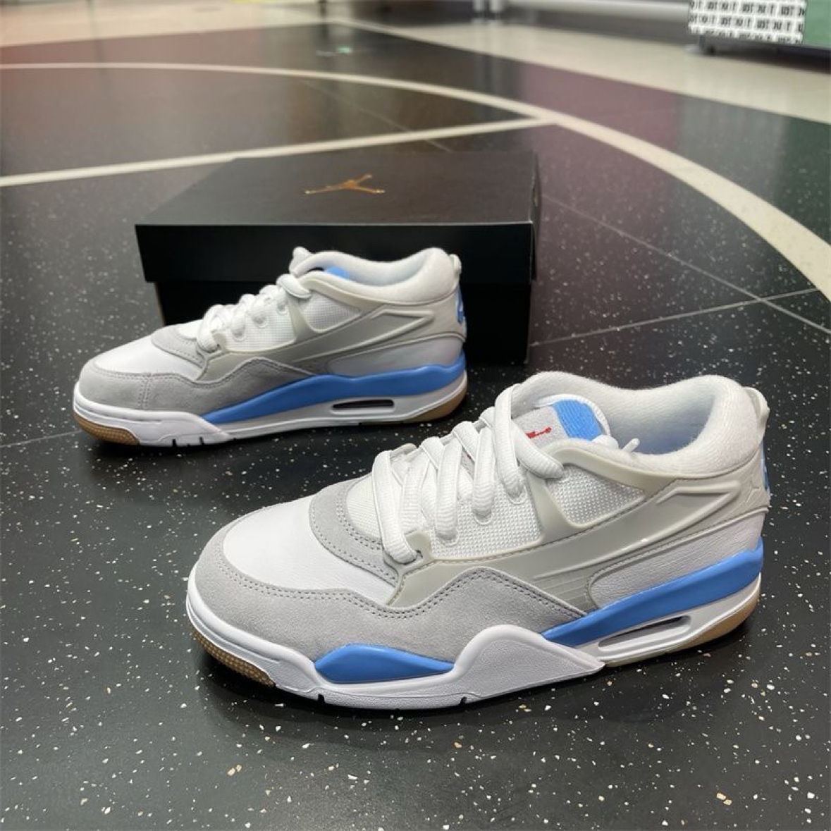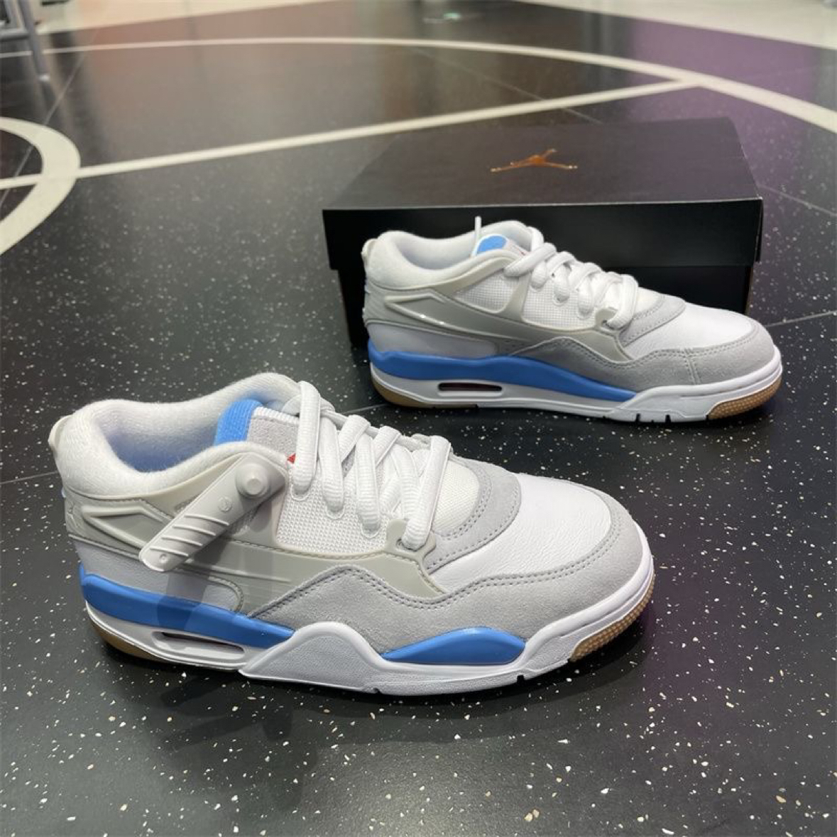 今天翻出这双蓝白配色的球鞋,瞬间被它的清爽感戳中!鞋面透气不闷脚,鞋底的回弹也很舒服,不管是打球还是日常出街都很适配,属于会无限回购的款。