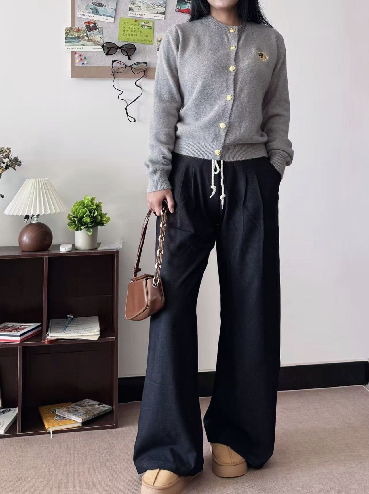 这条黑色休闲阔腿裤,版型很宽松,各种腿型轻松驾驭,舒适度拉满。抽绳设计也增添些随性风格。 裤子👖垂坠感很不错,日常出门随便搭配都好看,后面还有刺绣的星星⭐️细节很nice 衣服摸着软软着,上身穿着很舒服👍 昨天穿着出去逛街突然被人要了衣服裤子链接,说明质感和版型是真的经得起路人视角检验呀!!