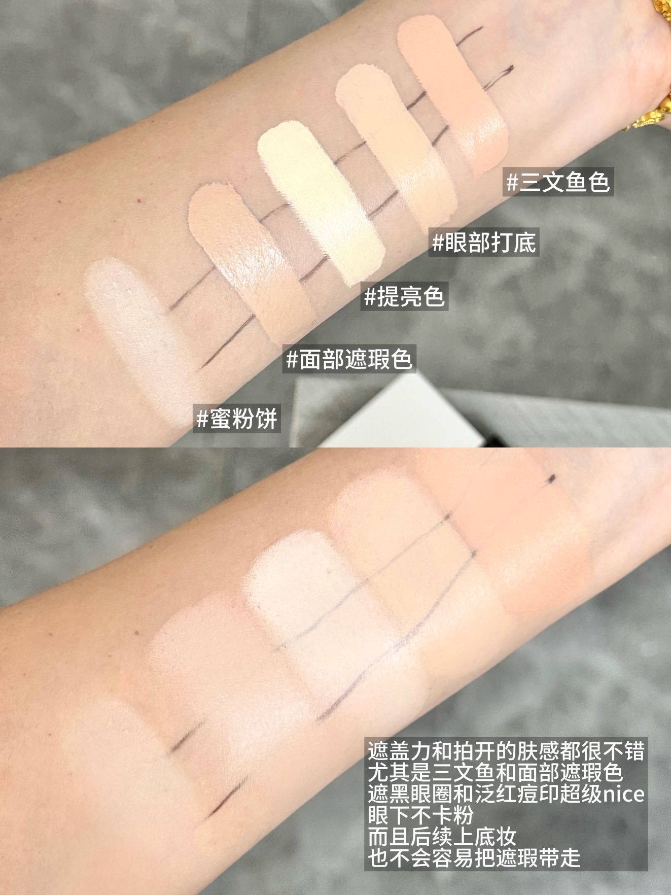 刷到很多人都在用这盘遮瑕,一盘有五种质地,从遮瑕到定妆都搞定,升级后更润更扒脸,尤其是眼下黑眼圈、鼻翼泛红这些地方还不会卡纹卡粉 盒子超级有质感我特别喜欢 居然设计上还有个小巧思 里面的小盖子翻开是蜜粉饼 隔绝粉膏污染的同时还可以当个调色盘 对我这种重度黑眼圈和眼部暗沉 三文鱼色真的轻松盖住 不需要什么技巧 新手宝宝也完全能用 后续上底妆也不会容易把遮瑕带走 还给我们针对不同肤色出了两盘色...