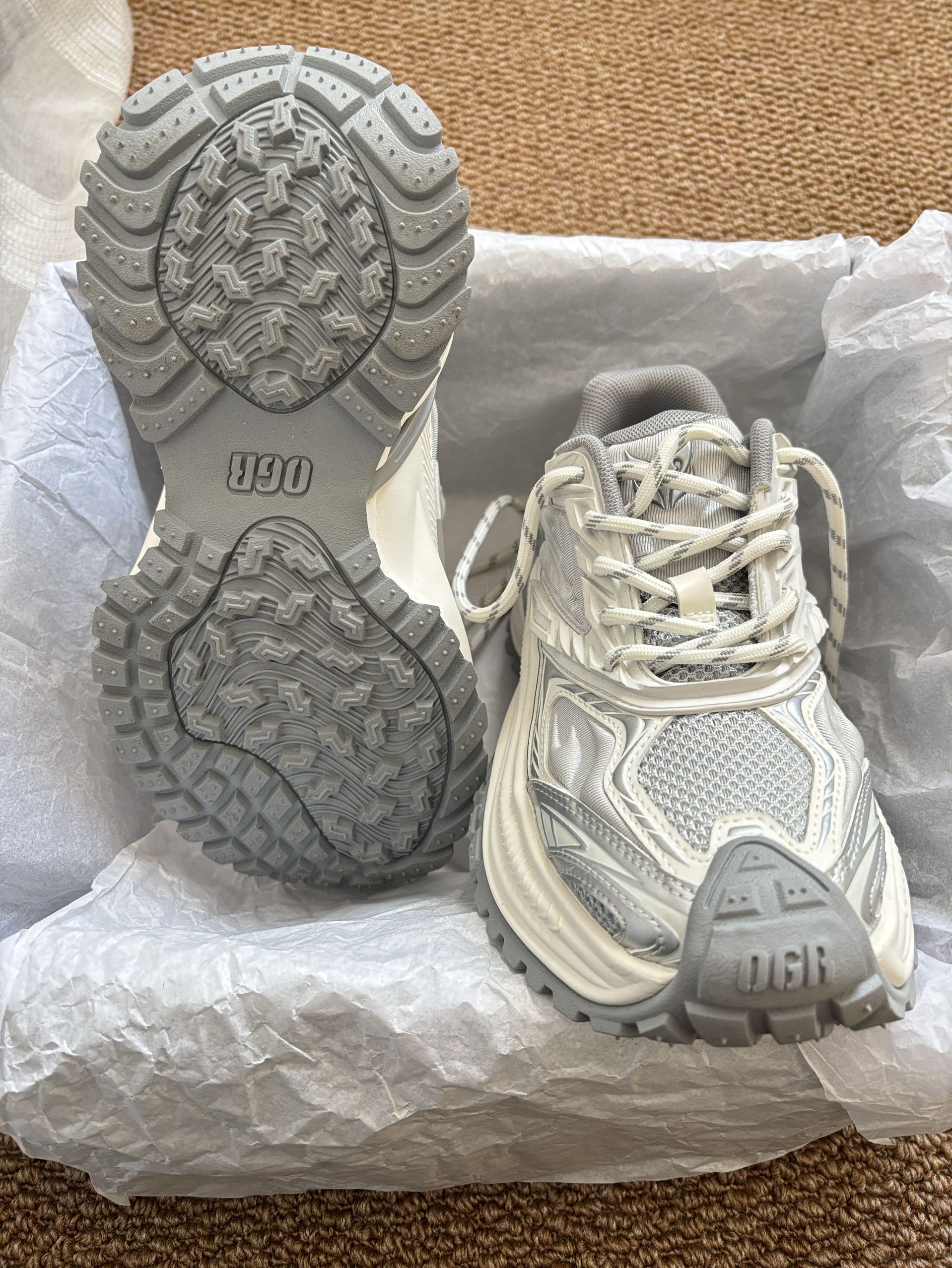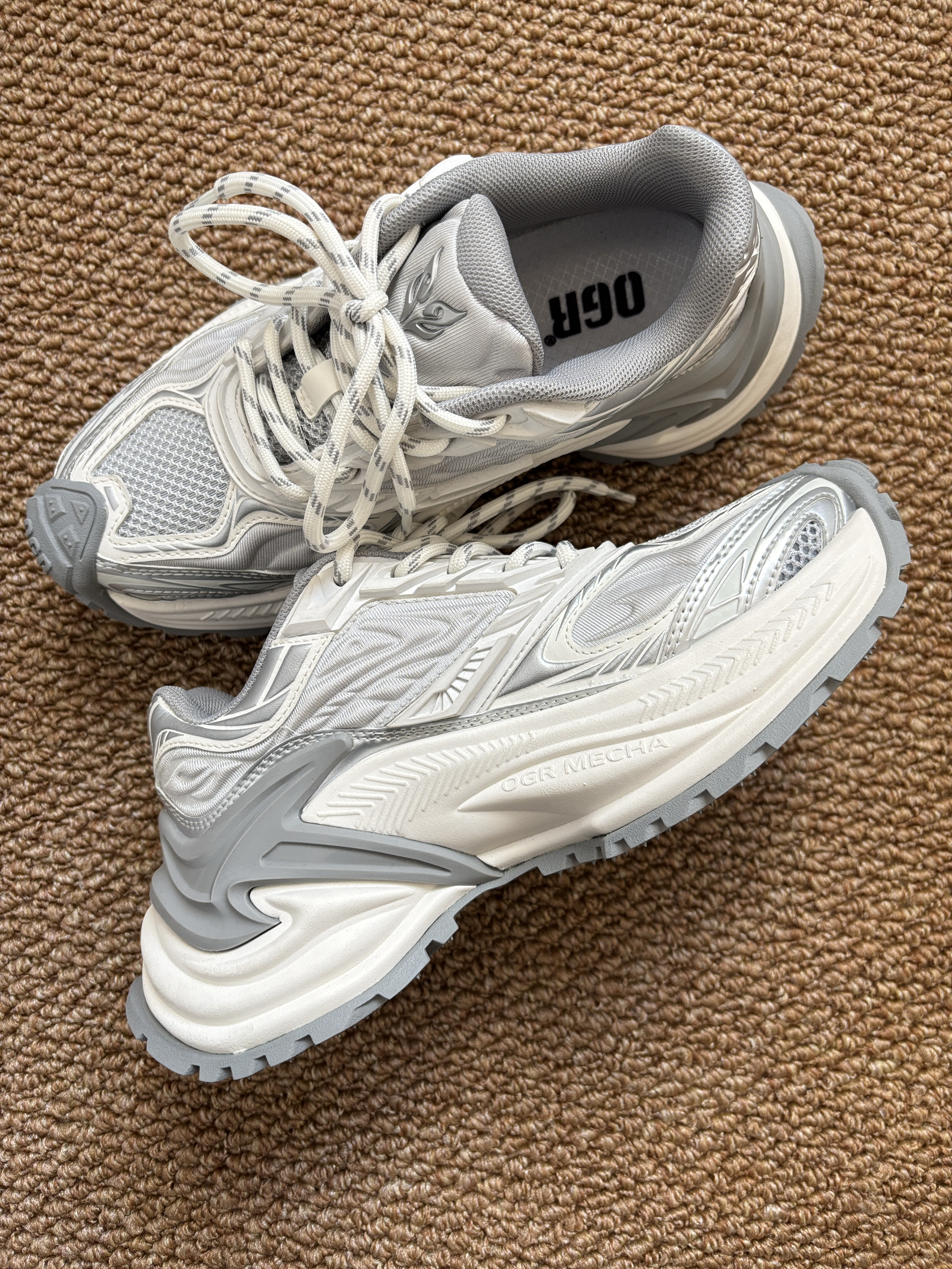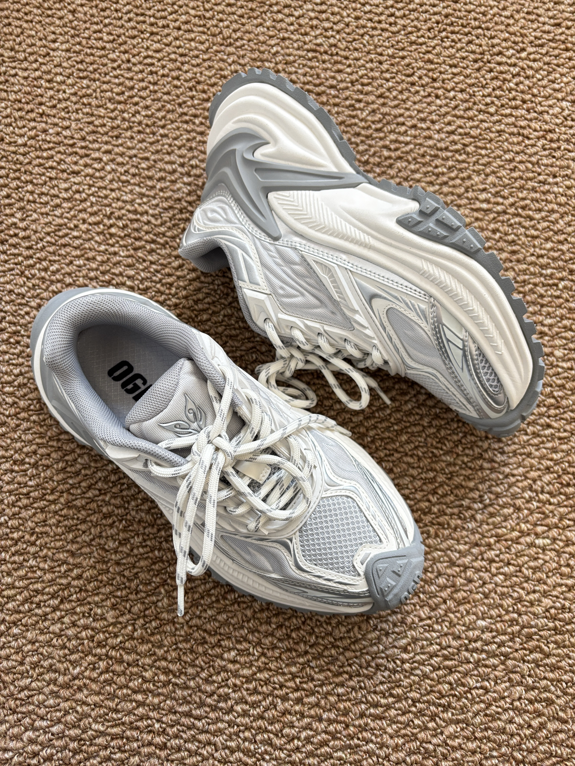 本篇笔记关联了OGR 响尾蛇EX系列 跑鞋 机甲网面透气防滑耐磨慢跑增高复古运动 白色/灰色等商品,为用户提供真实的使用体验和购买参考。