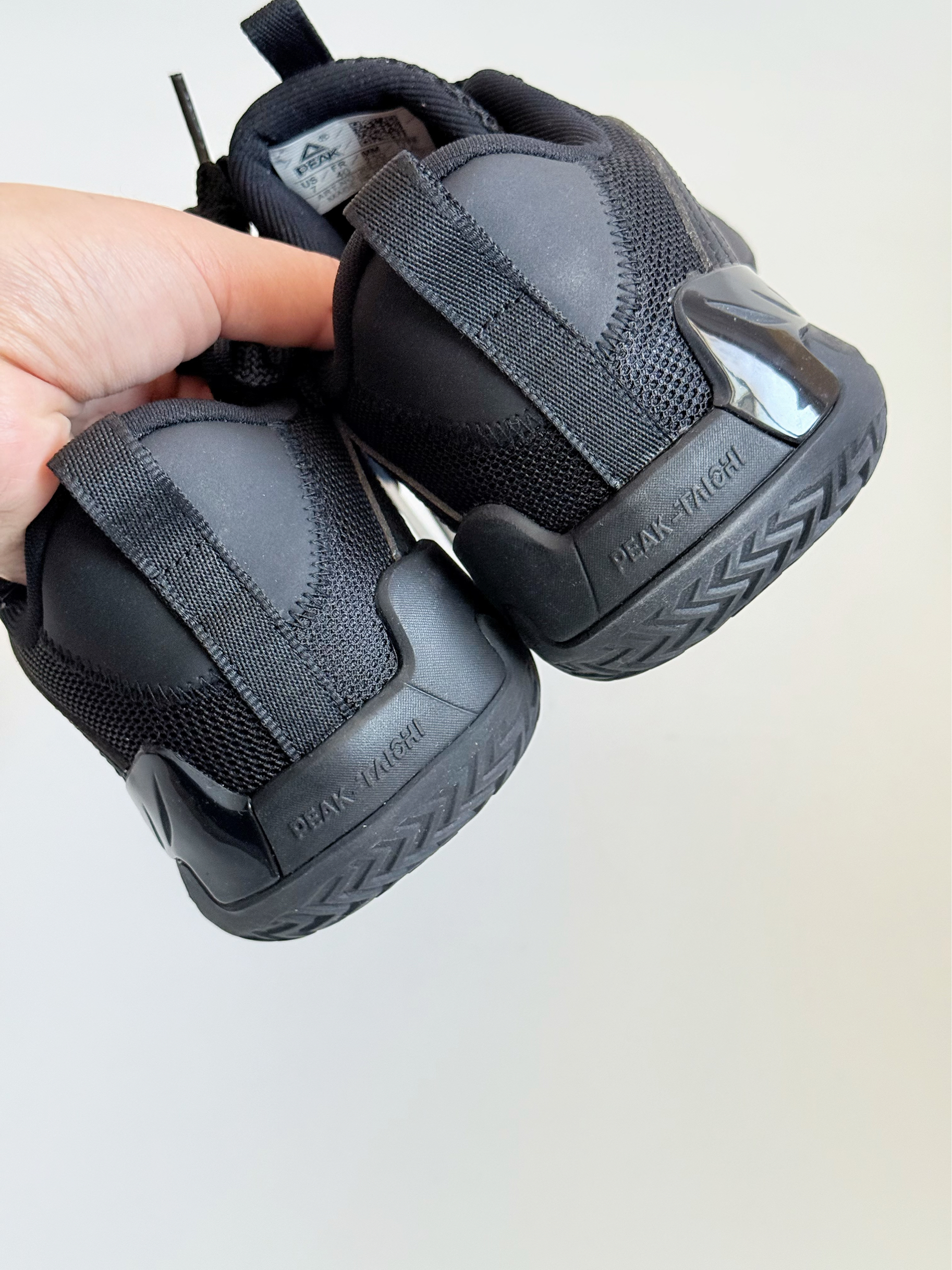 🖤 哈喽大家~ 今天带来了我的第一双实战篮球鞋分享😎 最近也是挺喜欢这双黑武士配色的🖤 再加上这个👆🏻价格 我的的确确是没有忍住 匹克的态极獠牙1.0黑骑士配色😍 有点帅喔 态极科技的中底软弹的脚感同样是那么的软弹 尺码方面呢可以正常选择即可 鞋子的后跟环形TPU带来的侧向支撑也是可以的 日常打球完全足够用了❤️