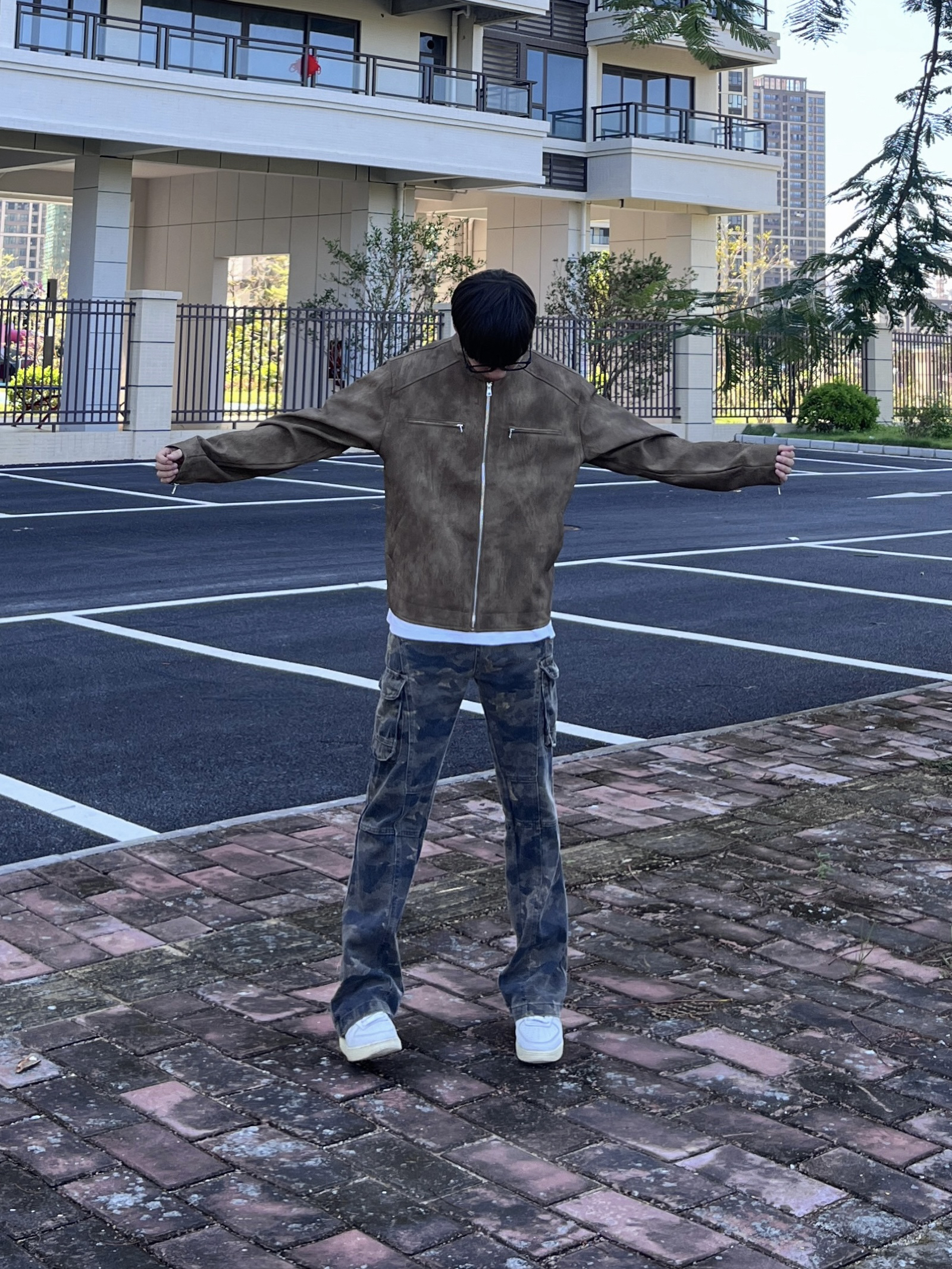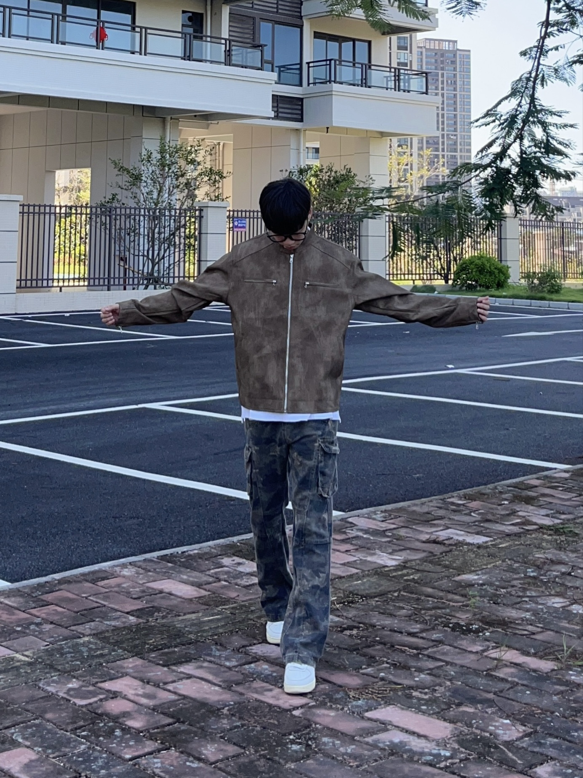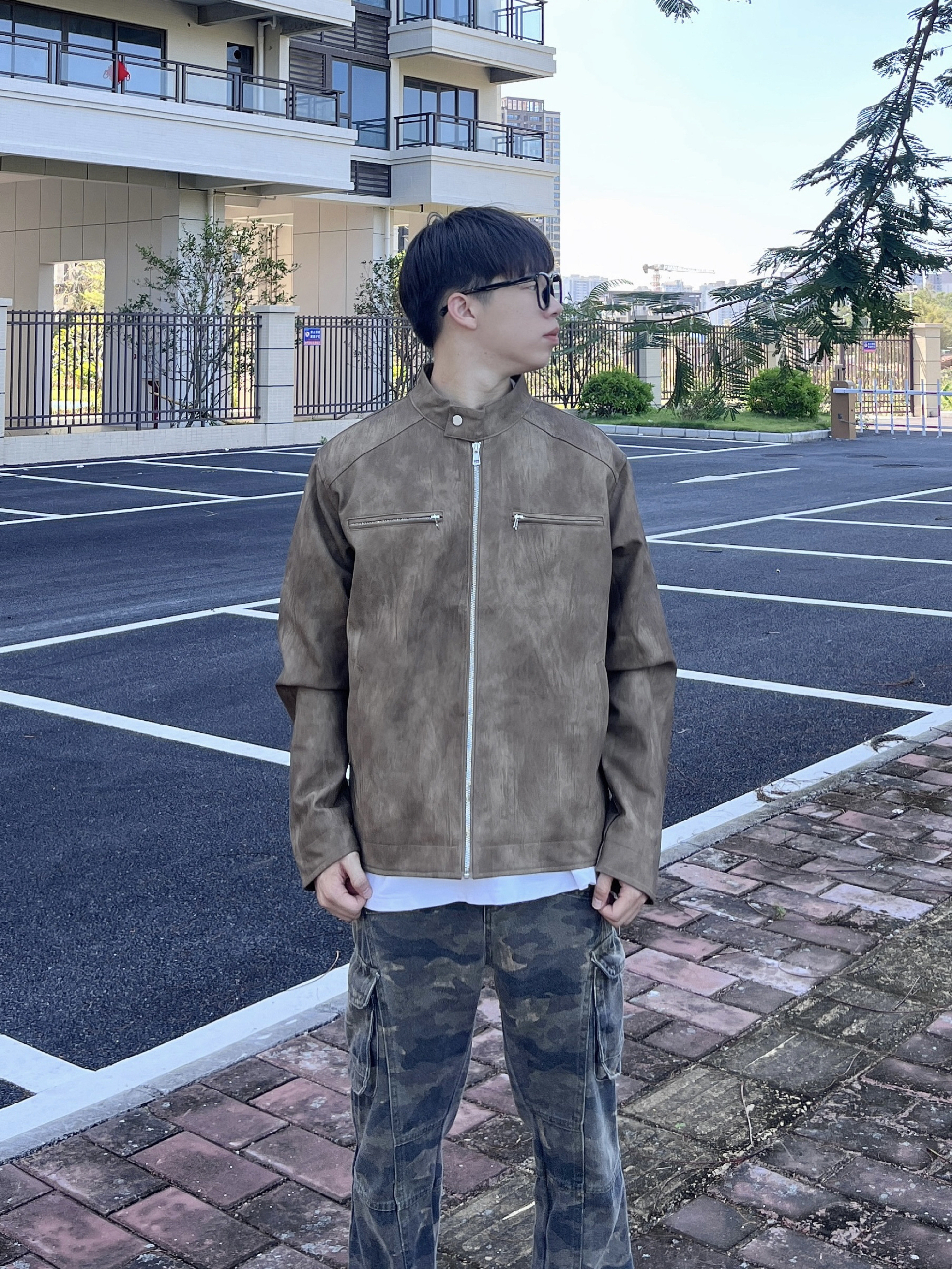 今天 SXSY 的这款褐色皮衣外套👔 把复古街头风穿出来了 痞帅感拉满 搭配迷彩工装裤👖很有感觉🔥 一套搭配下来 初秋出街百搭又好看🚶