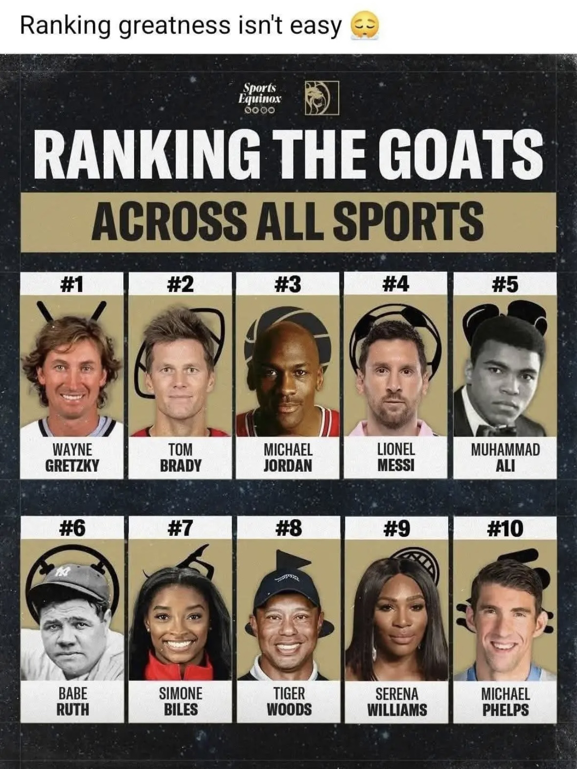 体坛GOAT排名引热议!乔丹仅第三