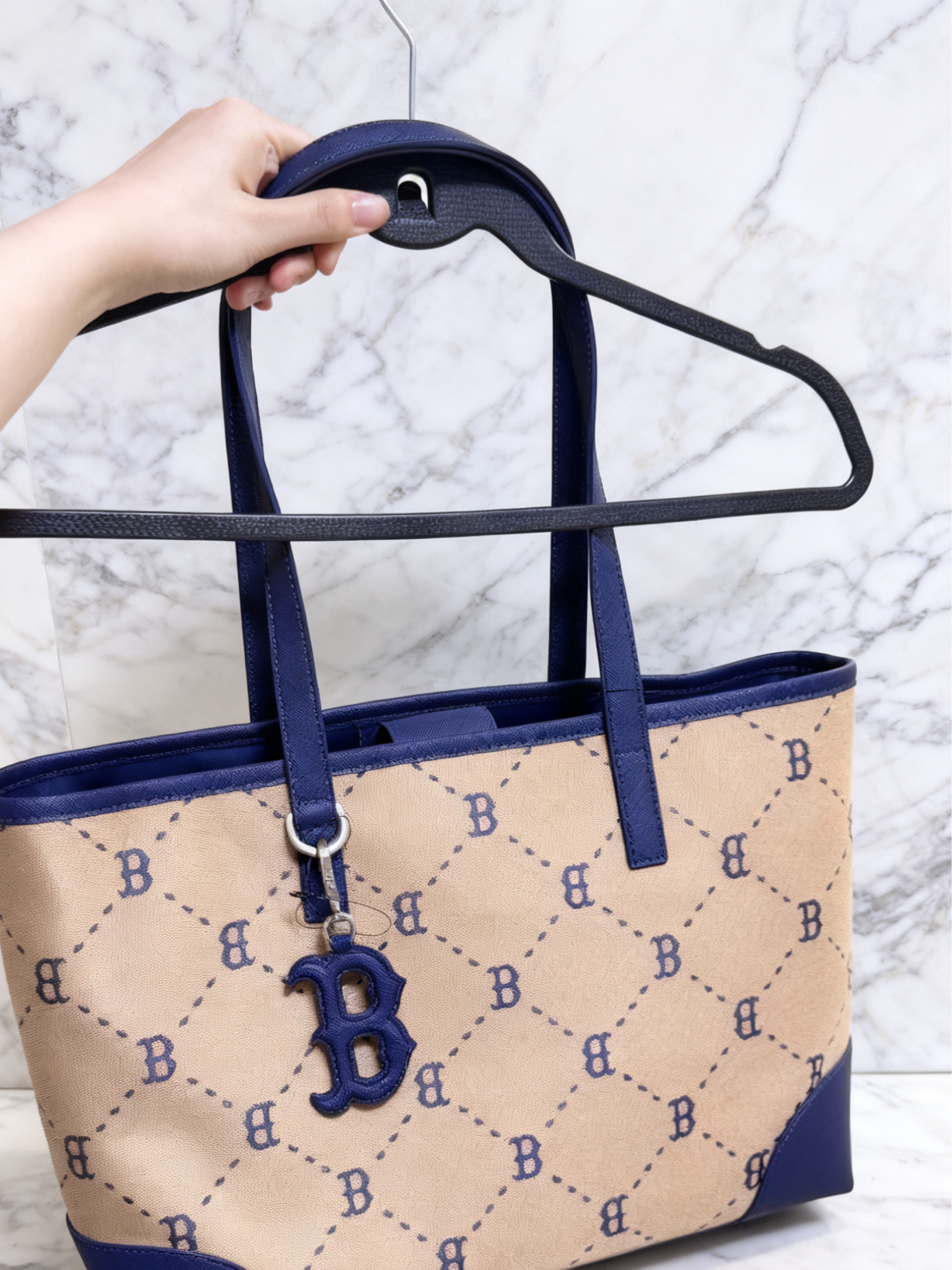 上周飞杭州出片,特意拎了这个波士顿红袜托特包——本来是觉得它轻又能装,结果在机场值机时,旁边一个穿搭博主直接举着相机凑过来:“姐妹你这包是新款吗?米蓝配色配行李箱也太出片了!”到了民宿,我随手把它扔在沙发上,民宿老板居然问我这包链接能不能发她,说“这包看着贵但又不扎眼,配我家ins风装修刚好”。当天背它去逛天目里,连买手店店员都夸这包“是今年看到最会选的通勤包”,装得下电脑、伞和补妆包,还没压肩...