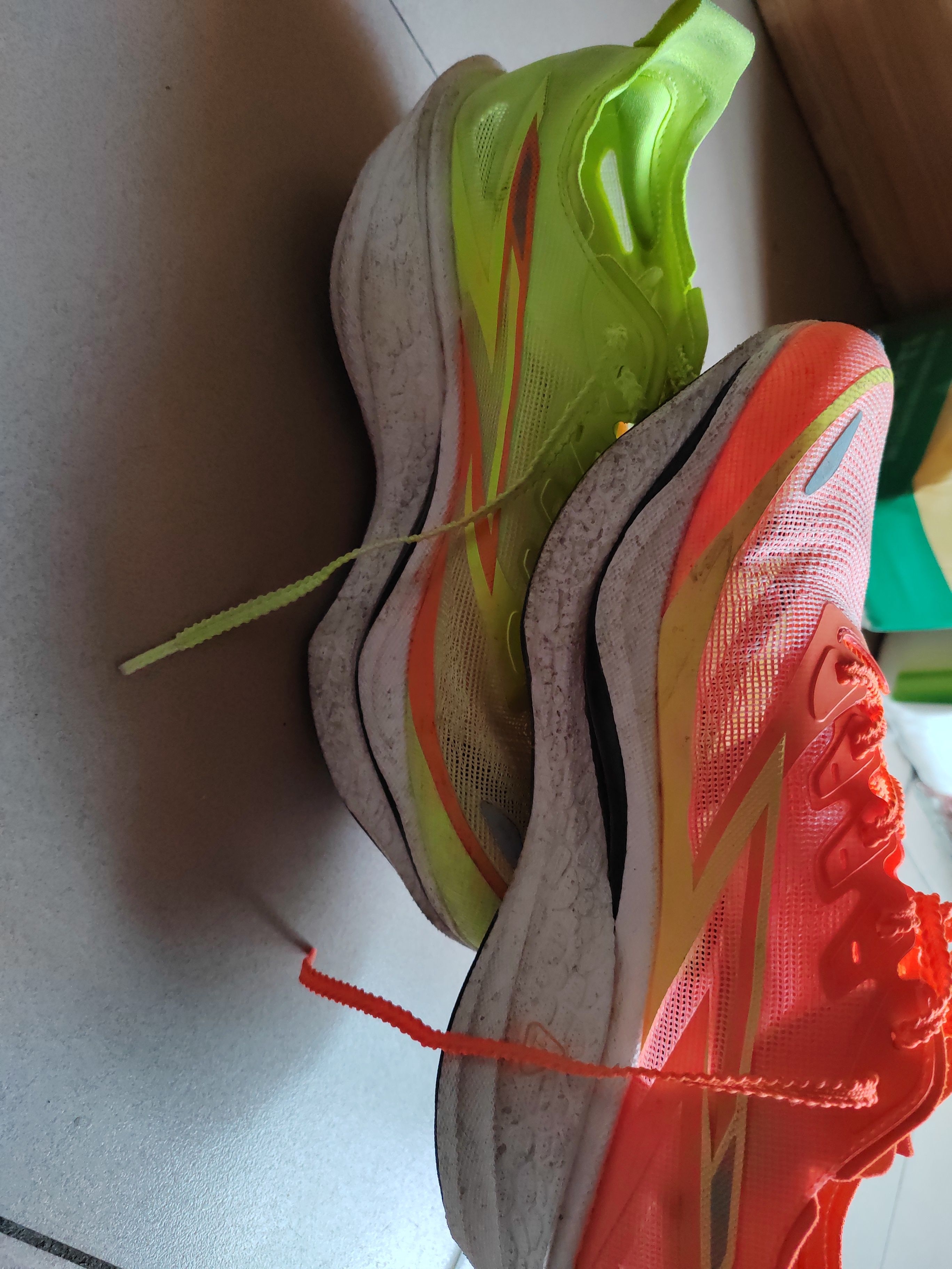 太带派了👟球鞋名称: 📌是否偏码【偏大/不偏码/偏小】:偏小 ⛹️性能打分(每项满分均为10):7 包裹:强 缓震:强 抓地:还行 耐磨:好 稳定:好 防侧翻:好 透气:好 重量:好 📖总结评价:整体效果不错,但是跑的时间长了,会有怪声