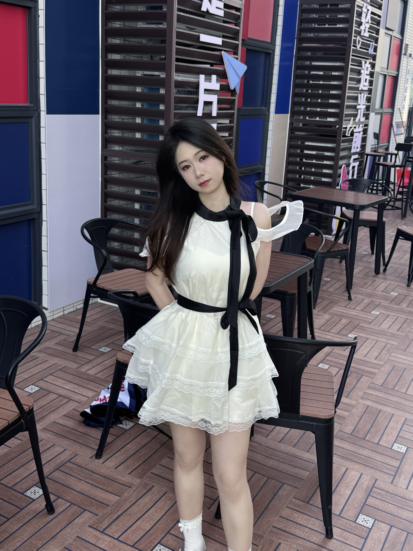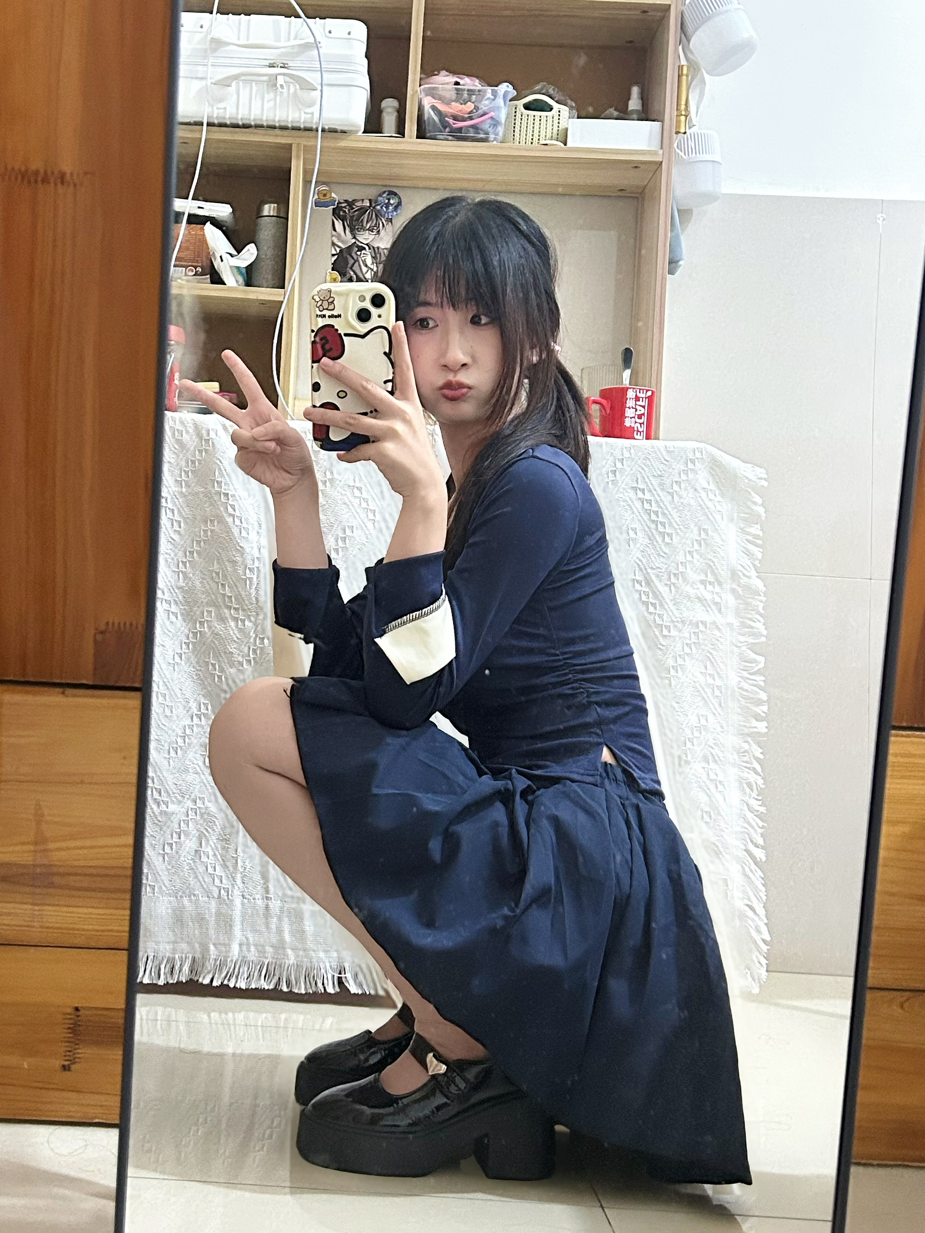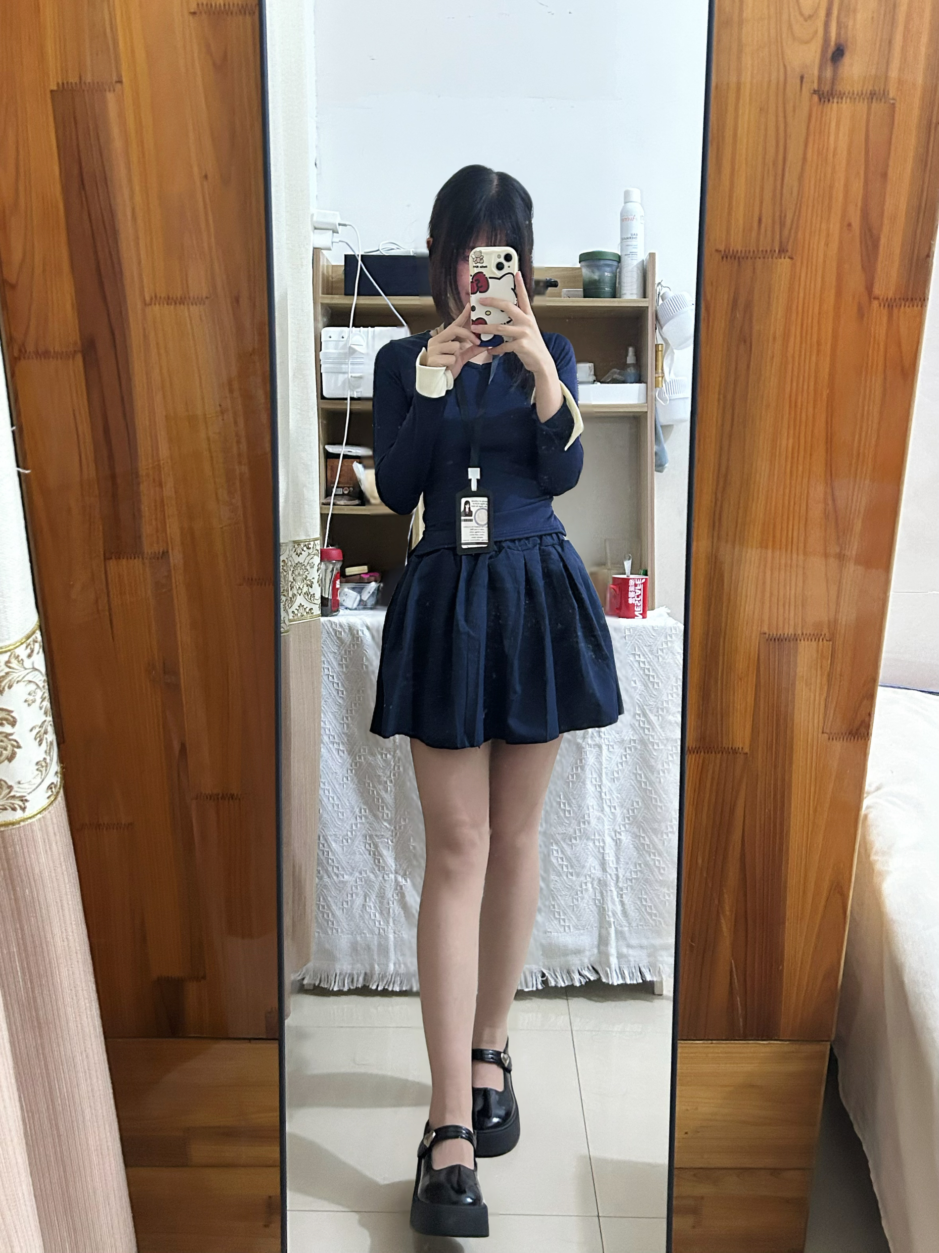大大方方把头发扎起来 显的人精神了很多😄 我真的好喜欢穿这套裙子 对于小个子的我还蛮拉长比例的 搭配了一双玛丽珍小皮鞋 好有少女的俏皮可爱感