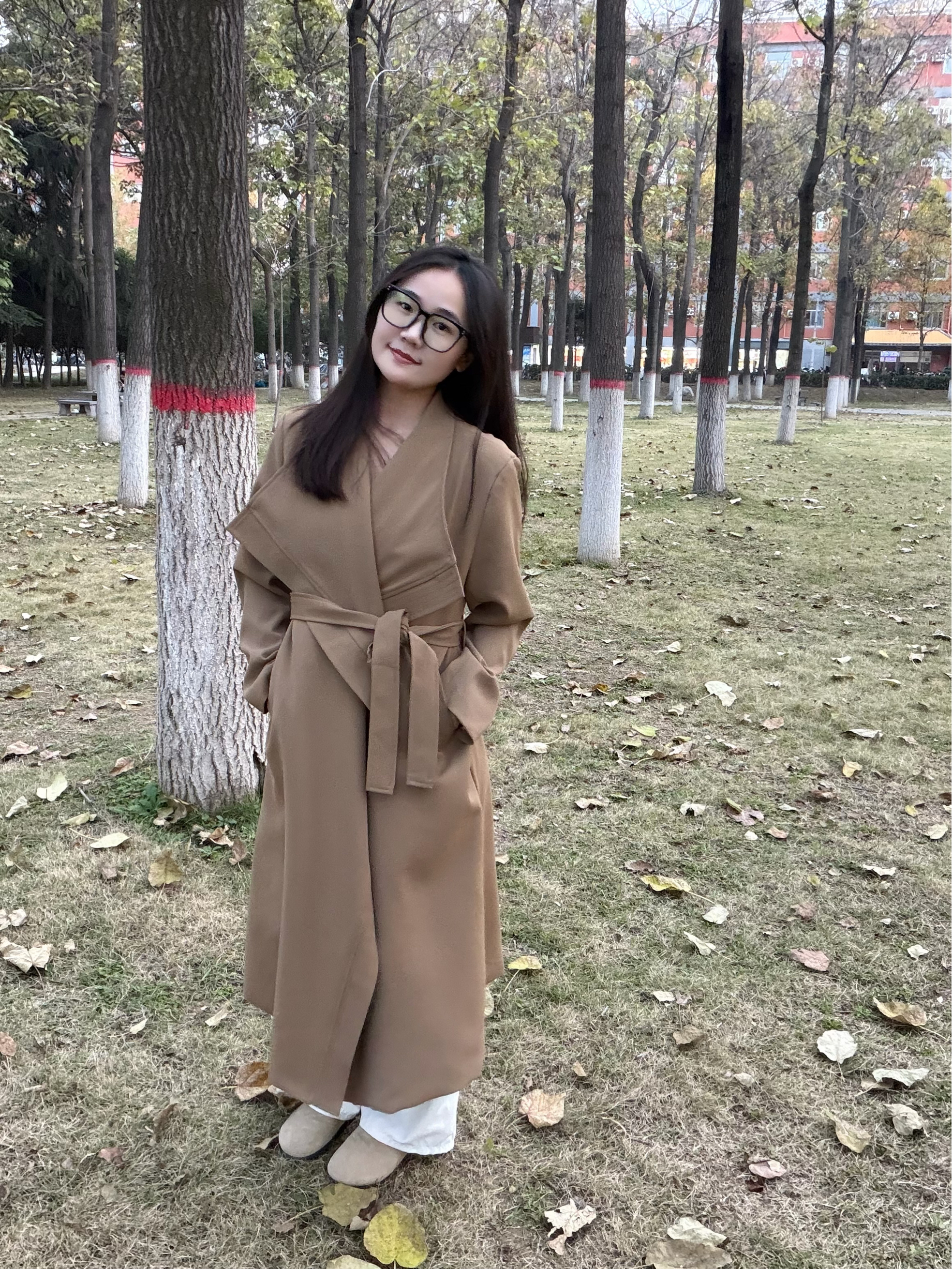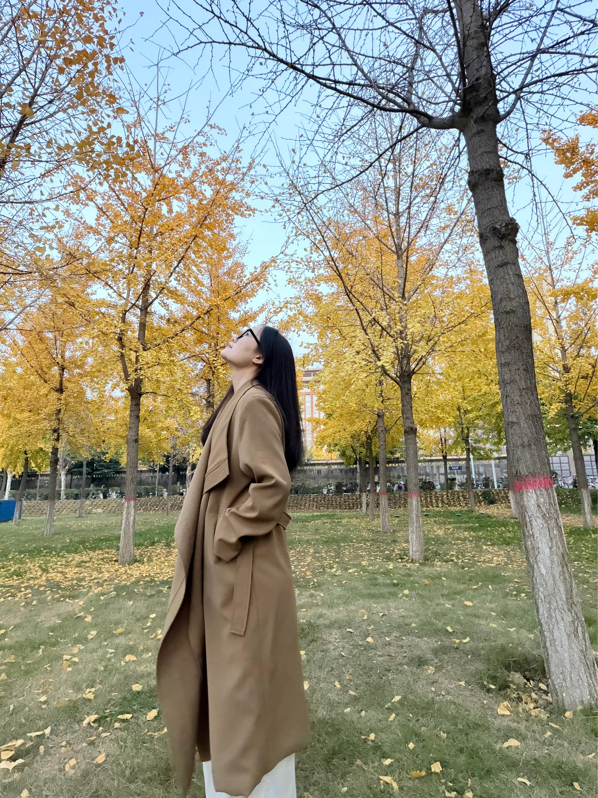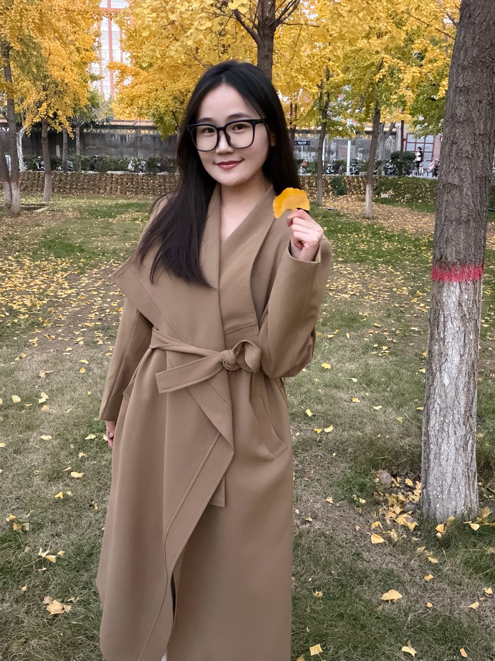 谁懂啊!满街都是打翻的银杏黄 赶紧来抓住秋日的尾巴啦~ 今天穿的这件卡其风衣?真的是‘秋日作弊神器’——大翻领一撑,松弛感直接拉满;垂感面料走路带风,配双勃肯鞋踩在落叶上,连风都是温柔的!💕 长度刚好遮肉显高,随便站在树下拍都是电影截图既视感🎬 秋天的快乐,是这件风衣给的!✨