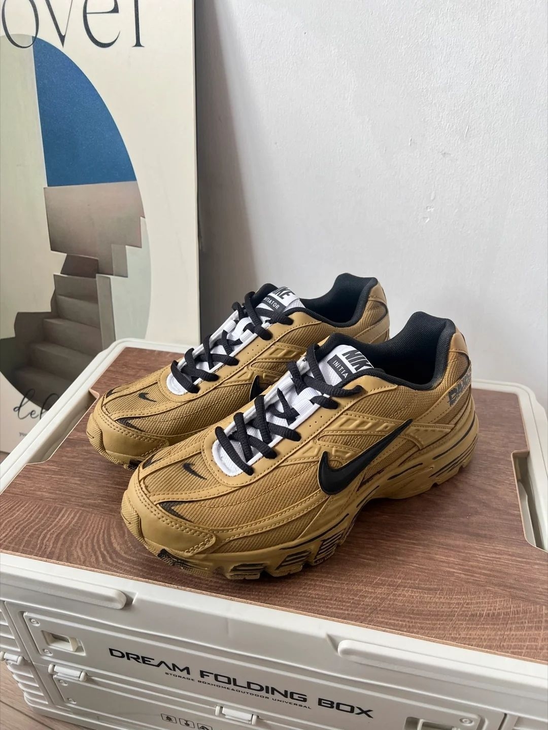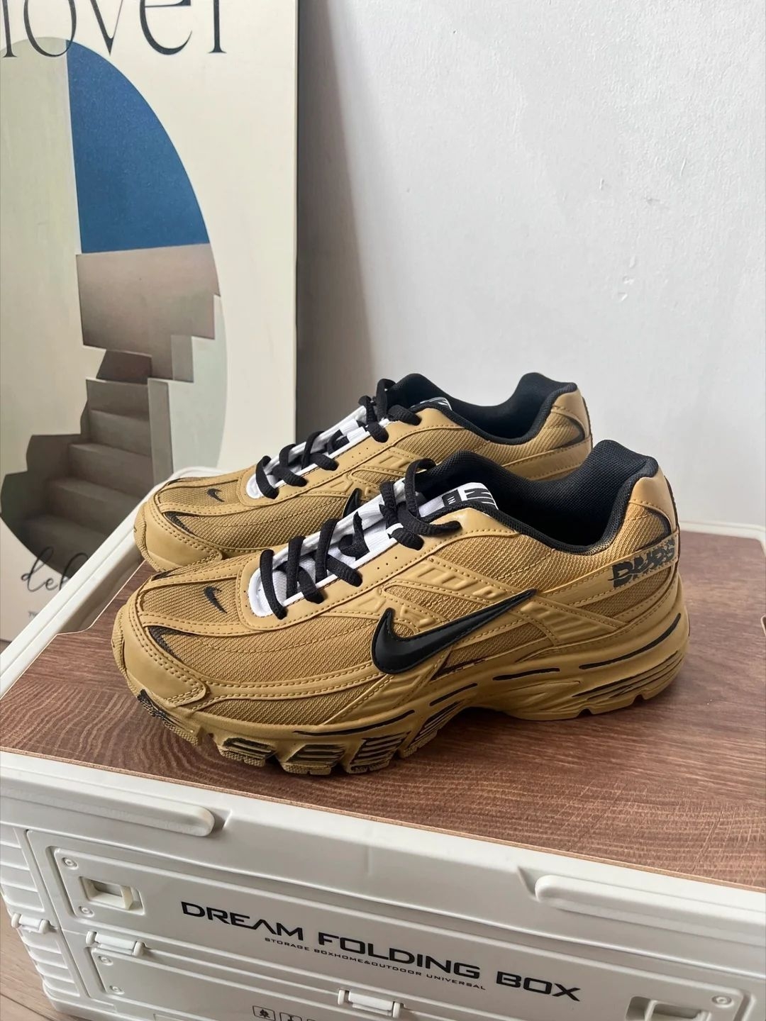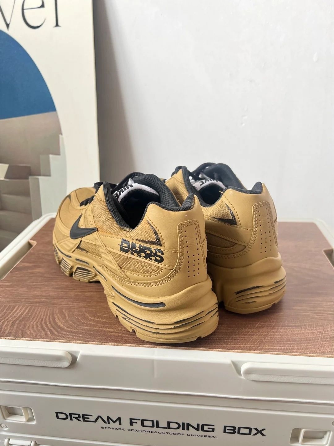 这双定制Nike一打开就让我眼前一亮!小麦色配上做旧的纹理,真的有种戈壁滩的粗犷感,实物比图片更有味道。鞋面是织物和皮革拼接的,细节满满,那种旧旧的色调和缝线处理,特别高级小众,完全不怕撞鞋。 我上脚的第一感觉是包裹性很好,鞋底特别软弹,走路有清晰的回弹感,真的很舒服。 鞋子不重,穿着通勤走一天路脚也不累。 小麦色超级百搭,配牛仔裤、工装裤都帅得毫不费力,有种随性的街头感。是我近期最满意的一双...