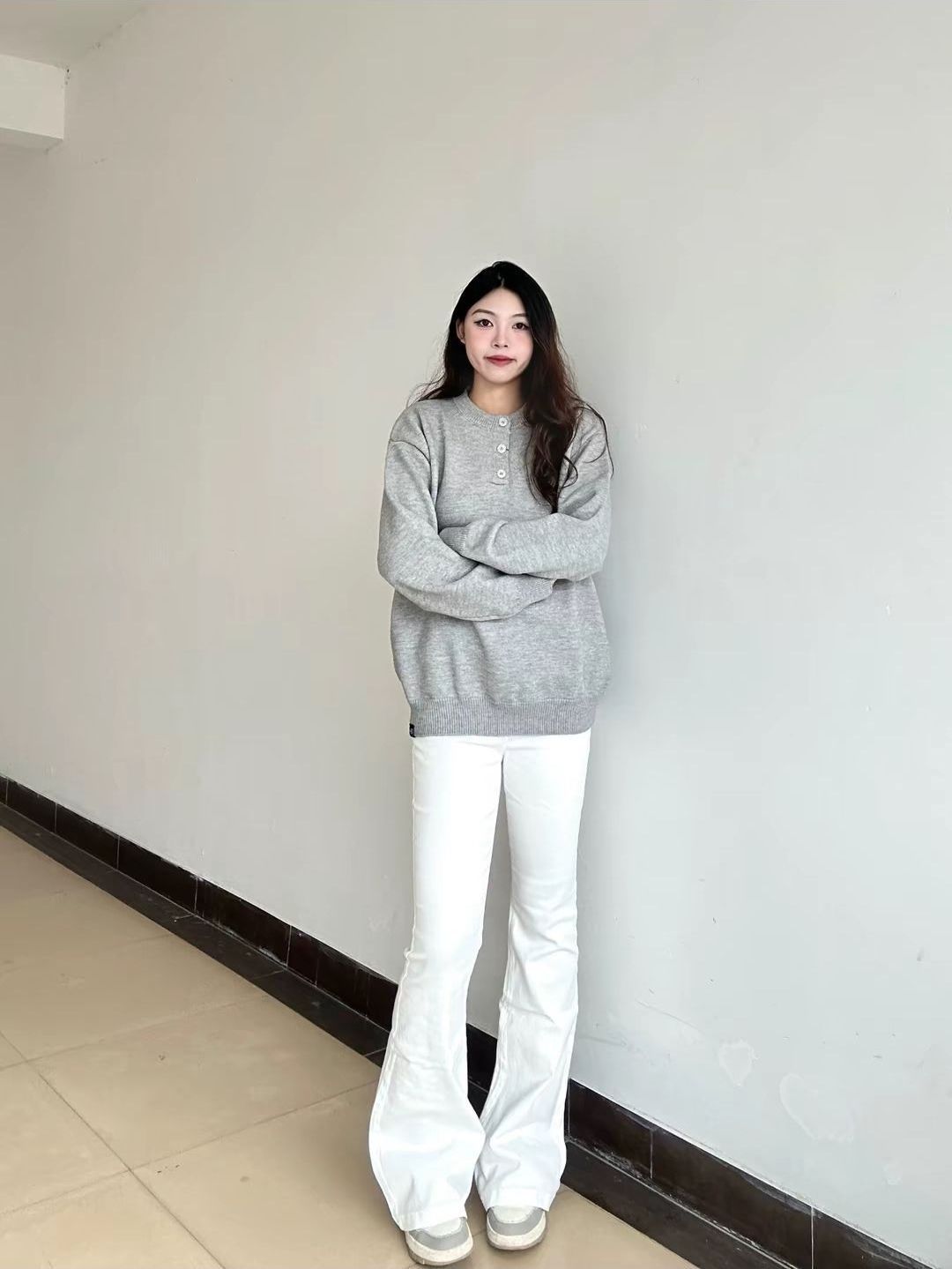 版型显瘦不臃肿:宽松落肩+微廓形设计,既能藏肉又不会显拖沓,对各种身材友好,单穿/叠穿都有松弛感 日常清洁:用粘毛器清理浮灰,局部污渍用湿纸巾+中性洗涤剂轻擦,避免大面积沾水 • 清洗注意:冷水手洗(别机洗,防止领口纽扣变形),轻柔揉搓避免面料起球,洗后平铺阴干(别暴晒) • 收纳细节:晾干后轻轻抚平褶皱,折叠收纳(别挂着,避免领口变形),放在干燥处防受潮发霉