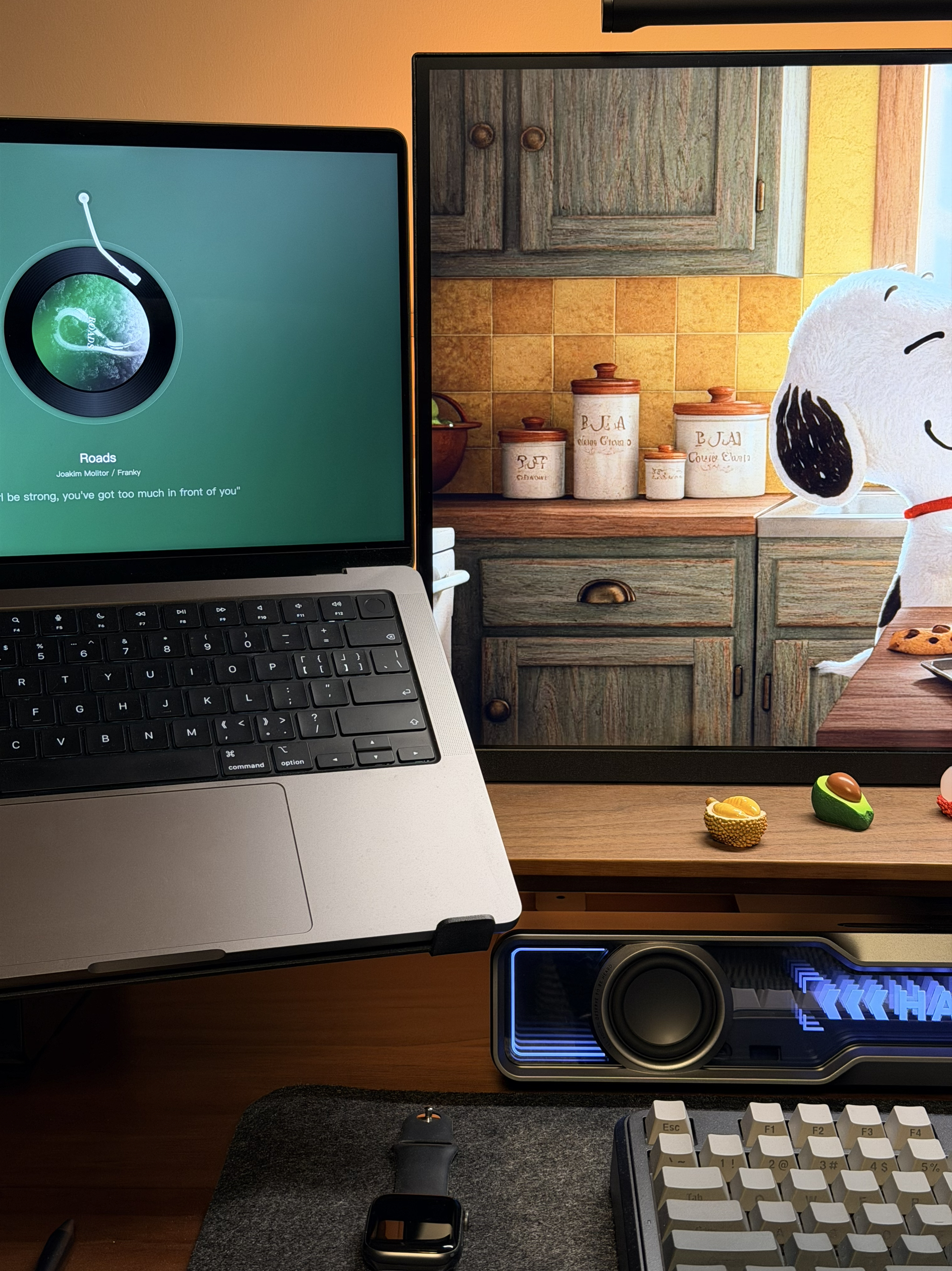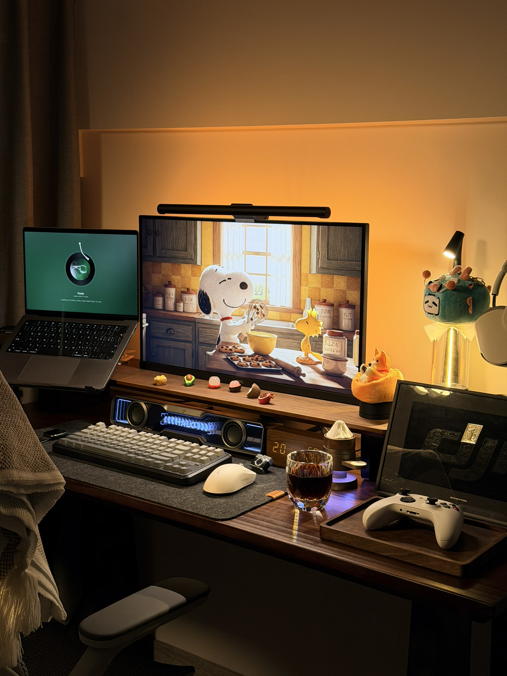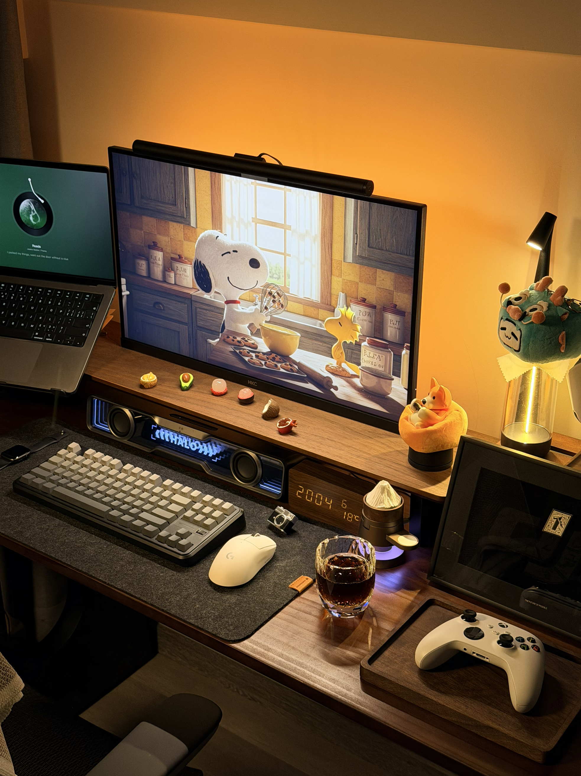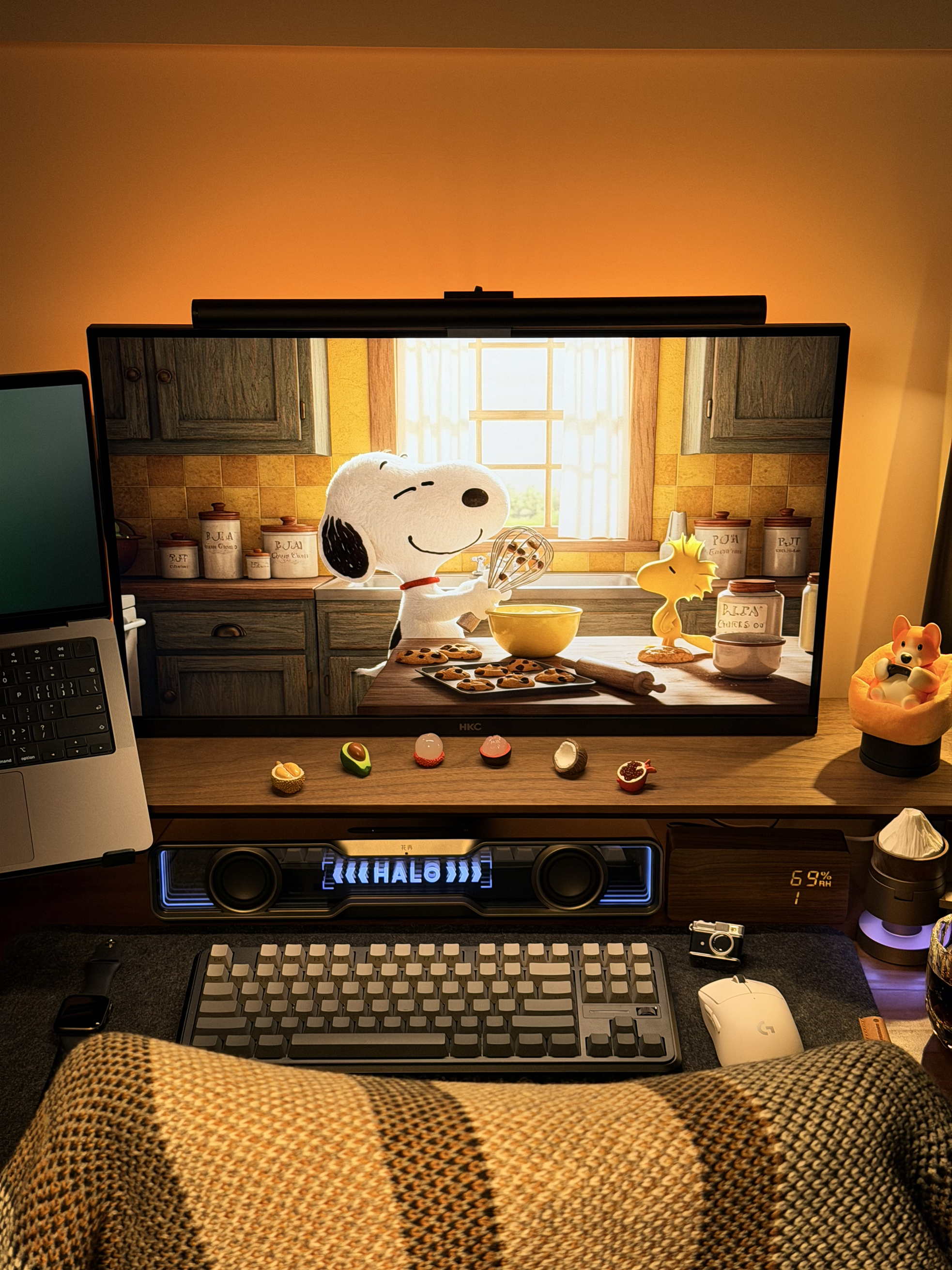 部分清单: 灯带:robobloq旗舰店 人体工学椅:西昊b100Pro 键盘:迈从k87s 鼠标:狗屁王二代 屏幕挂灯:小米s1 音箱:花再 Halo soundbar