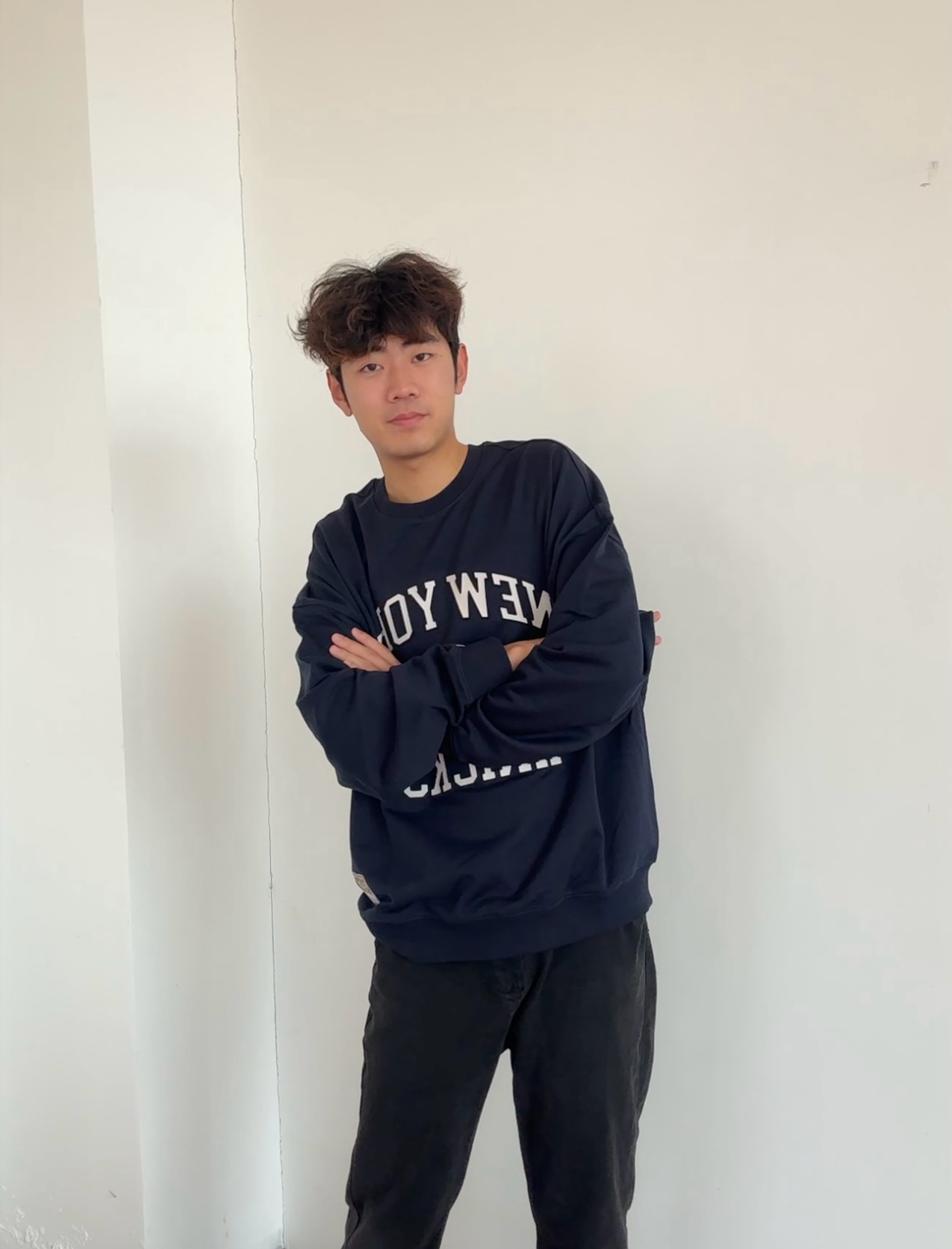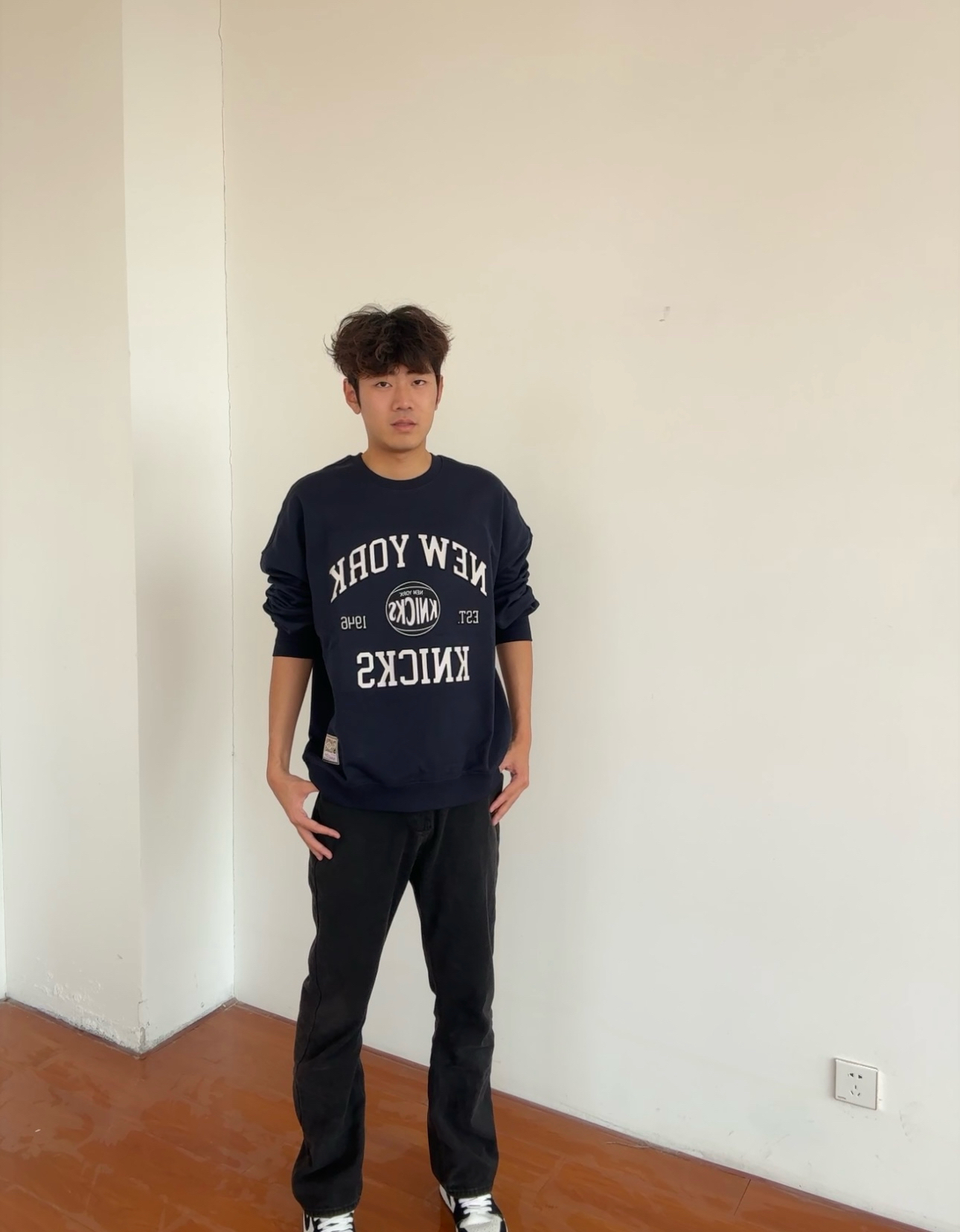 今天这一身属于“不用动脑但很出片”的懒人穿搭👇 藏青色尼克斯球队卫衣直接把复古运动感拉满,宽松版型裹着超舒服,配条黑色直筒牛仔裤,随便踩双板鞋就有那味儿了~ 日常通勤/出门遛弯都能穿,主打一个随性不费力!