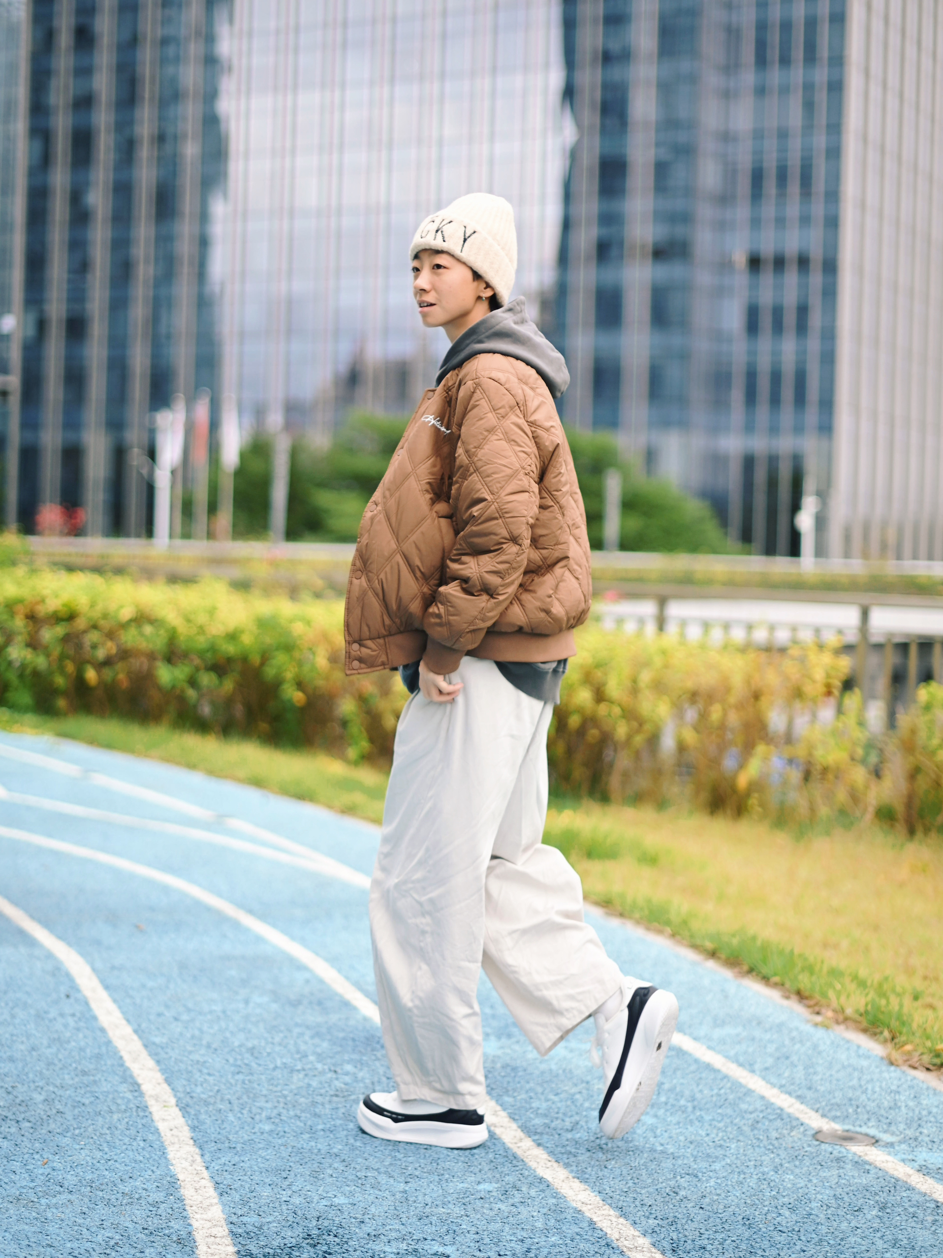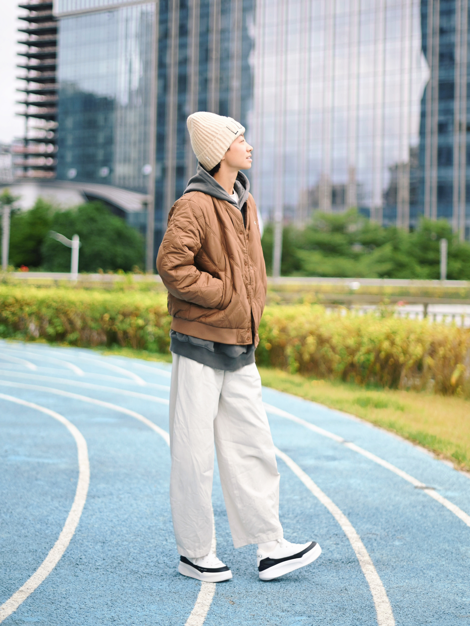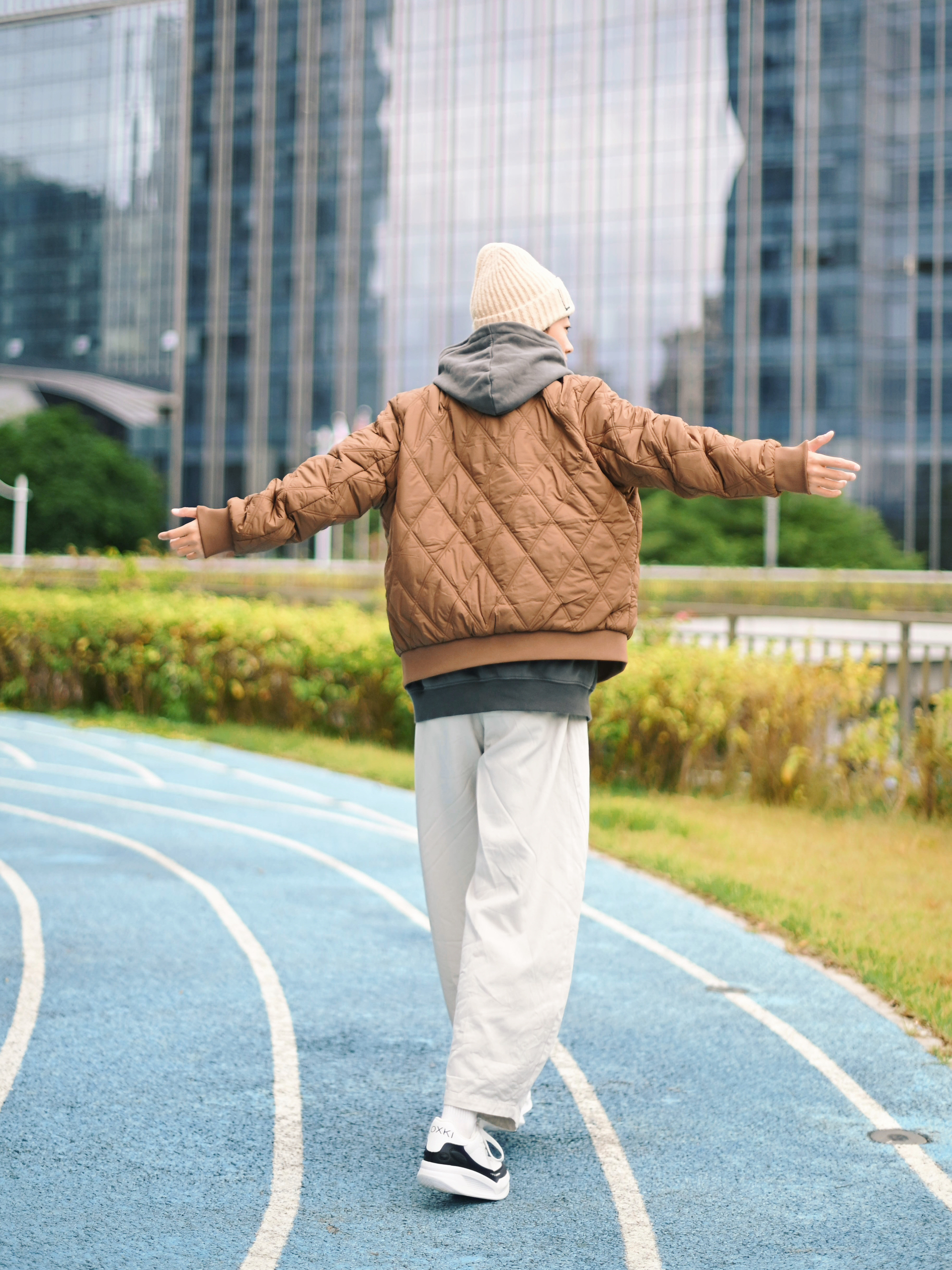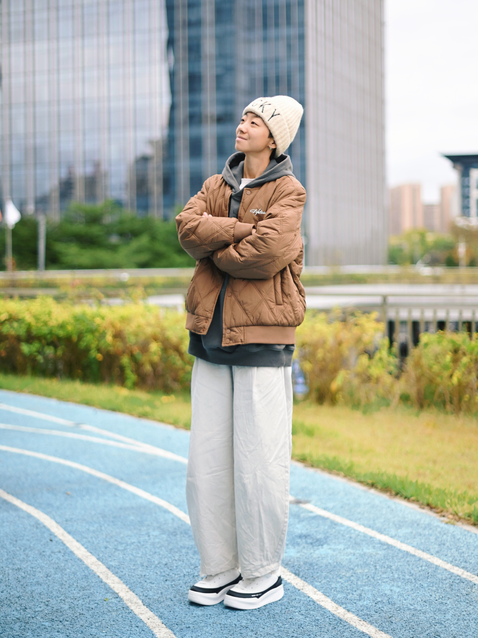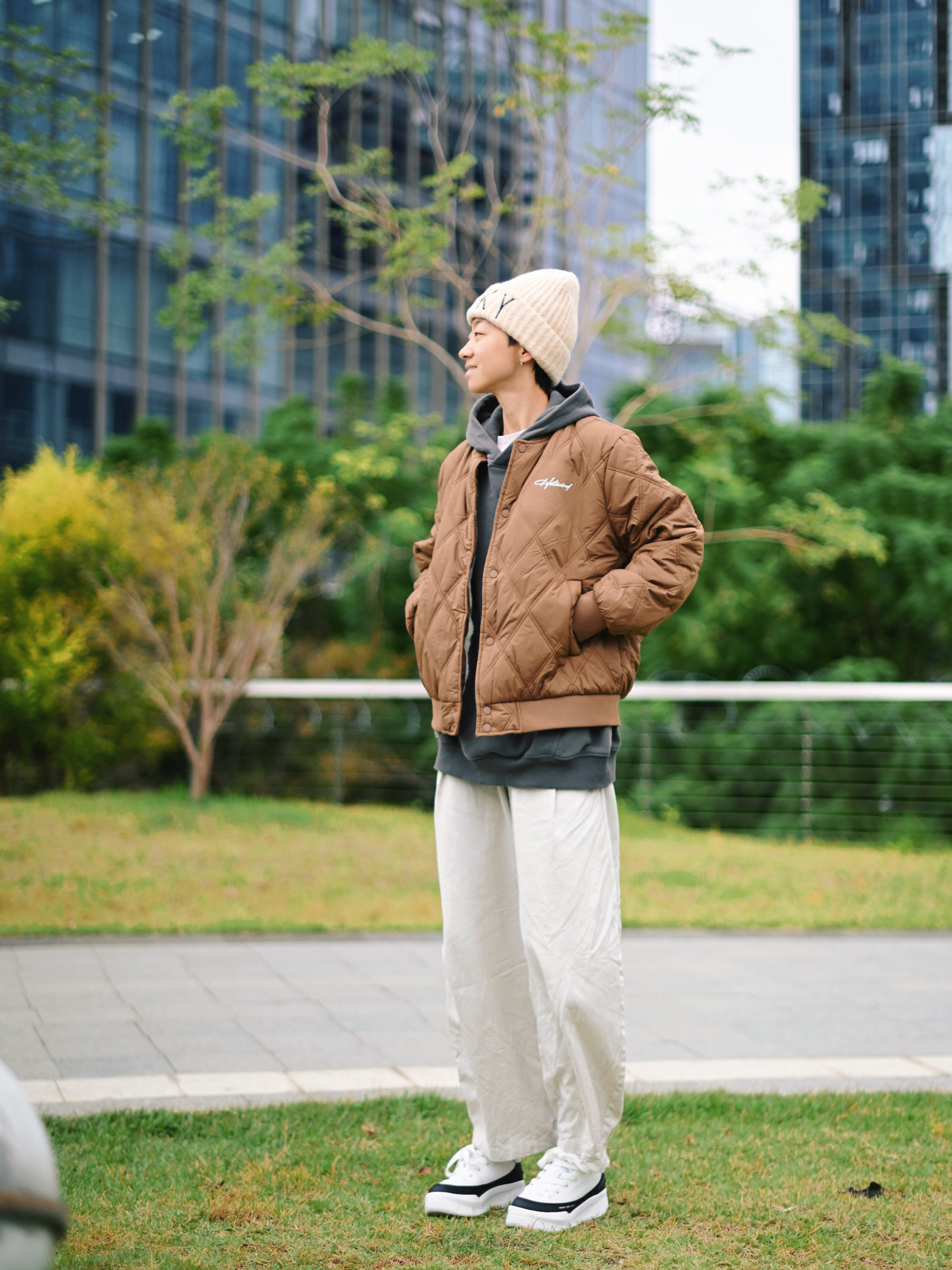 172CM|55KG 👔:m👖:m|👟:39码 秋冬街头氛围感直接靠这件棕色棒球棉服拿捏住了! 经典棒球廓形自带复古运动滤镜 里面叠穿卫衣 层次感拉满 下半身搭配浅色系裤子 温暖又显白,城市漫步或日常出街就这么穿啦~