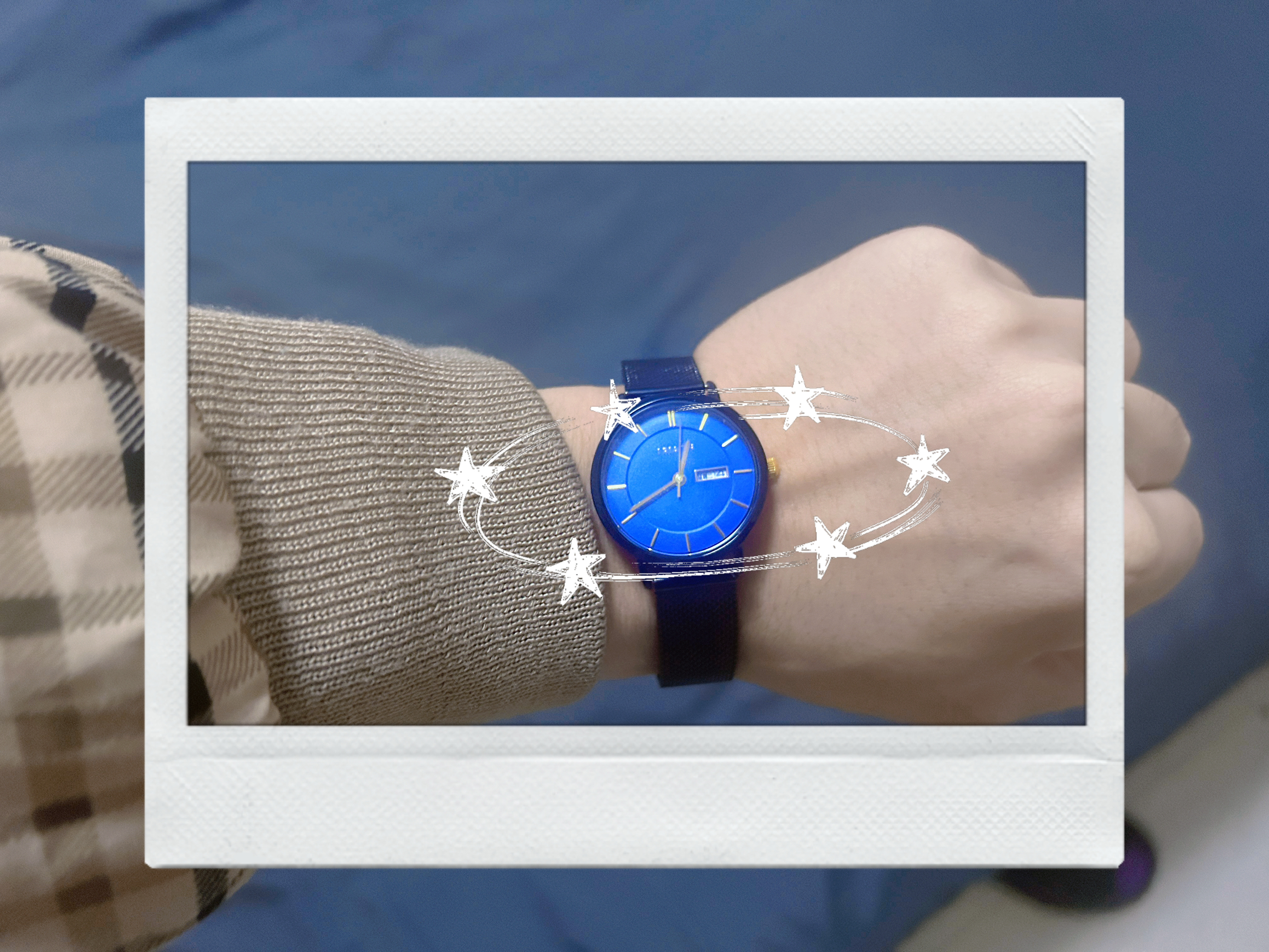 “谁懂啊!盲盒开出的表直接成了我秋冬穿搭主力💥 本来随便抽着玩,结果这蓝盘+黑网带一搭卫衣/格子衫,低调又戳审美!克莱因蓝显白、金属指针细节够顶,上课记日期、下课拍穿搭都能用,关键是盲盒开的+两位数,血赚!