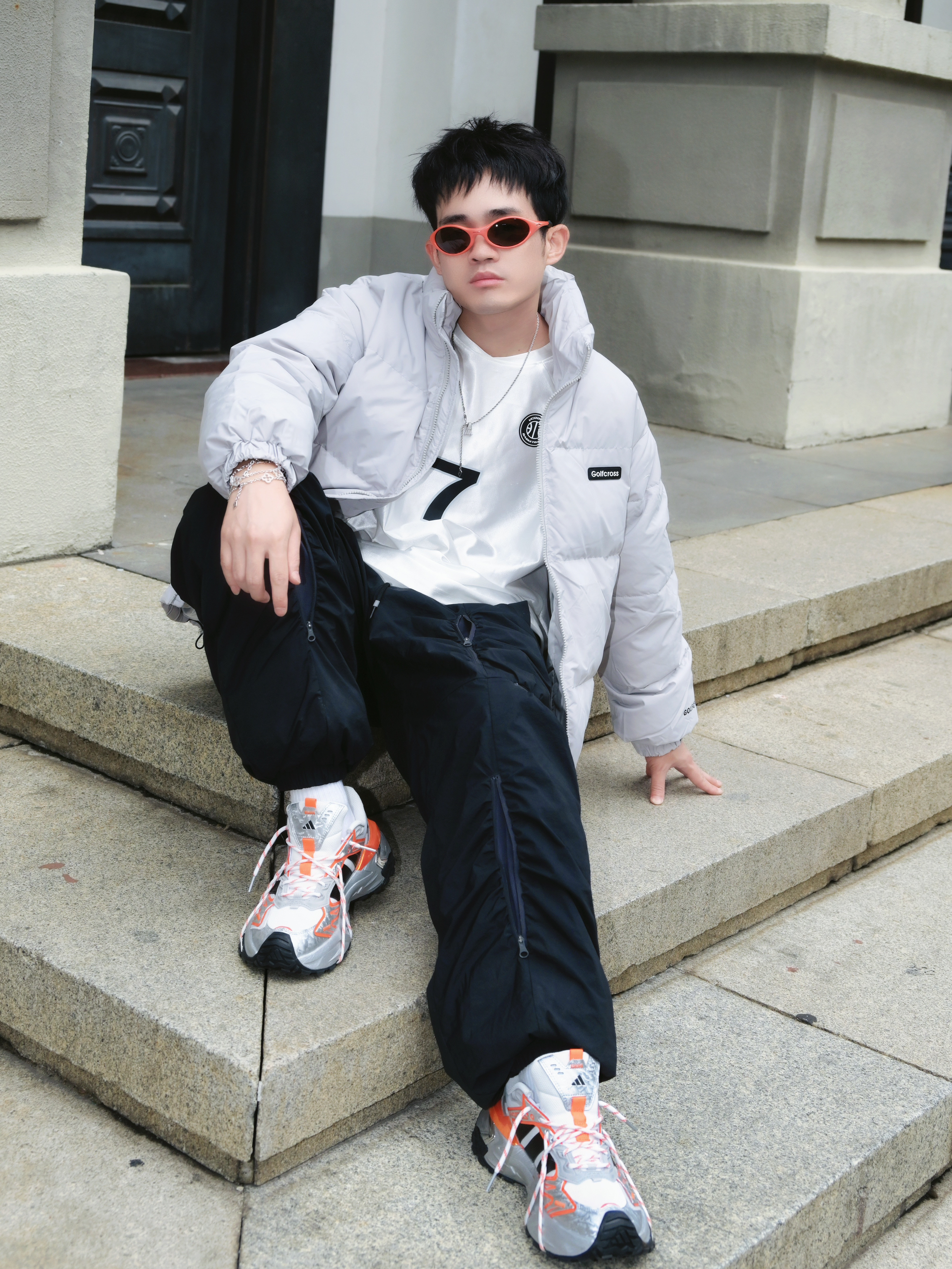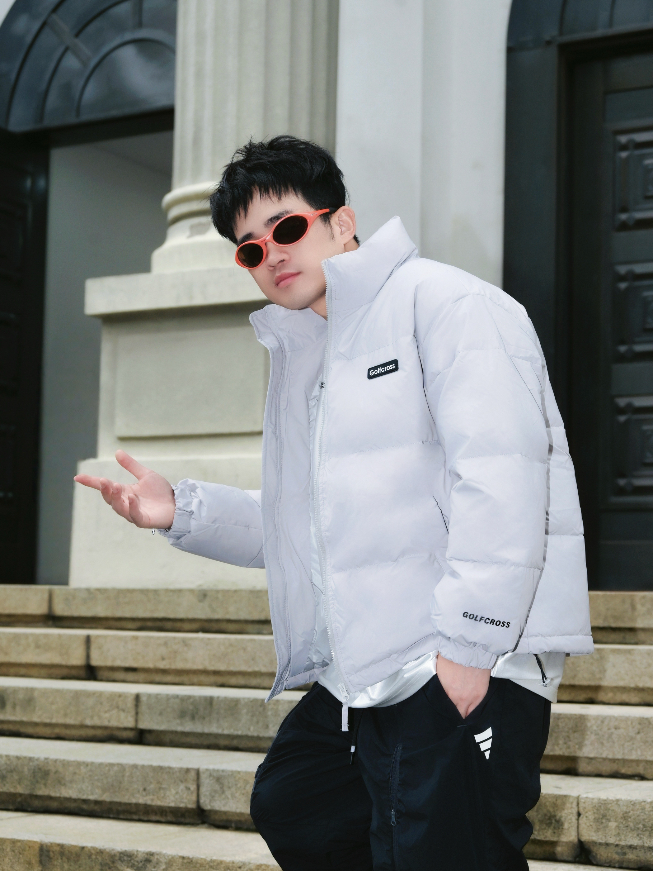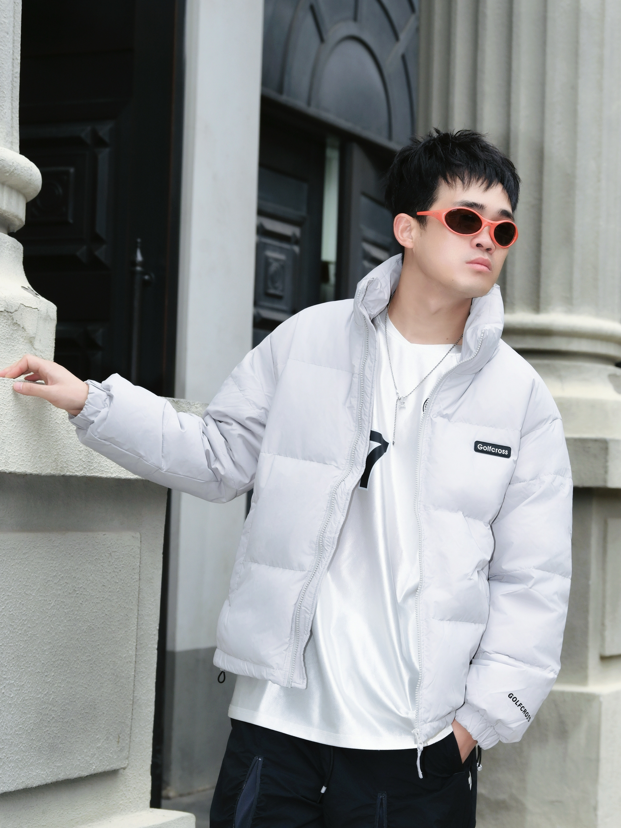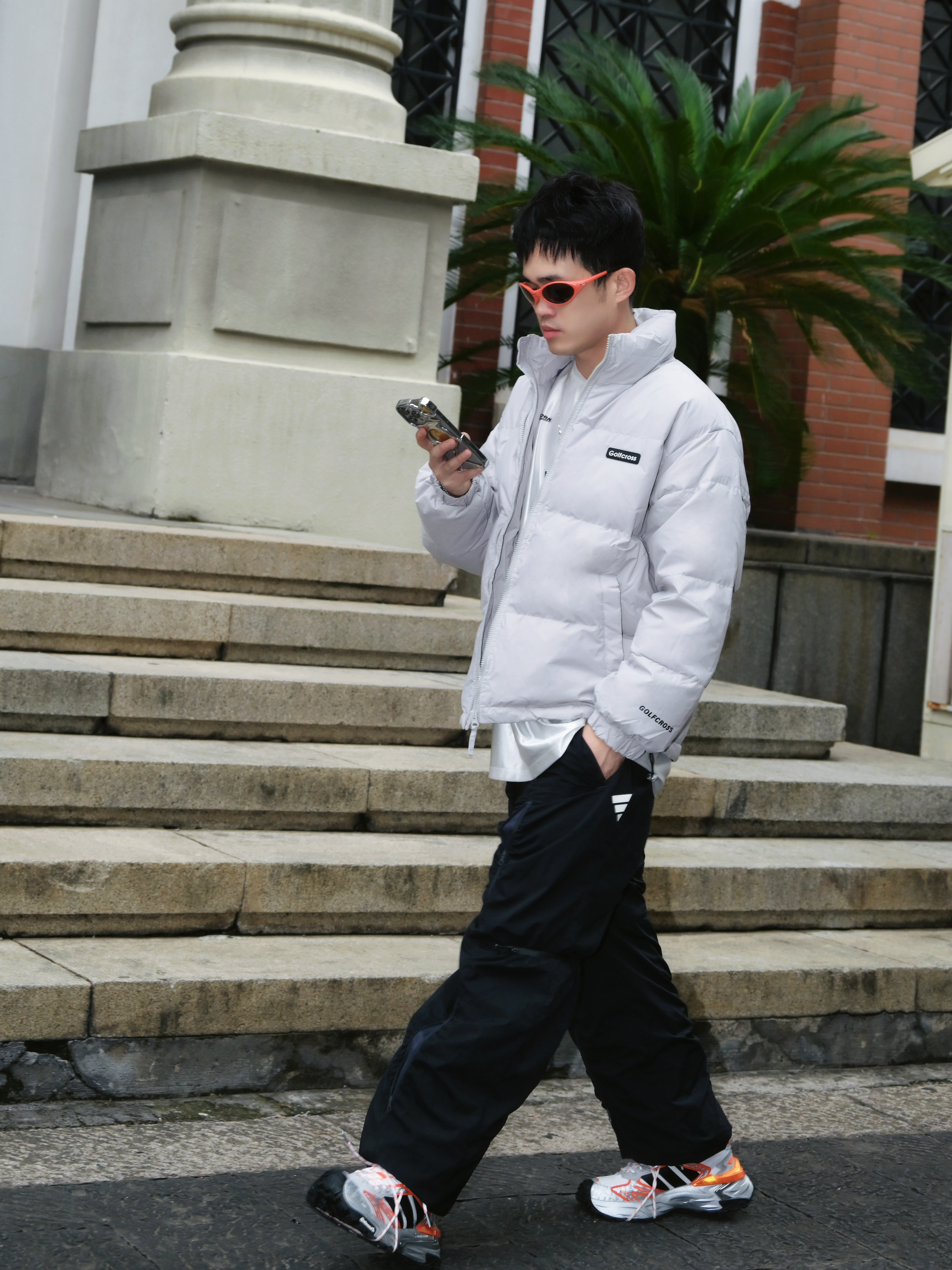 最近降温太猛了 翻出这件白鸭绒羽绒服 真的被它的百搭性惊到了✨ ▪️穿搭信息 外套:灰色立领羽绒服 内搭:纯白长袖T恤 裤子:黑色侧条纹休闲裤 鞋子:白橙配色老爹鞋 配饰:橙色墨镜➕银色项链 ▪️搭配思路 • 整体选择「黑白灰」基础色系 • 用橙色运动鞋和橙色墨镜提亮 • 侧条纹裤子拉长腿部线条 • 立领设计不用围巾也保暖 这件羽绒服属于韩系面包服版型 不会显得臃肿 小个子男生也能驾驭 白鸭绒填充...